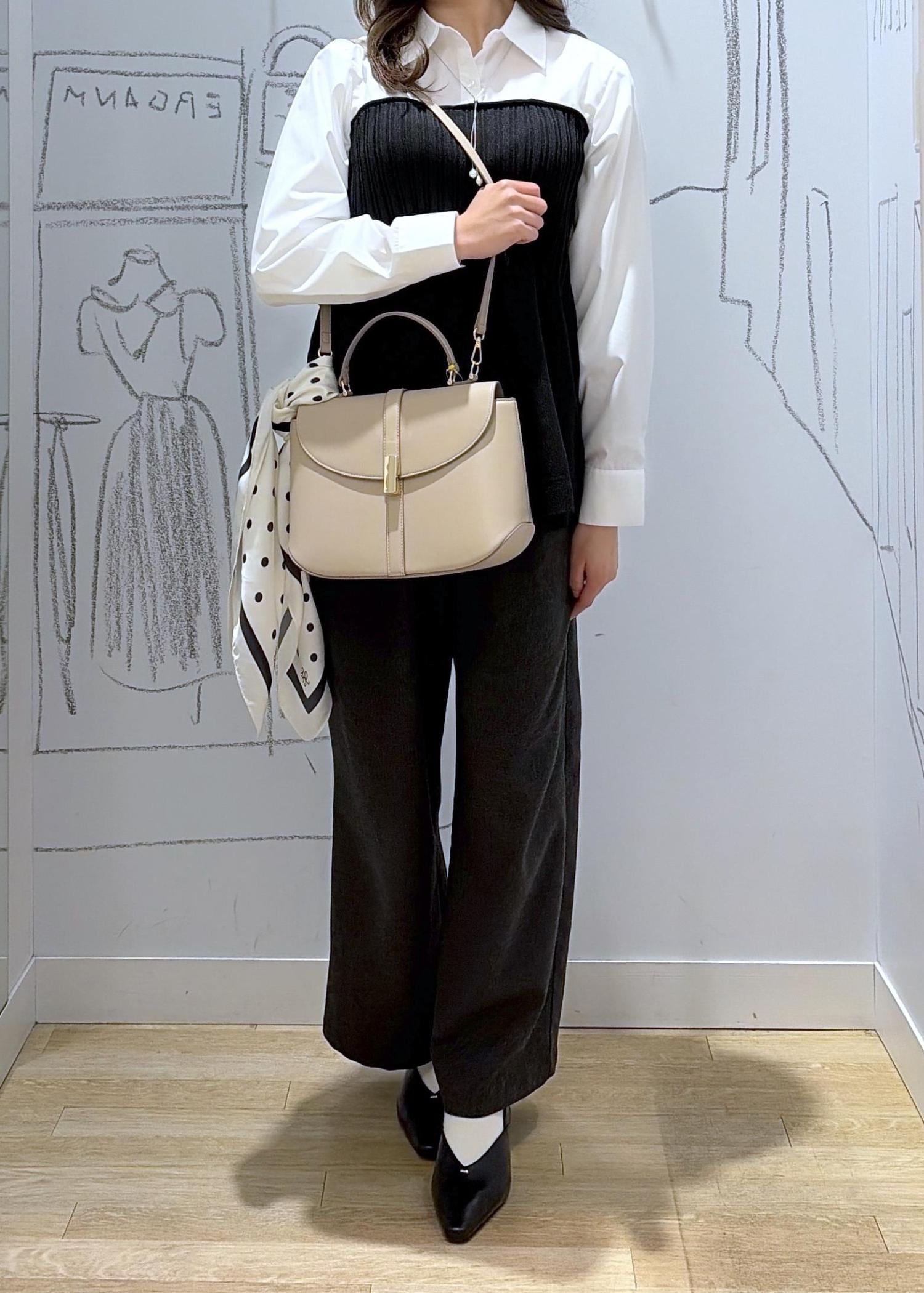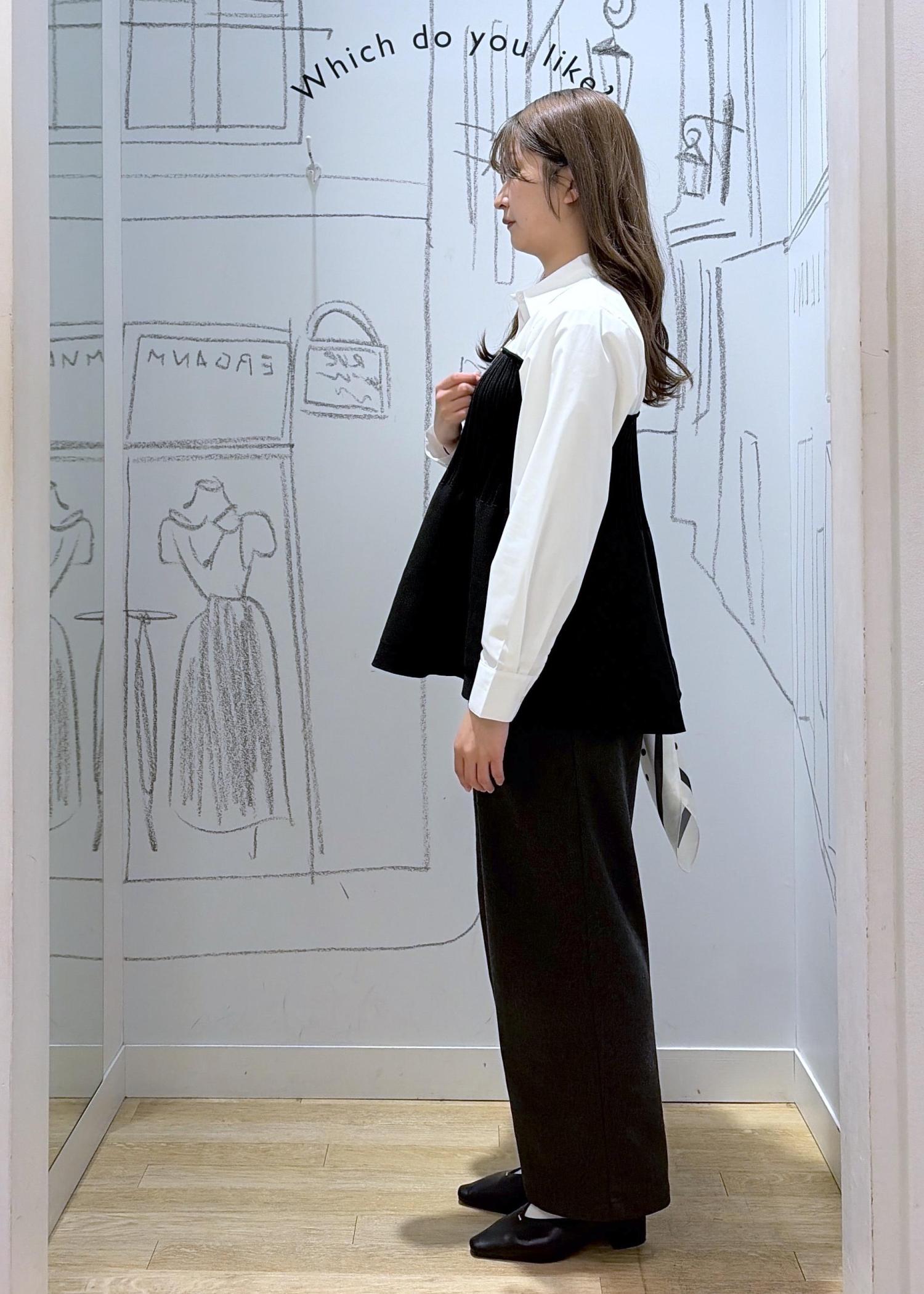 お仕事用にも普段着用にも使い回ししやすく、スカートにもズボンにもボトムス問わず合わせられやすいアイテムです。