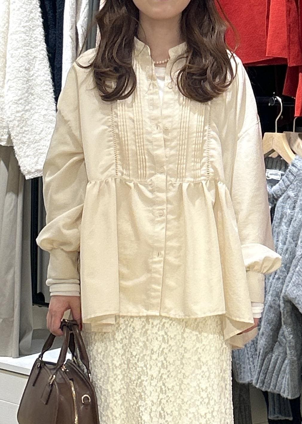 ROPÉ PICNIC【UVケア・防シワ】羽織れるピンタックデザインペプラムシャツクリーム / M¥2,699レビュー私の身長Mサイズ着用で、お尻がすっぽり隠れるくらいの丈感でした◎