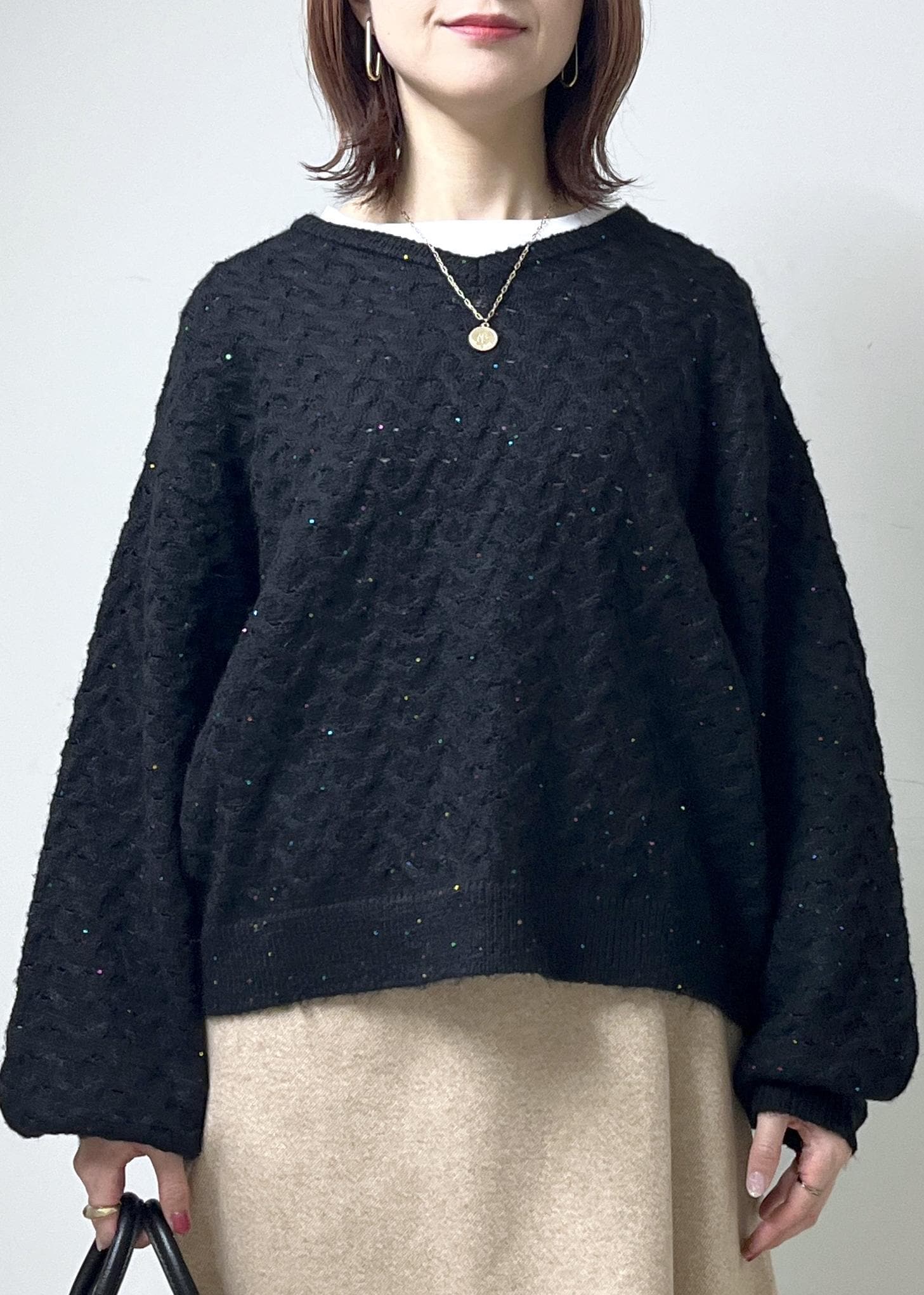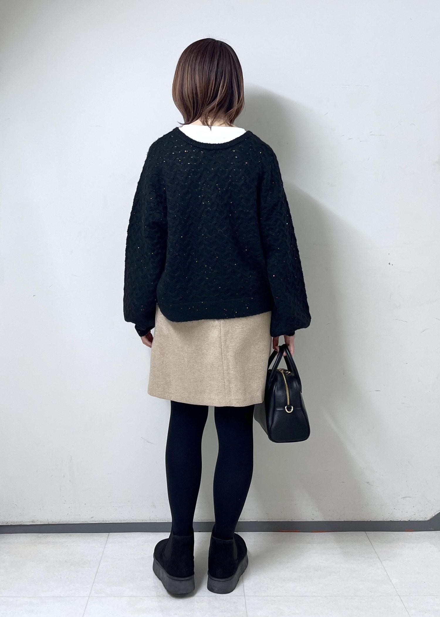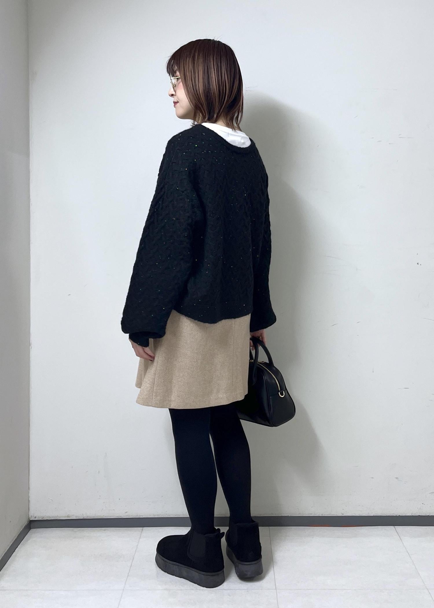 スパンコールニットの女子コーデ