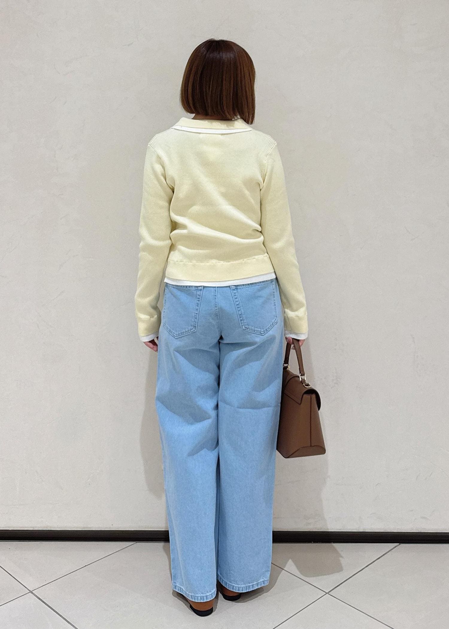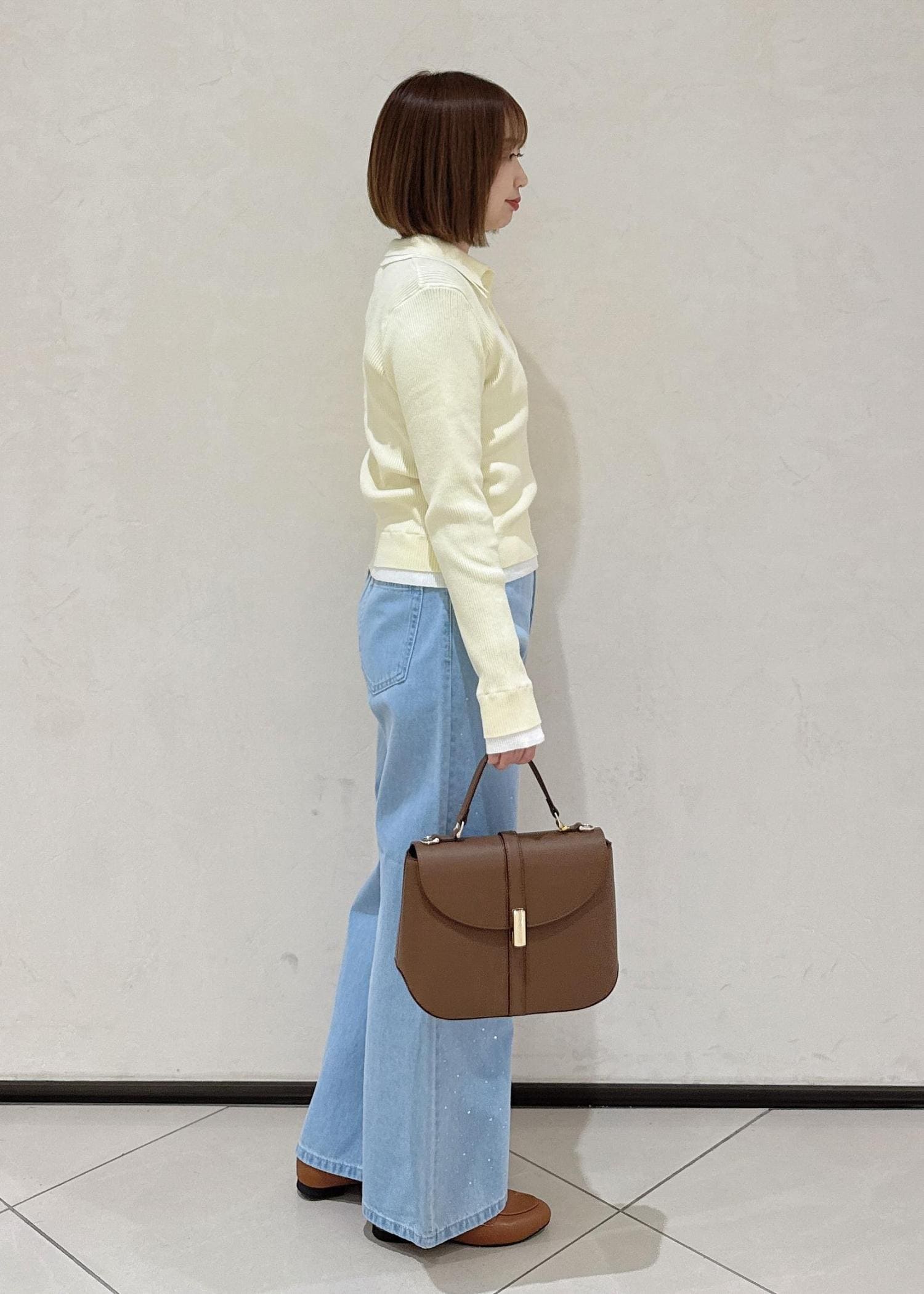 バッグと靴を茶系で少しキレイめのアイテムで合わせて、カジュアルになりすぎないようにしました。
