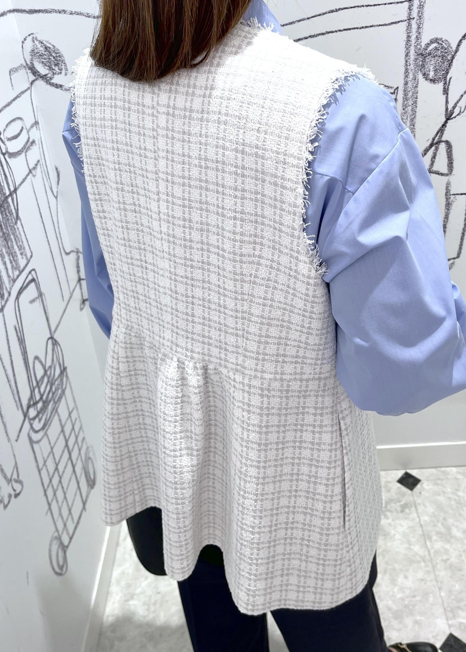 ROPÉ PICNIC【WEB限定カラー】ツイード金ボタンジレベスト/セレモニー対応・リンクコーデライトグレー / F¥8,998レビューセレモニーにぴったりのツイードジレ。デニムと合わせて普段使いも出来るアイテムです。ペプラムデザインで後ろ姿もすっきり見えます。