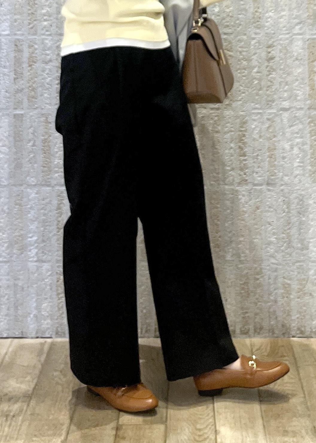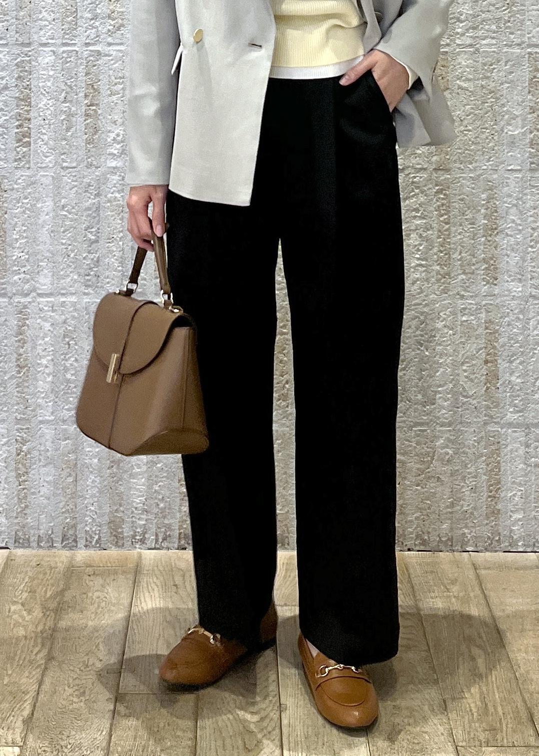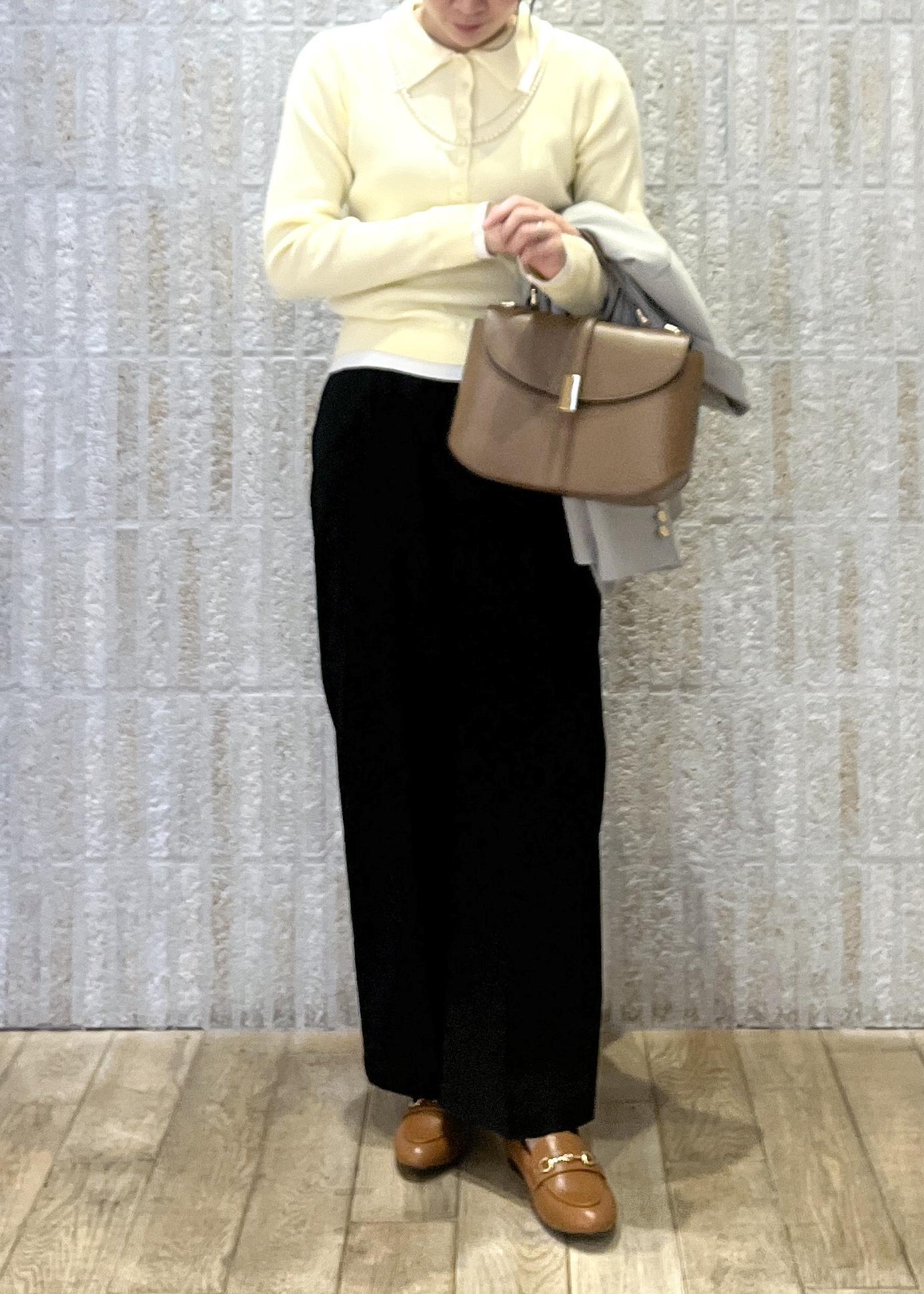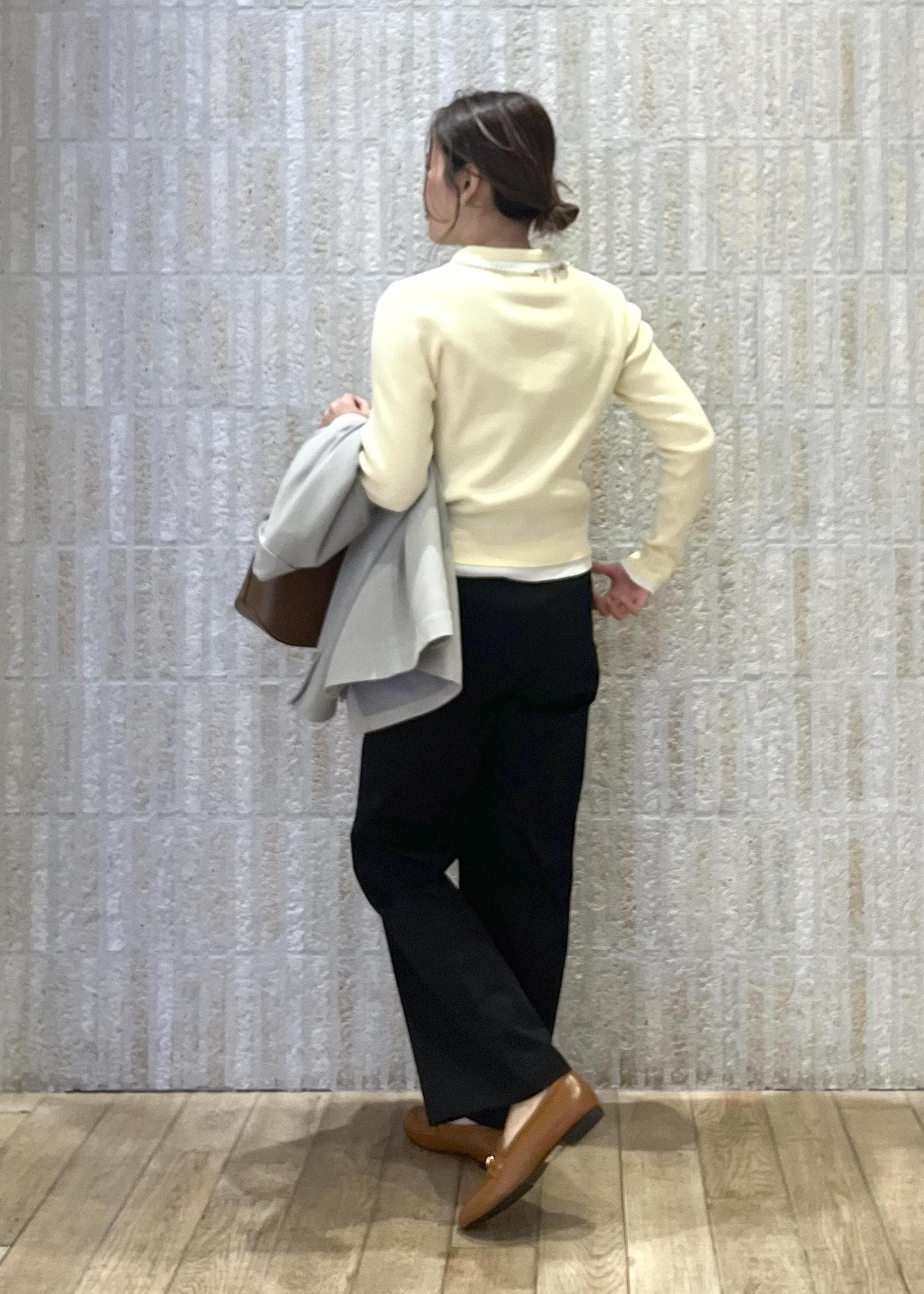 インナーはブラウスではなくニットにすることでほどよいオフィスカジュアルスタイルに。