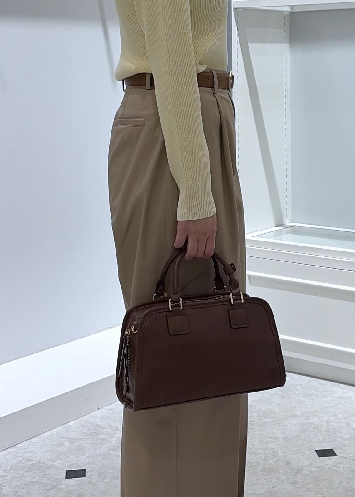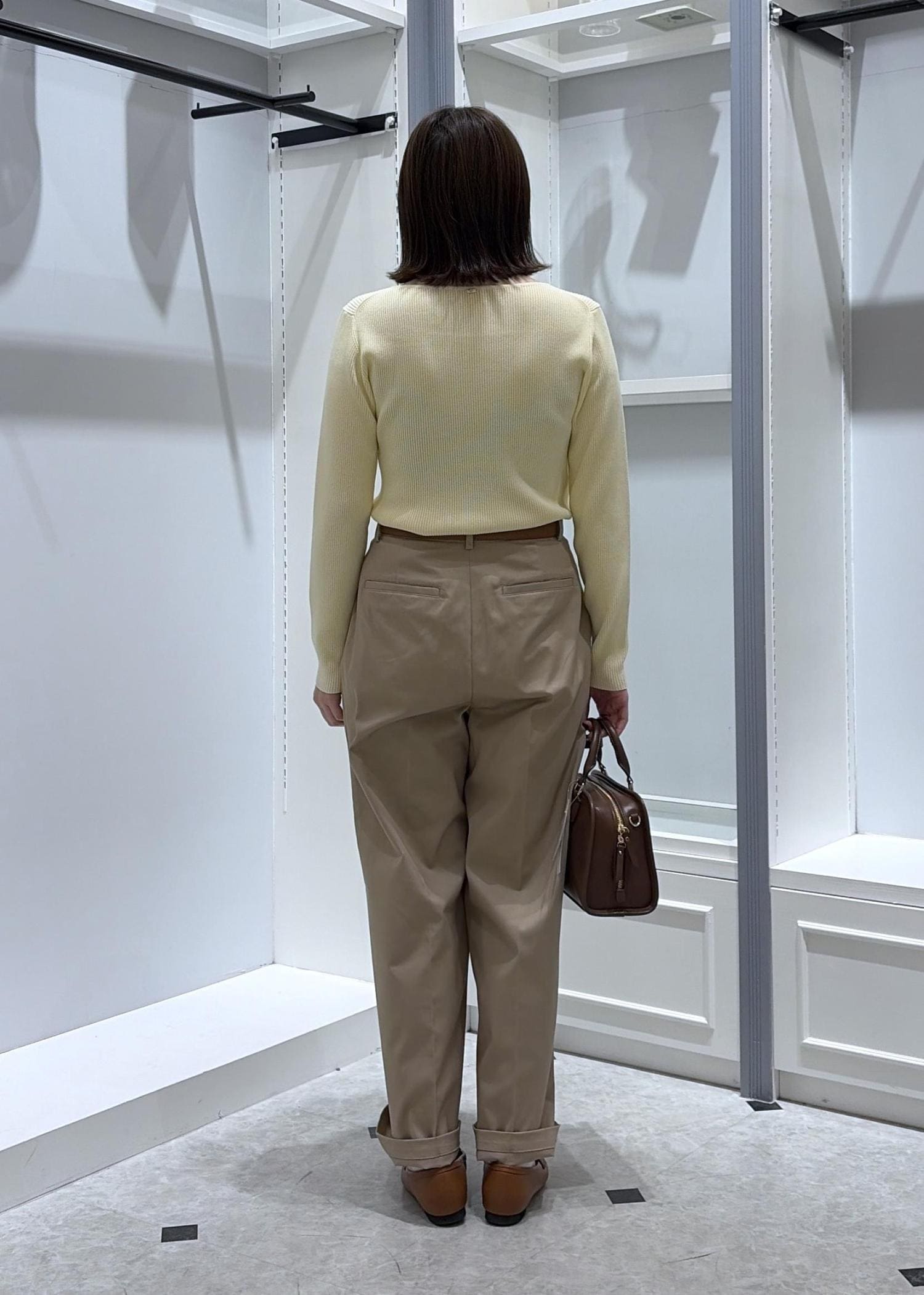 ベルトやバッグをブラウンにして、カラーのメリハリをしっかりつけているのでとってもキレイ◎に仕上がりました♪