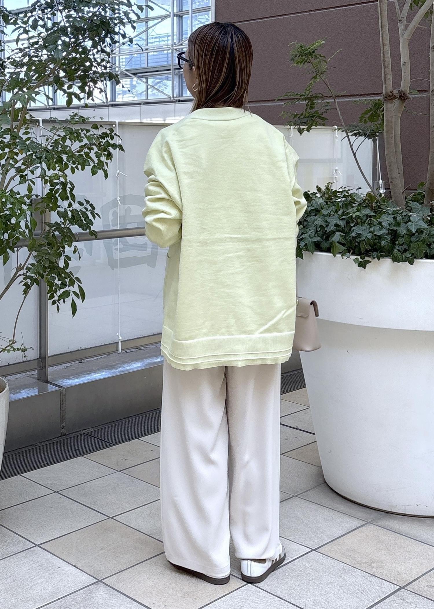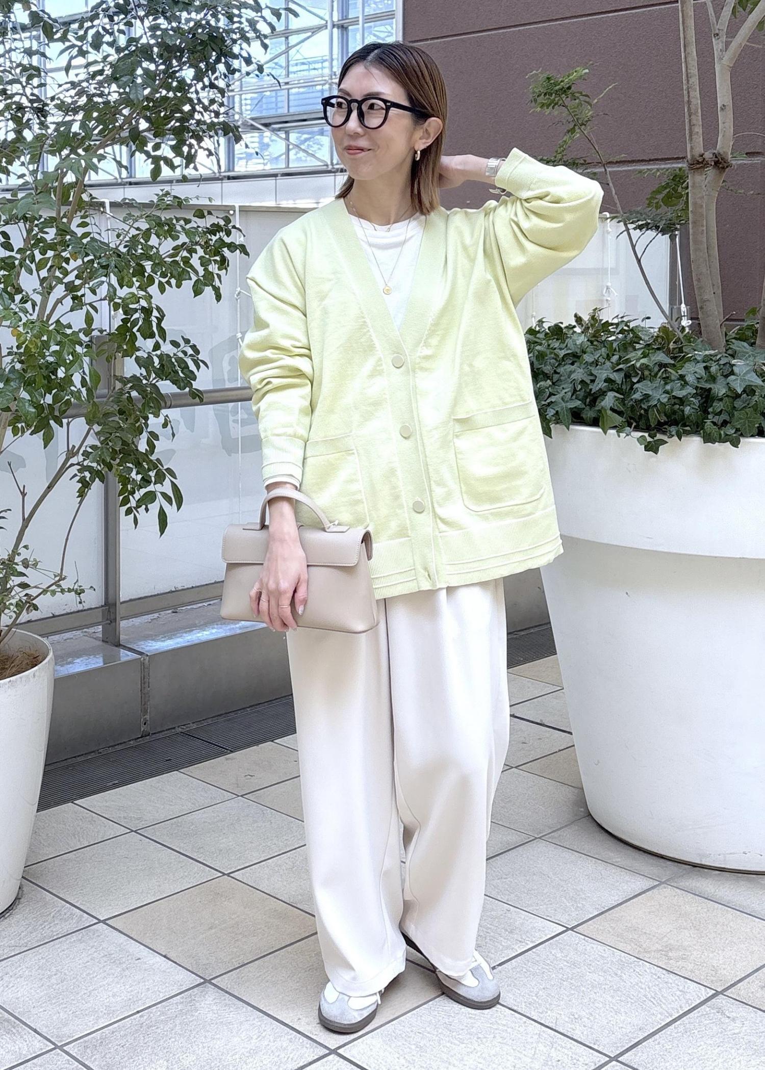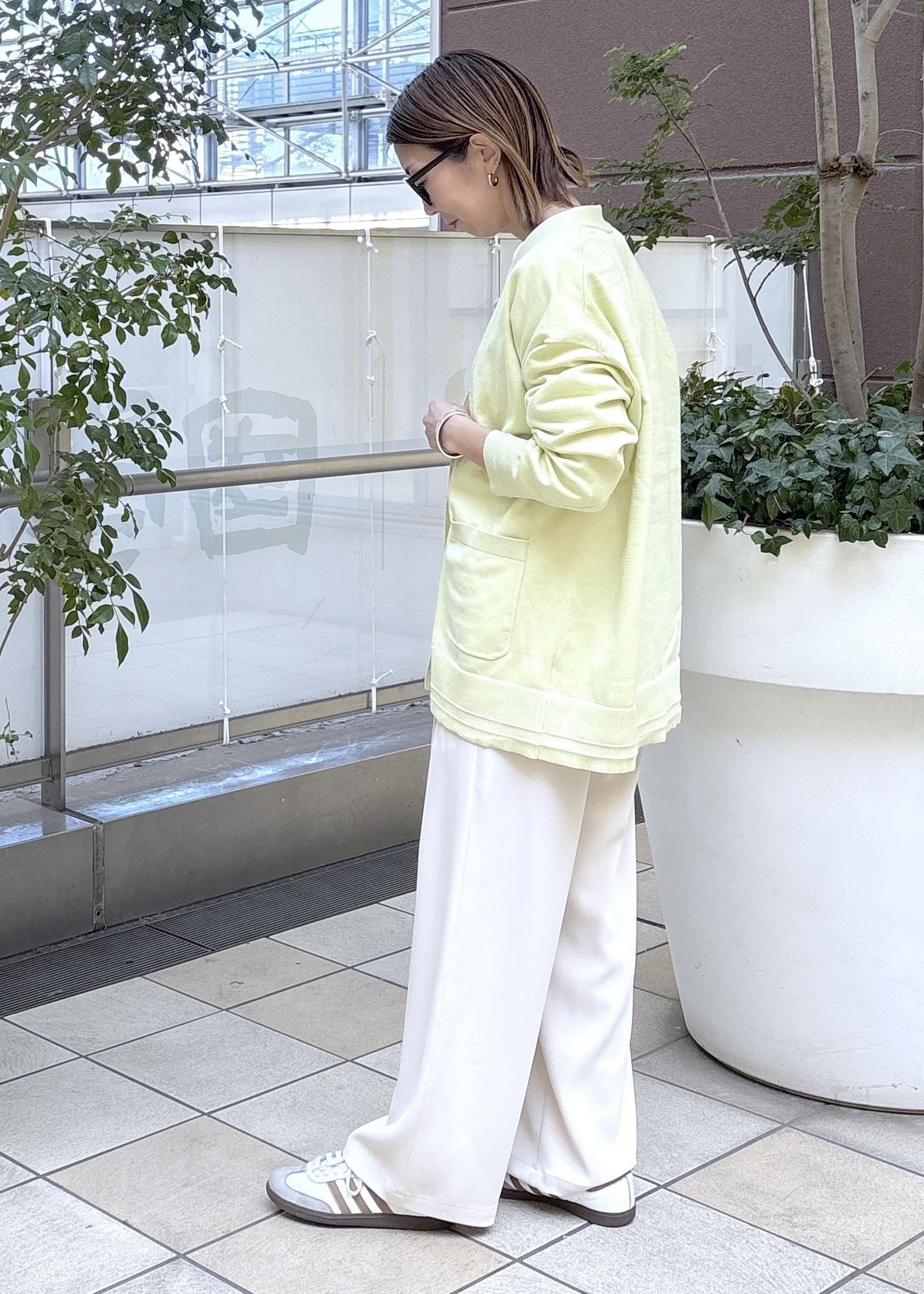 春を感じるイエローのミドル丈カーディガン。