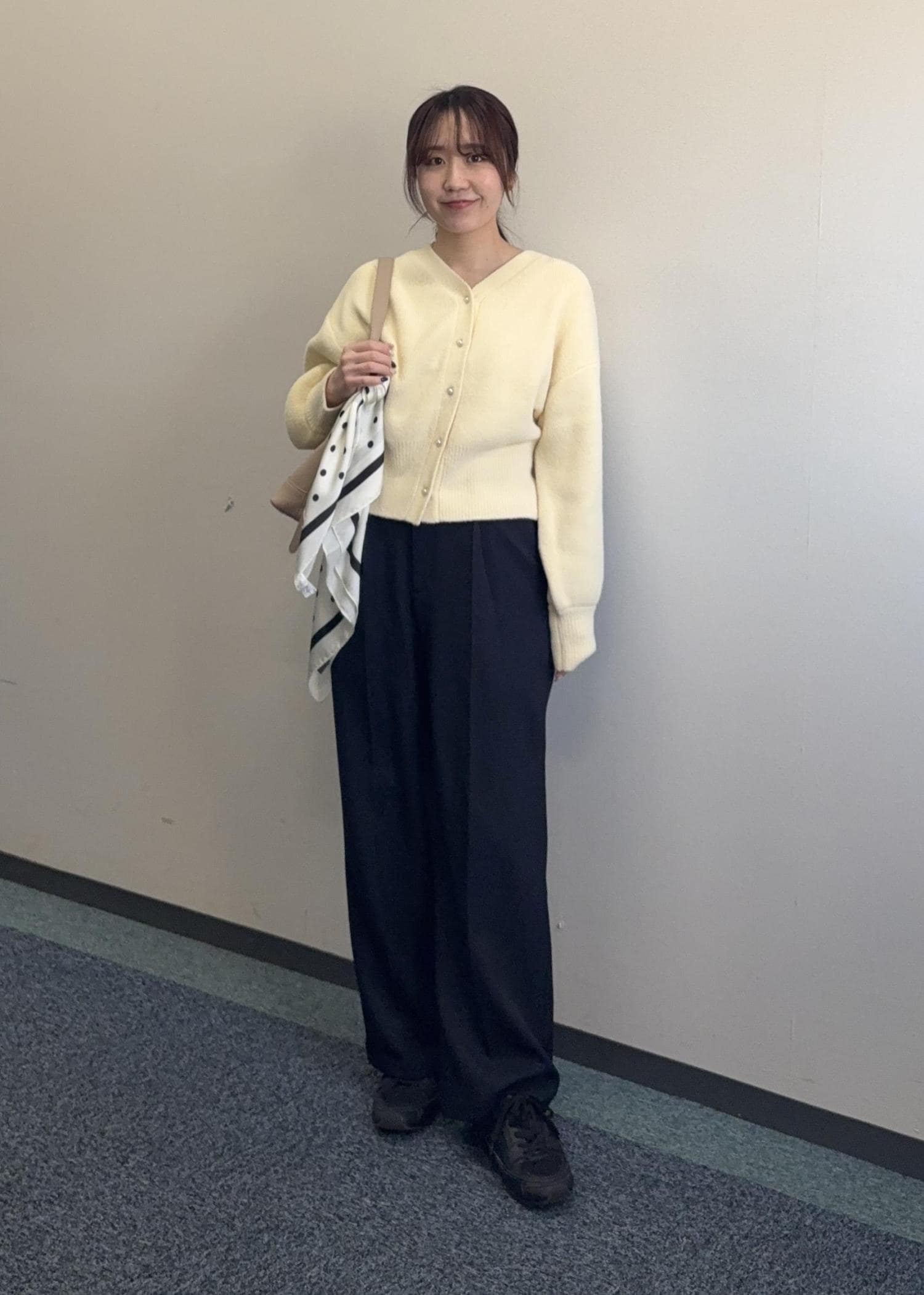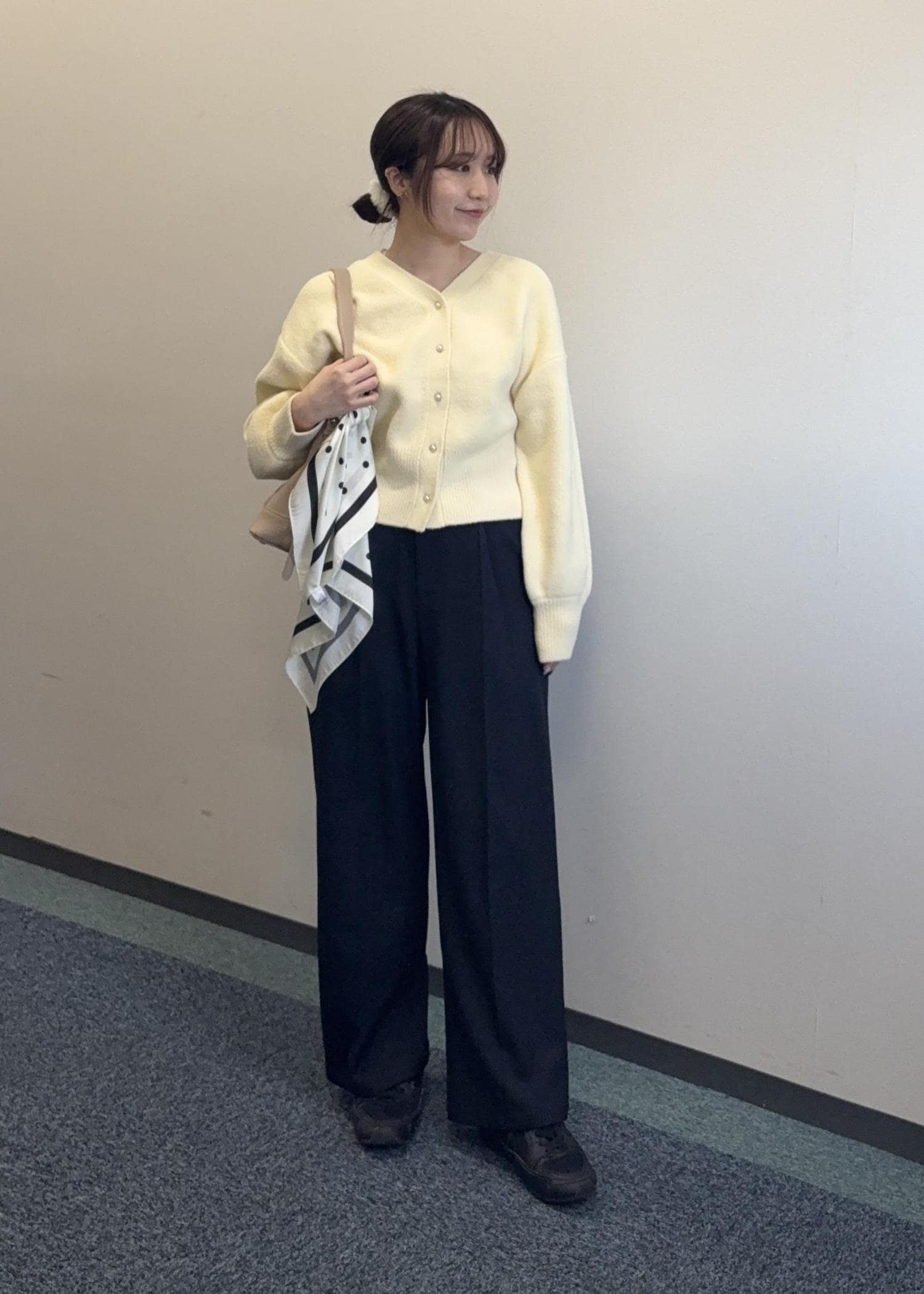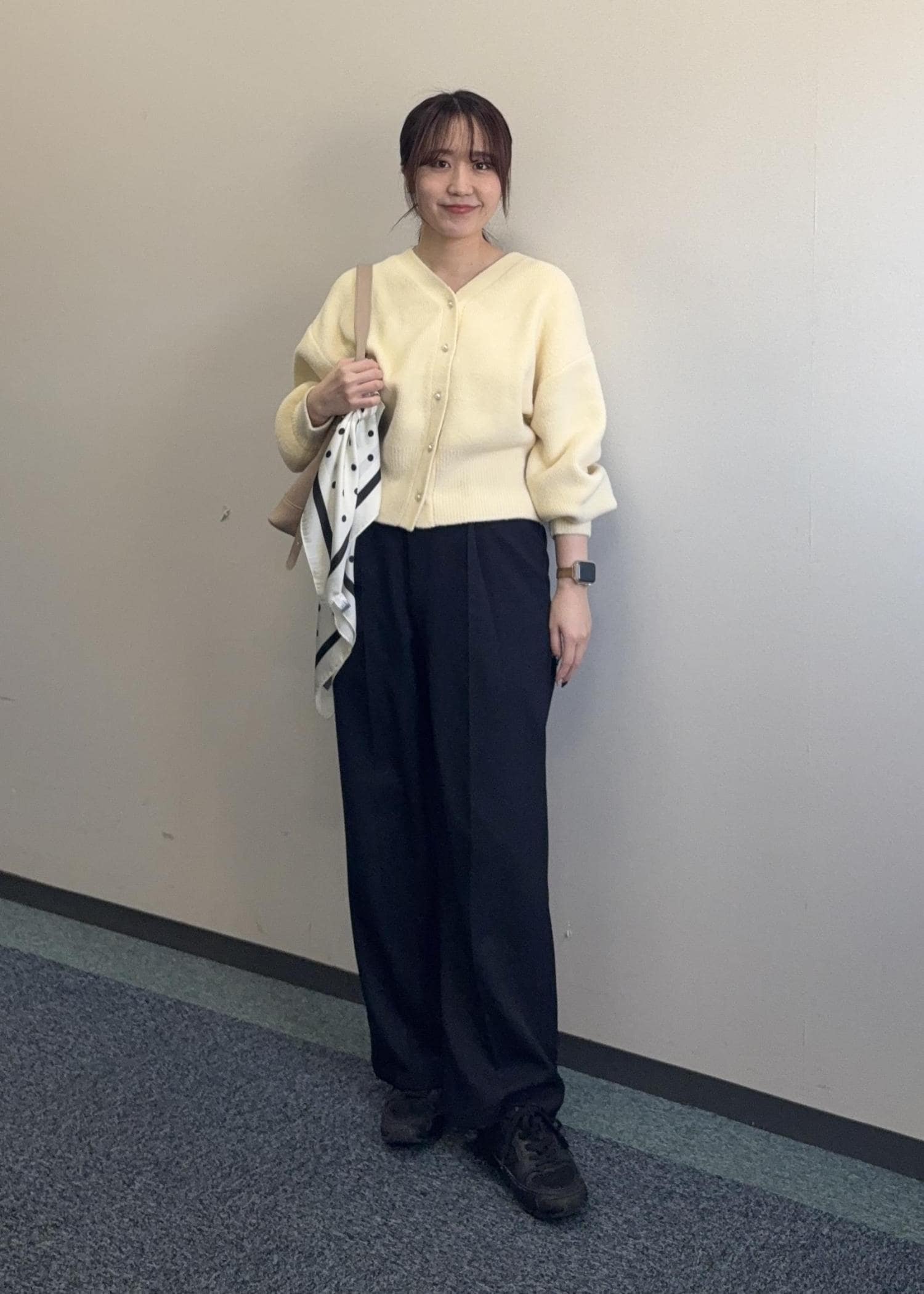 短めの丈感で、ボトムスとの相性も良いです。 -