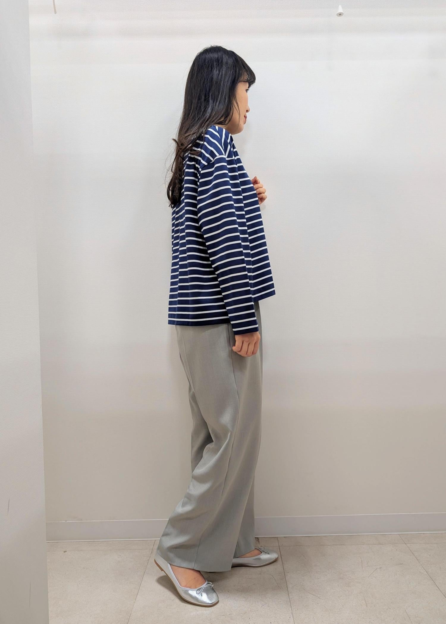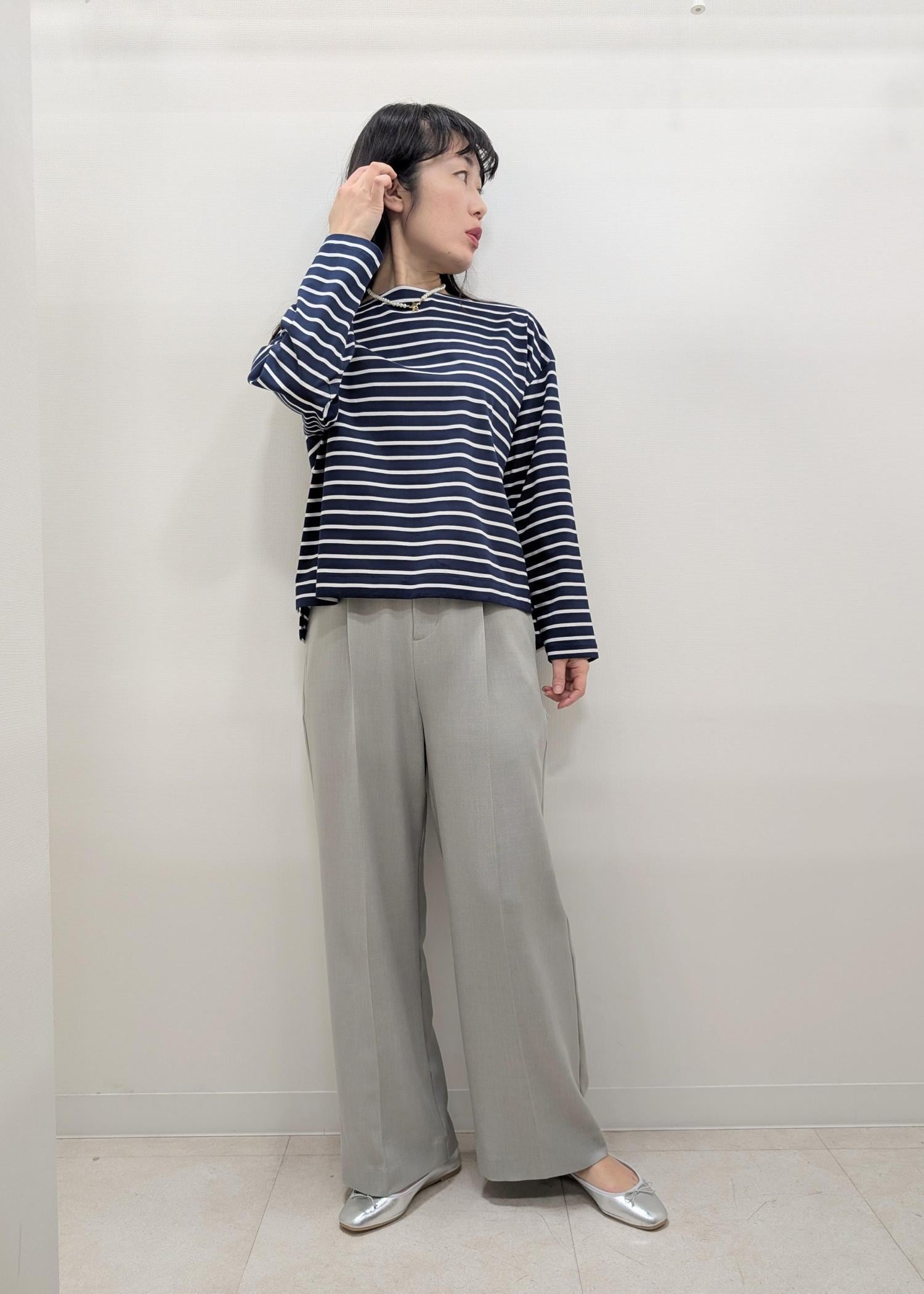 タックインも出来て出しても長すぎず、使いやすい丈のカットソーです。 -