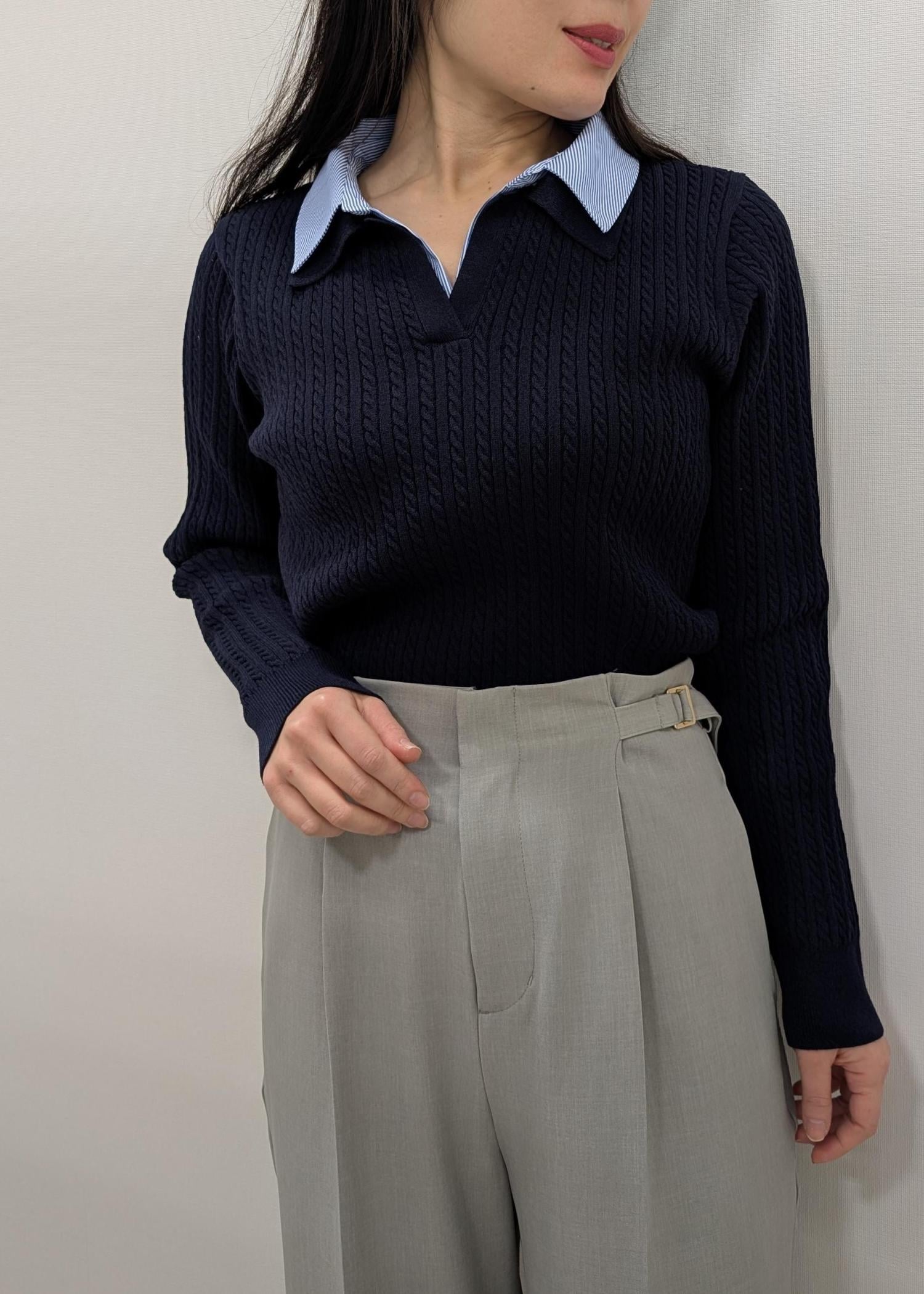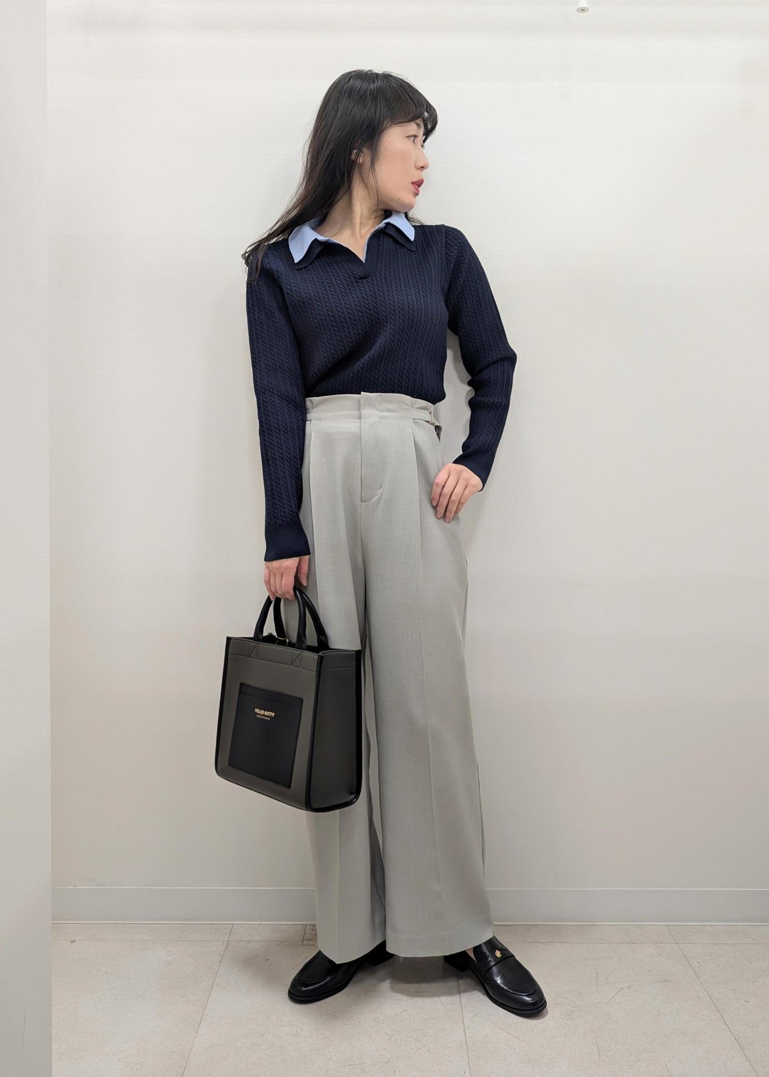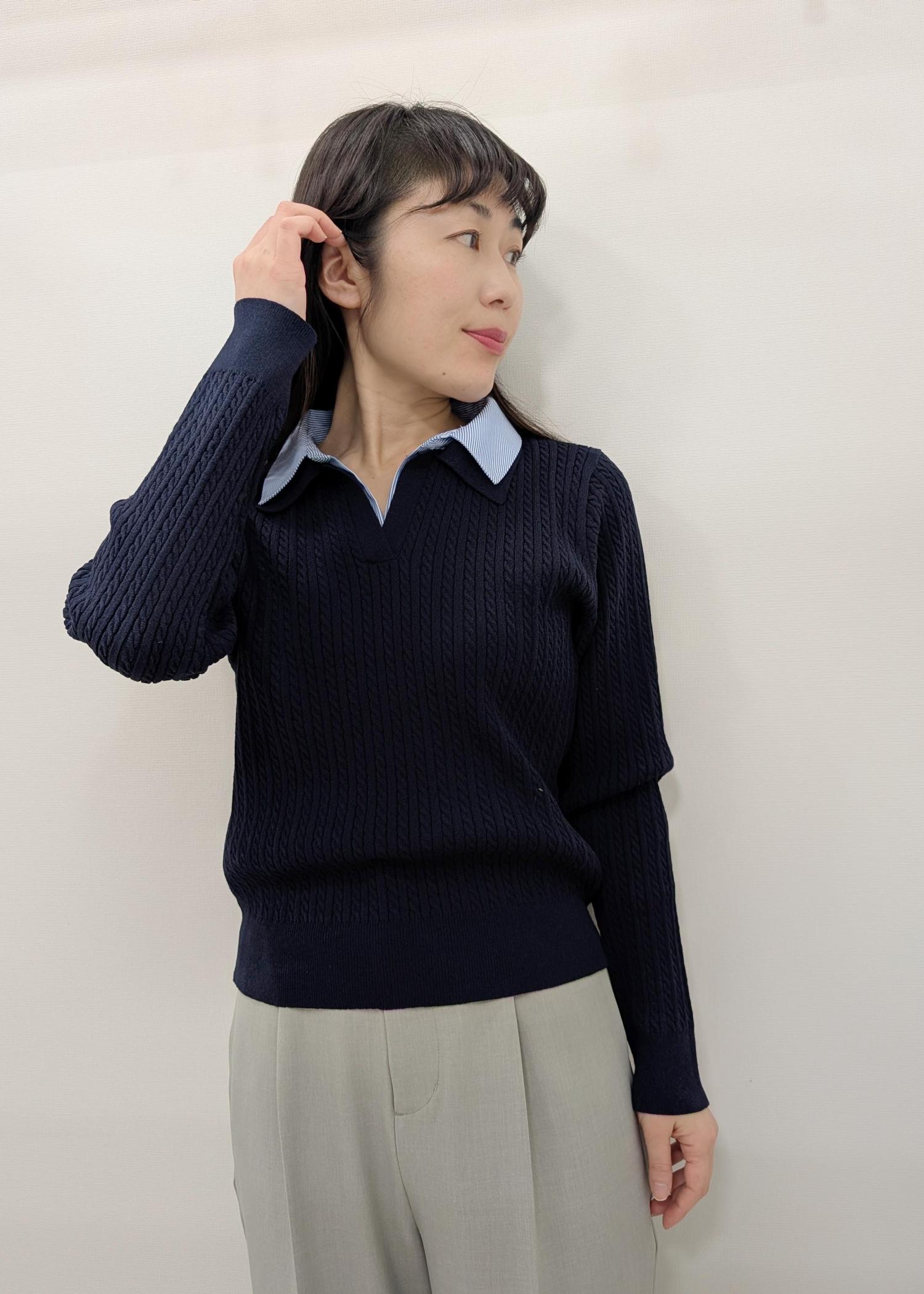 ROPÉ PICNICダブルカラーミニケーブルニットネイビー / F¥5,995レビューアームホールはやや広め、身幅はスッキリとしたサイズ感です。