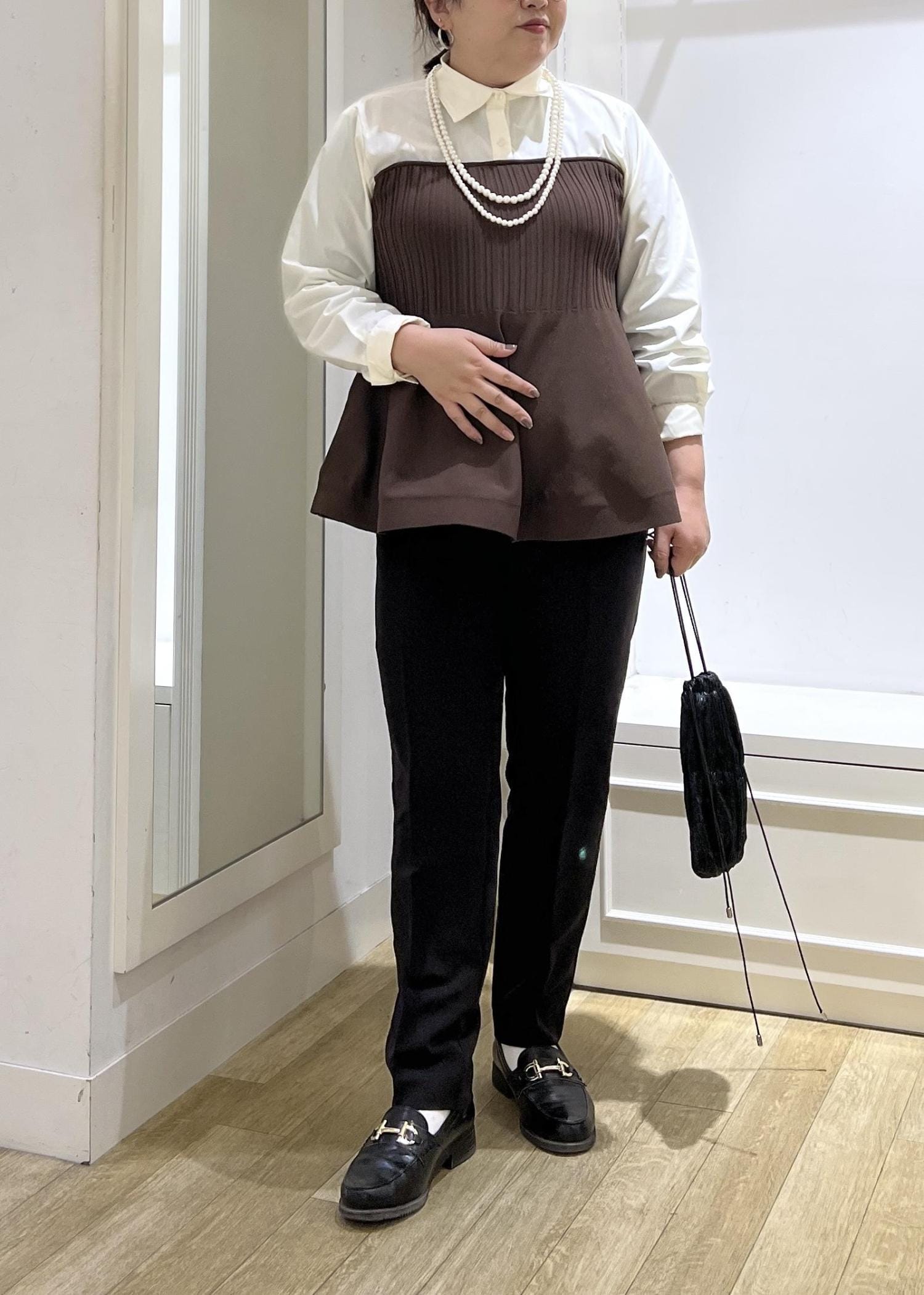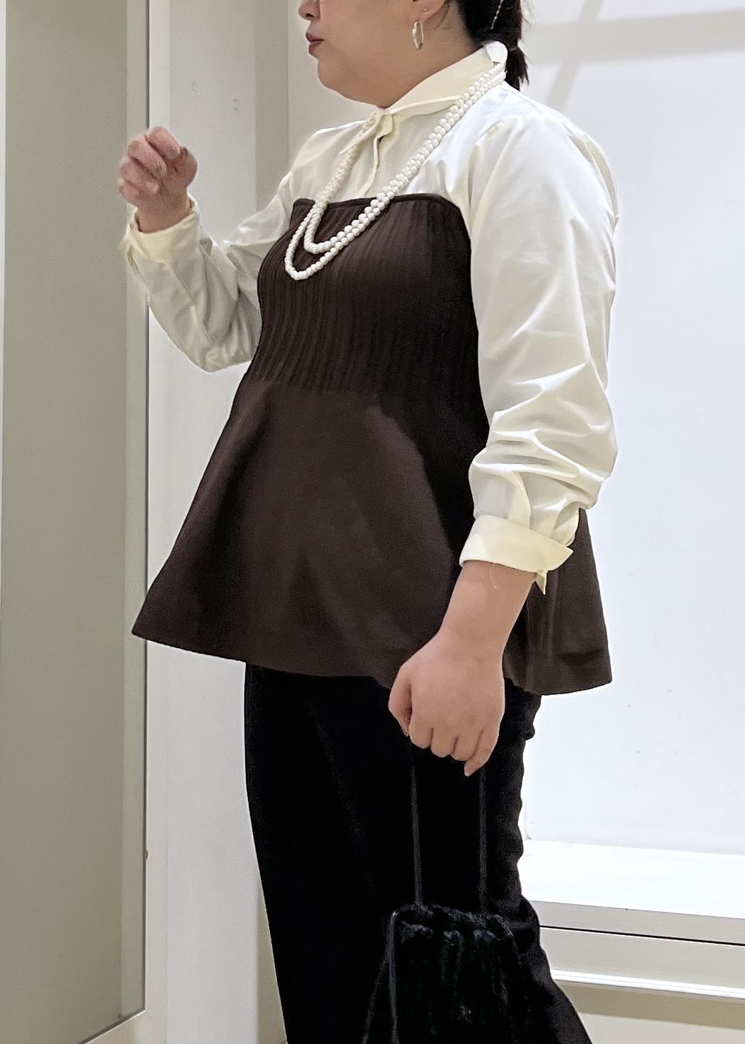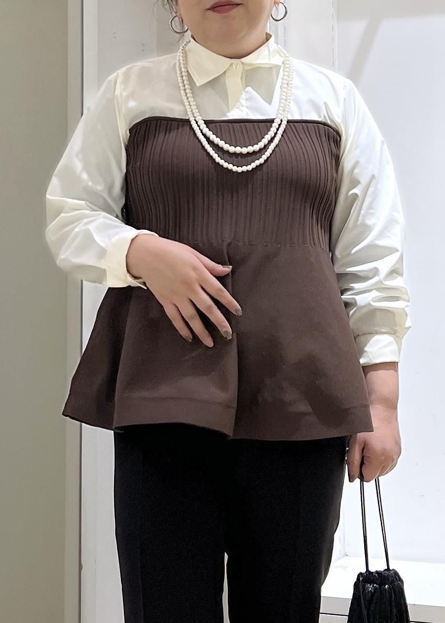 ROPÉ PICNICシャツドッキングペプラムニットブラウン / F¥5,995レビューふわっと腰回りの体型カバーをしてくれて、デザイン性も抜群な一枚でサマになるアイテム。