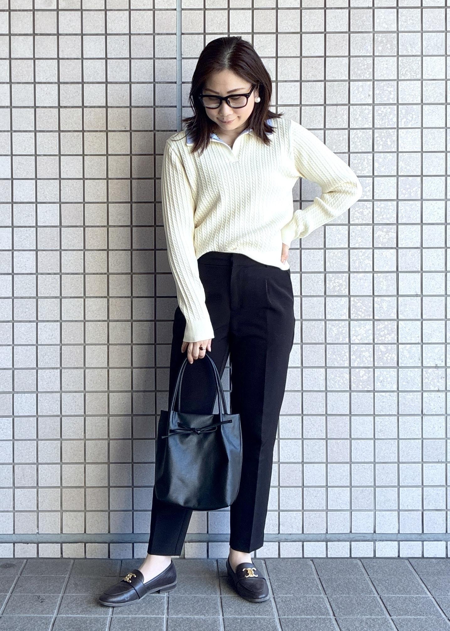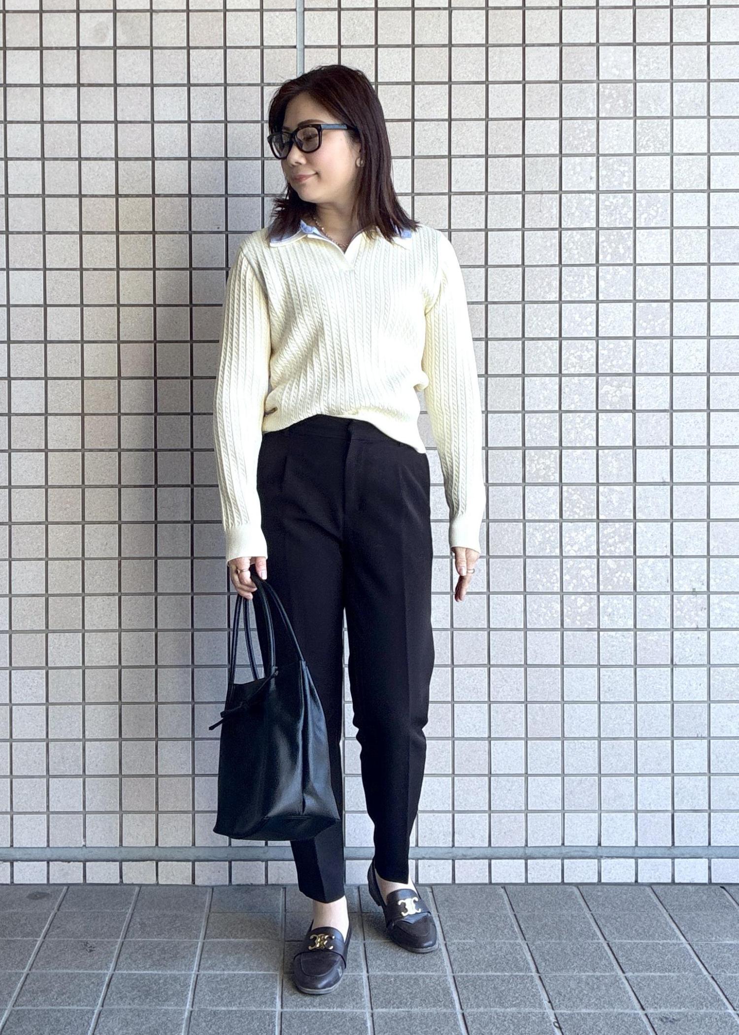 ニットとシャツの組み合わせでオンオフ兼用でお召しいただけます◎