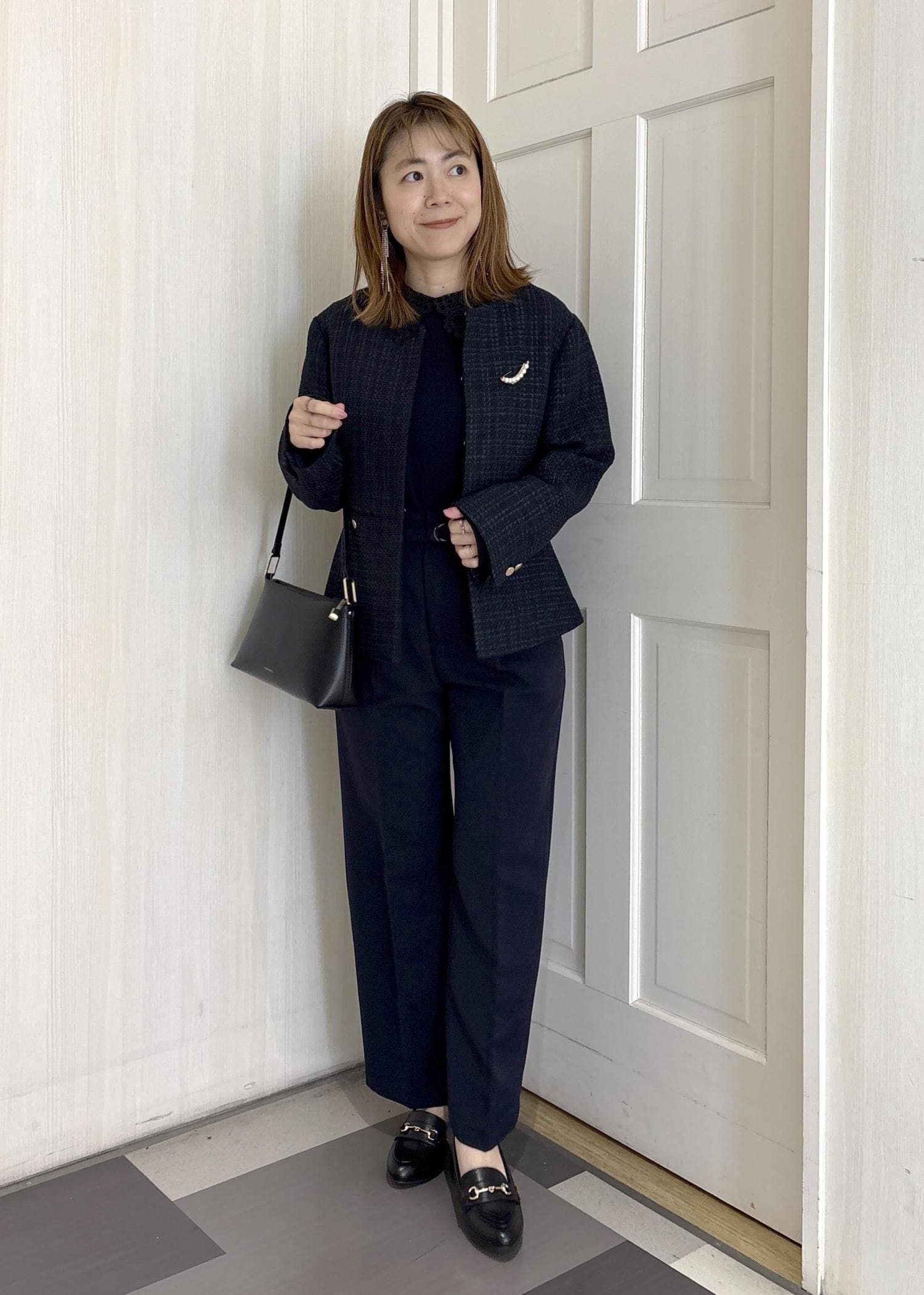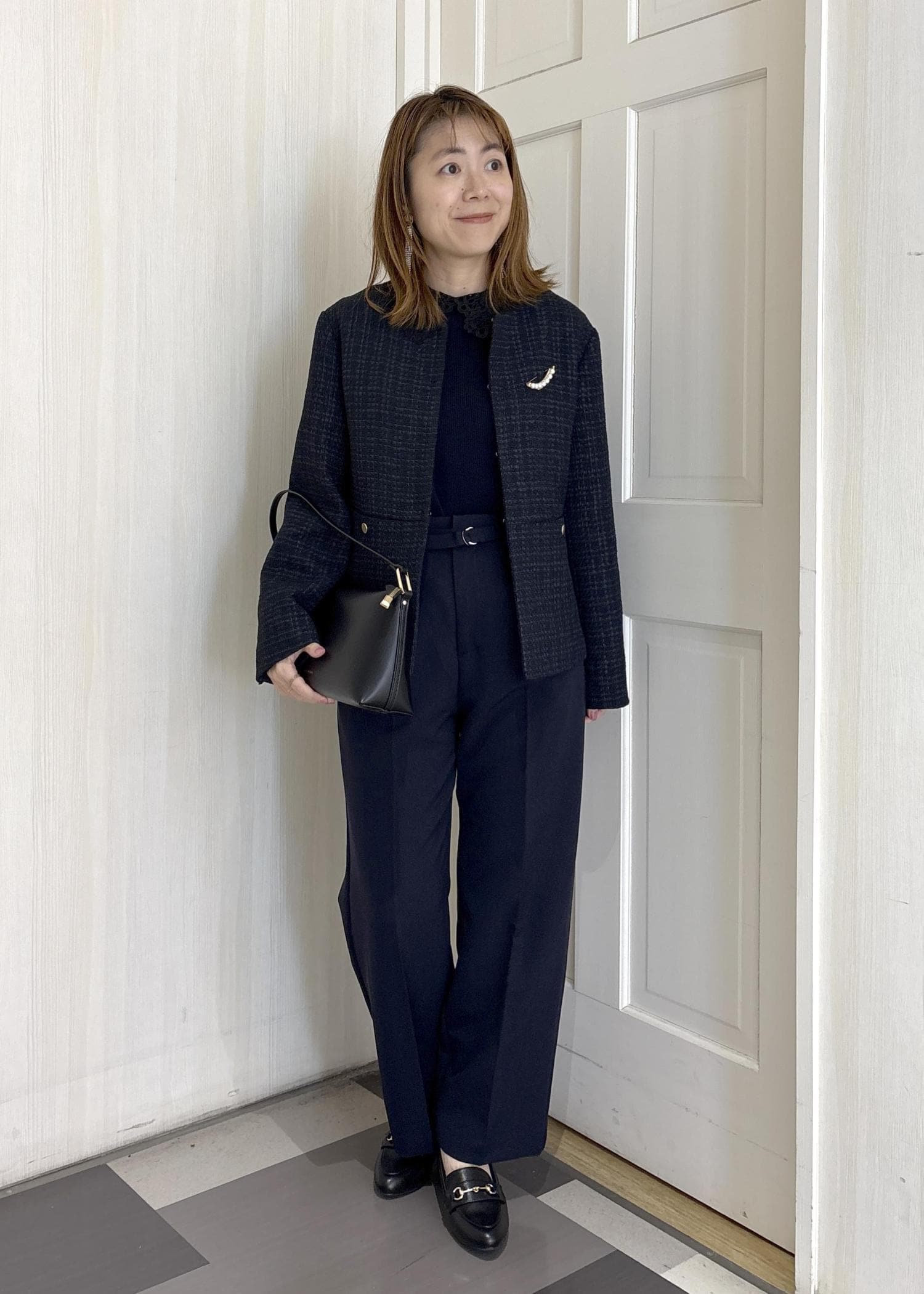 そんなカラーにも質感や素材にも拘ったコーディネートでネイビーの上下をチョイスしています☺︎