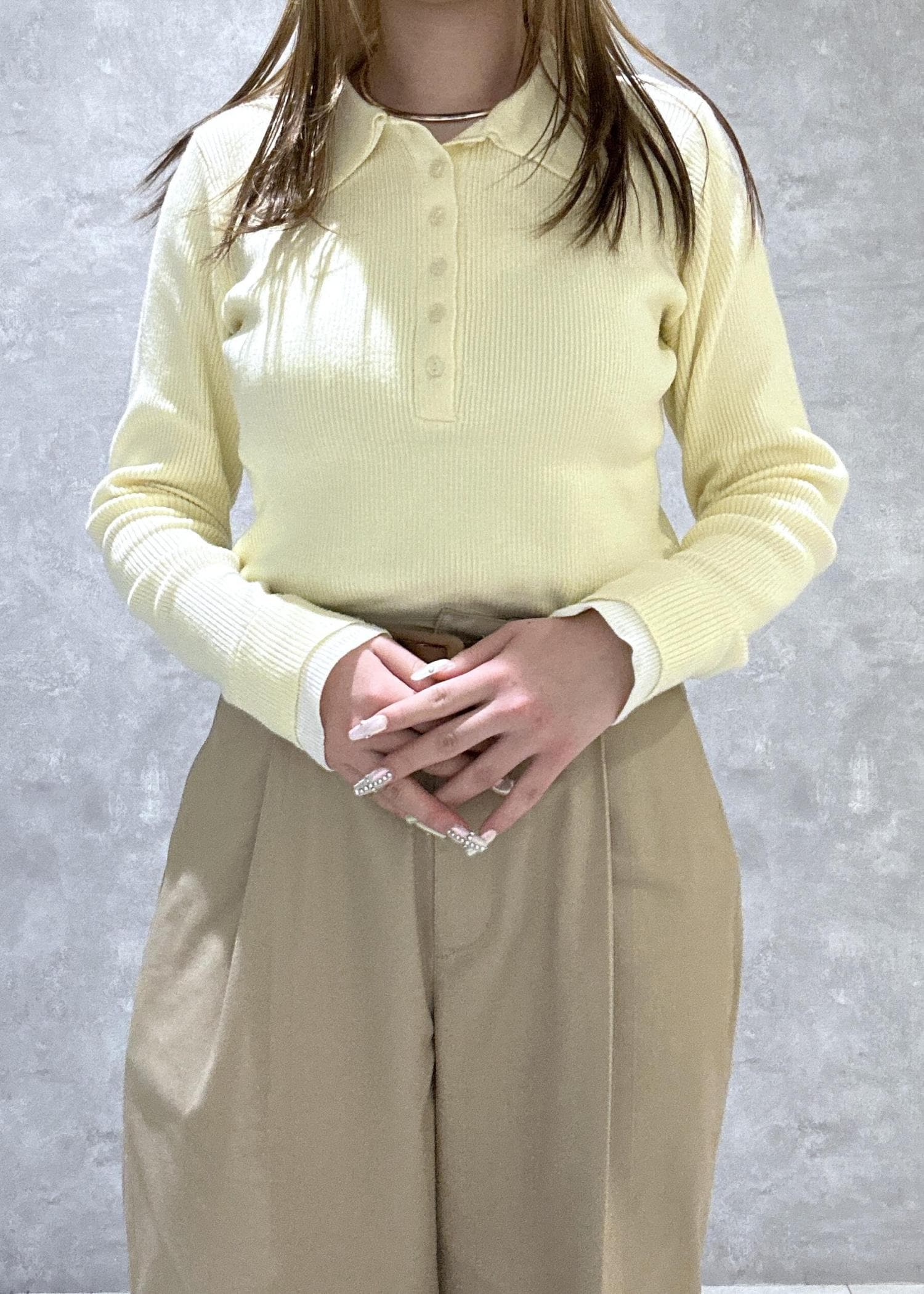 NEW!ROPÉ PICNICレイヤード風リブポロニットクリーム / F¥5,489レビュー程よいフィット感のあるシルエットで、ラインは拾いすぎない、細見えする1着。柔らかい生地感で着心地が良い。ジャケットやアウターのインナーとして使いやすいちょうどいい厚さ。