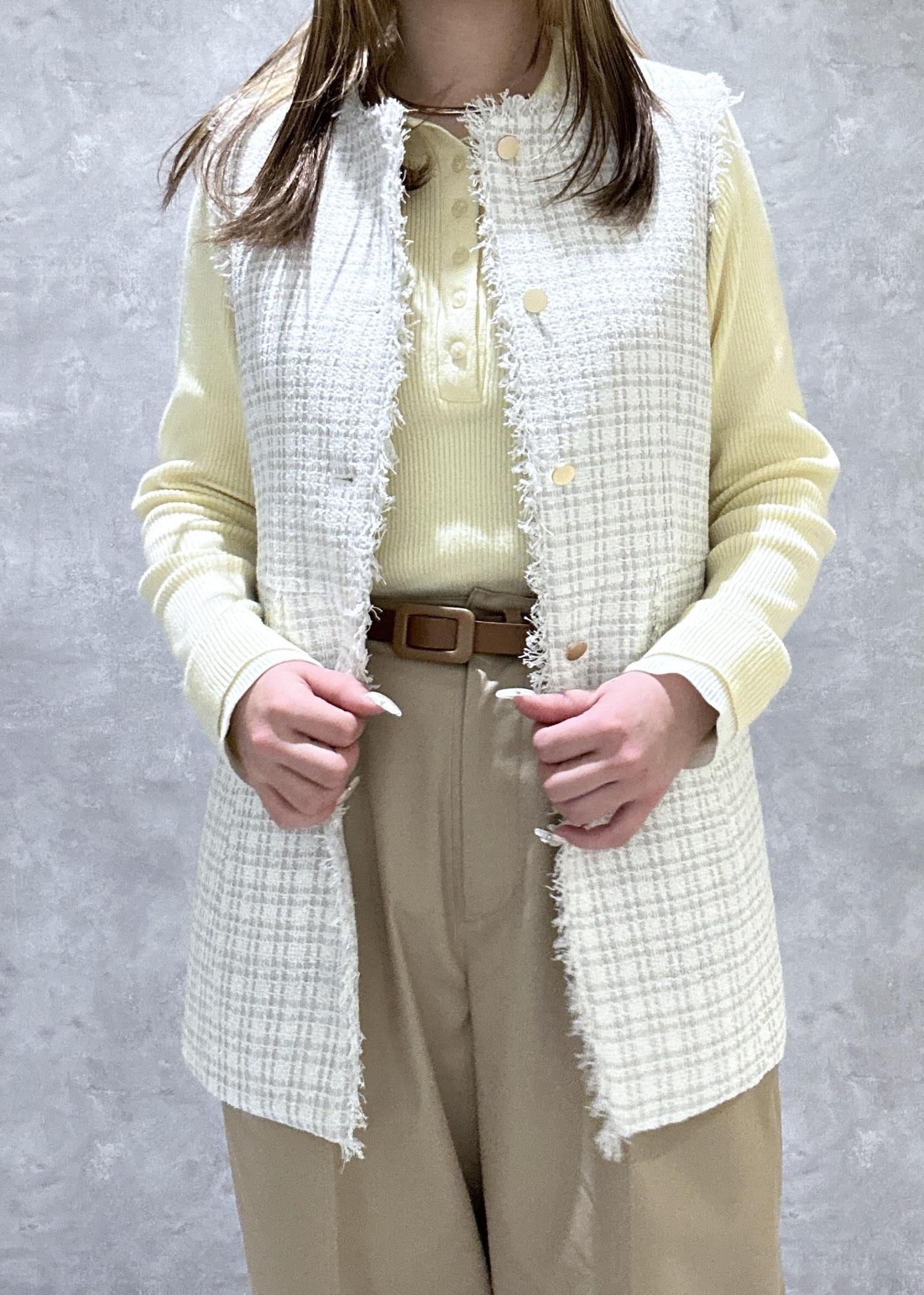 ROPÉ PICNIC【WEB限定カラー】ツイード金ボタンジレベスト/セレモニー対応・リンクコーデブラック系 / F¥8,998レビューヒップが隠れる着丈。ペプラムデザインできれいなシルエットに。セレモニーはもちろん、普段使いもしやすい万能アイテム。