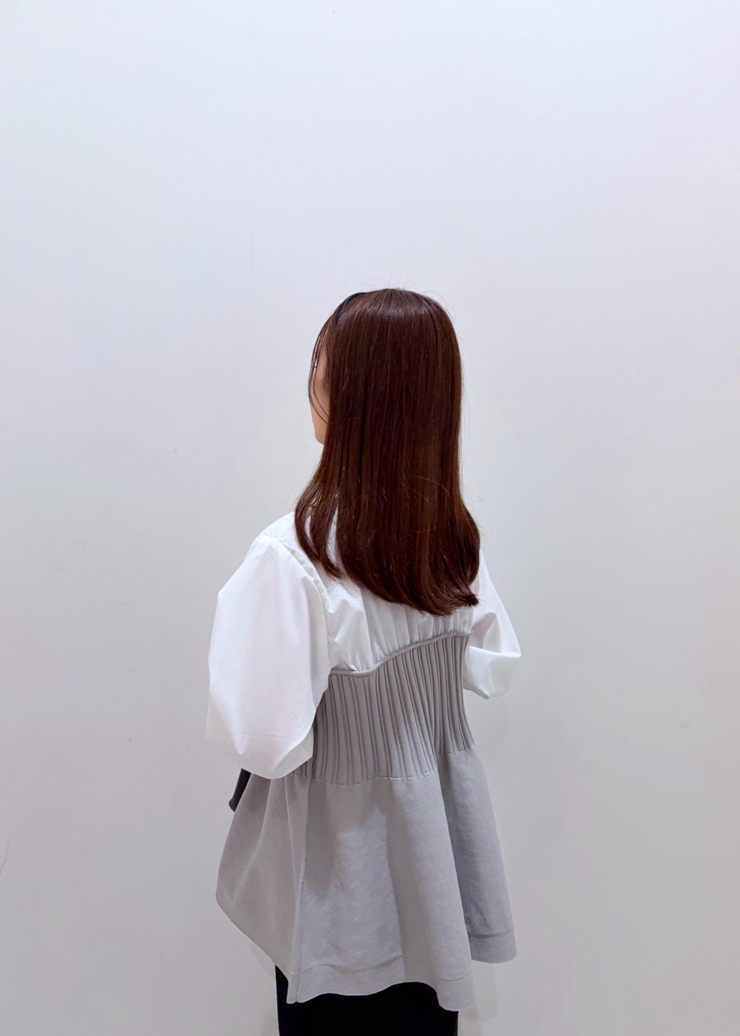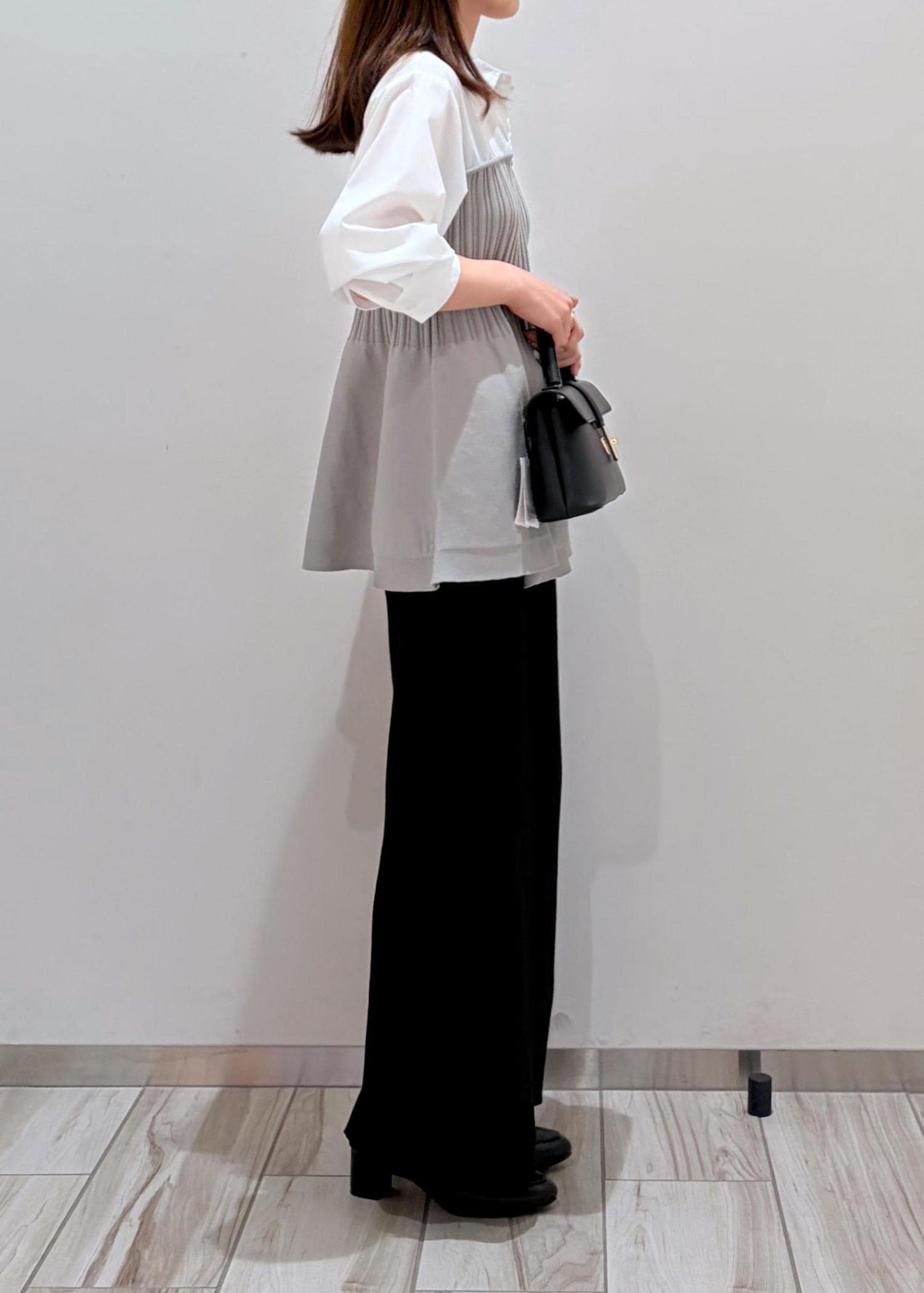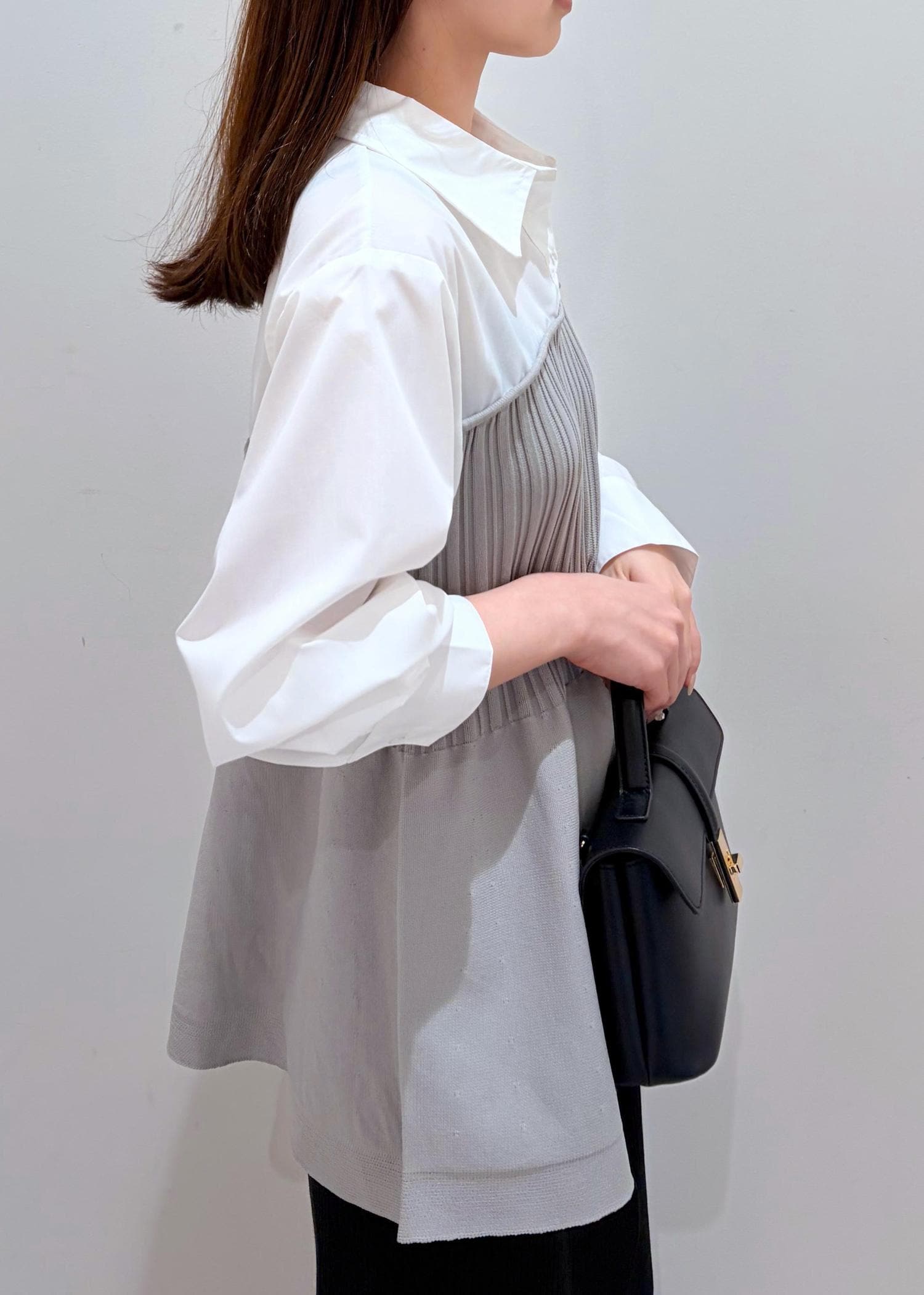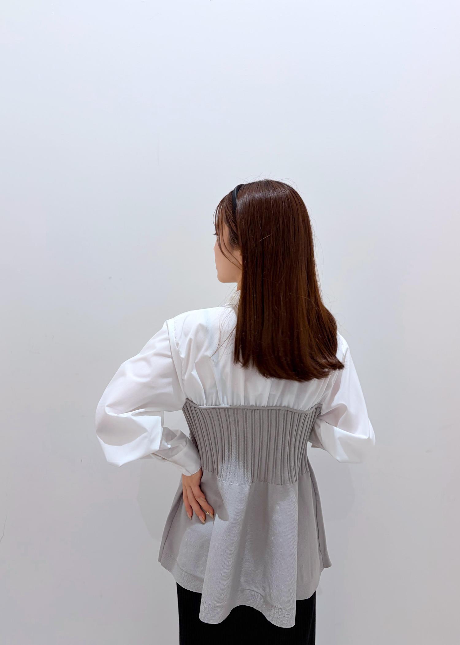 ROPÉ PICNICシャツドッキングペプラムニットライトグレー / F¥5,995レビュー154cmで、お尻にかかるやや長めの着丈です。