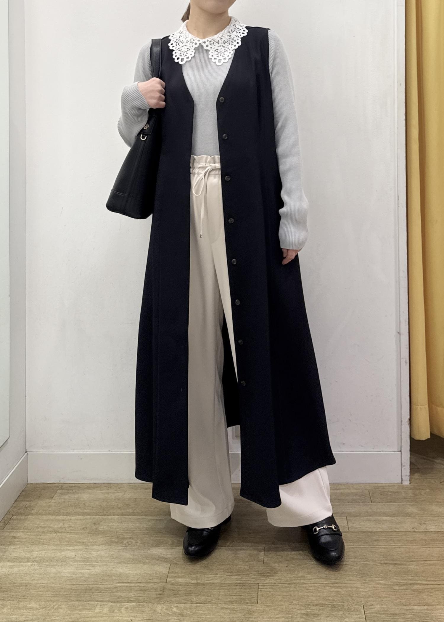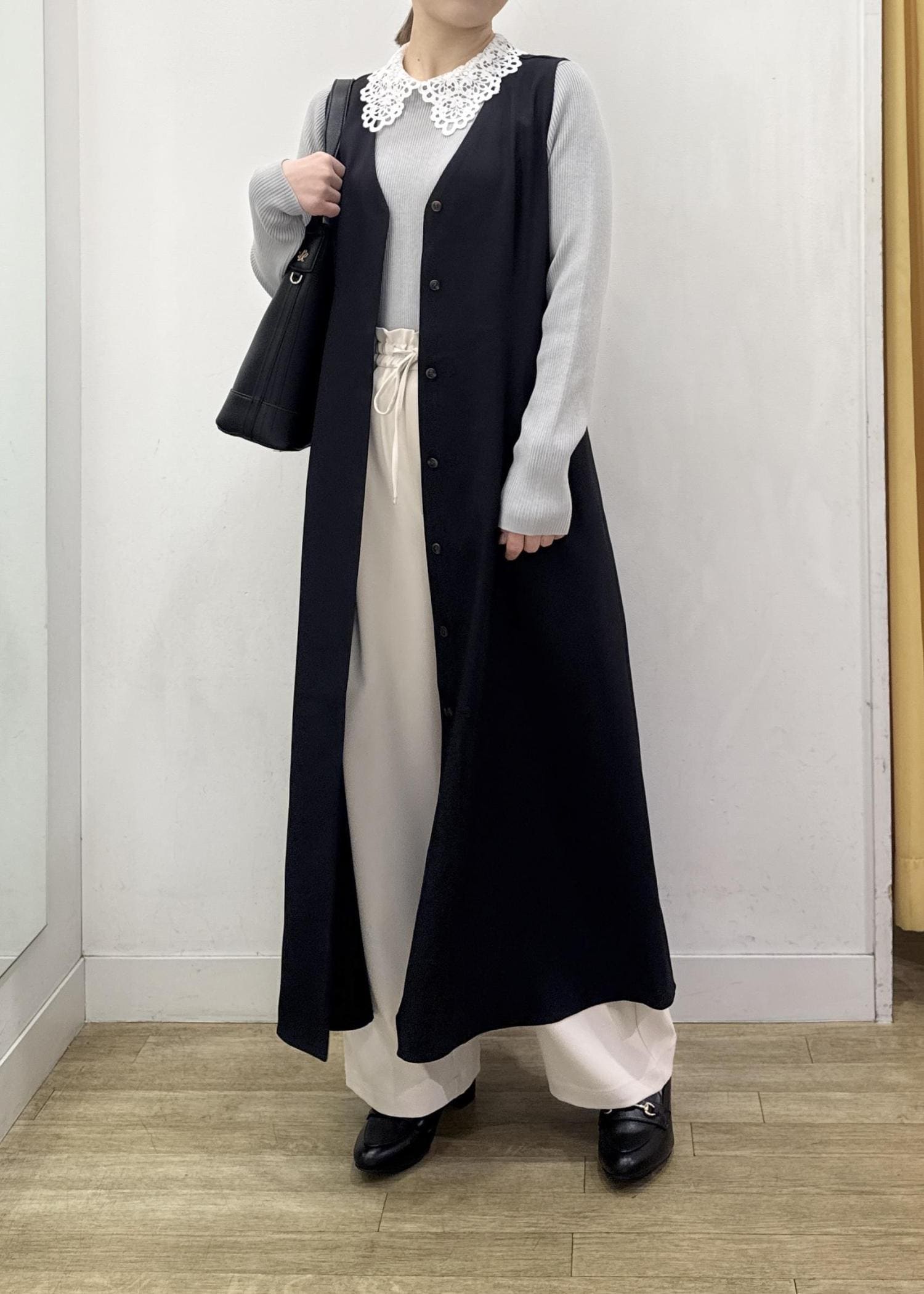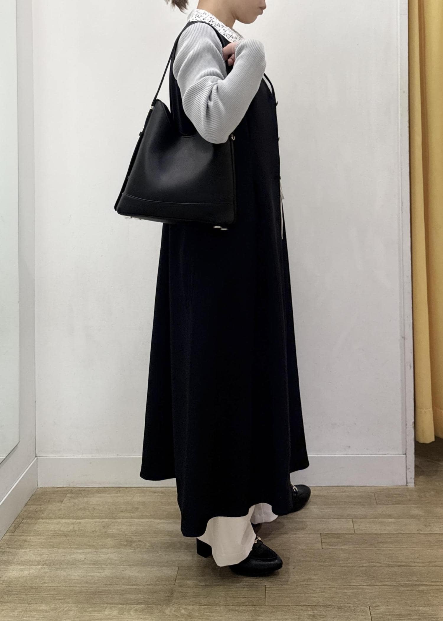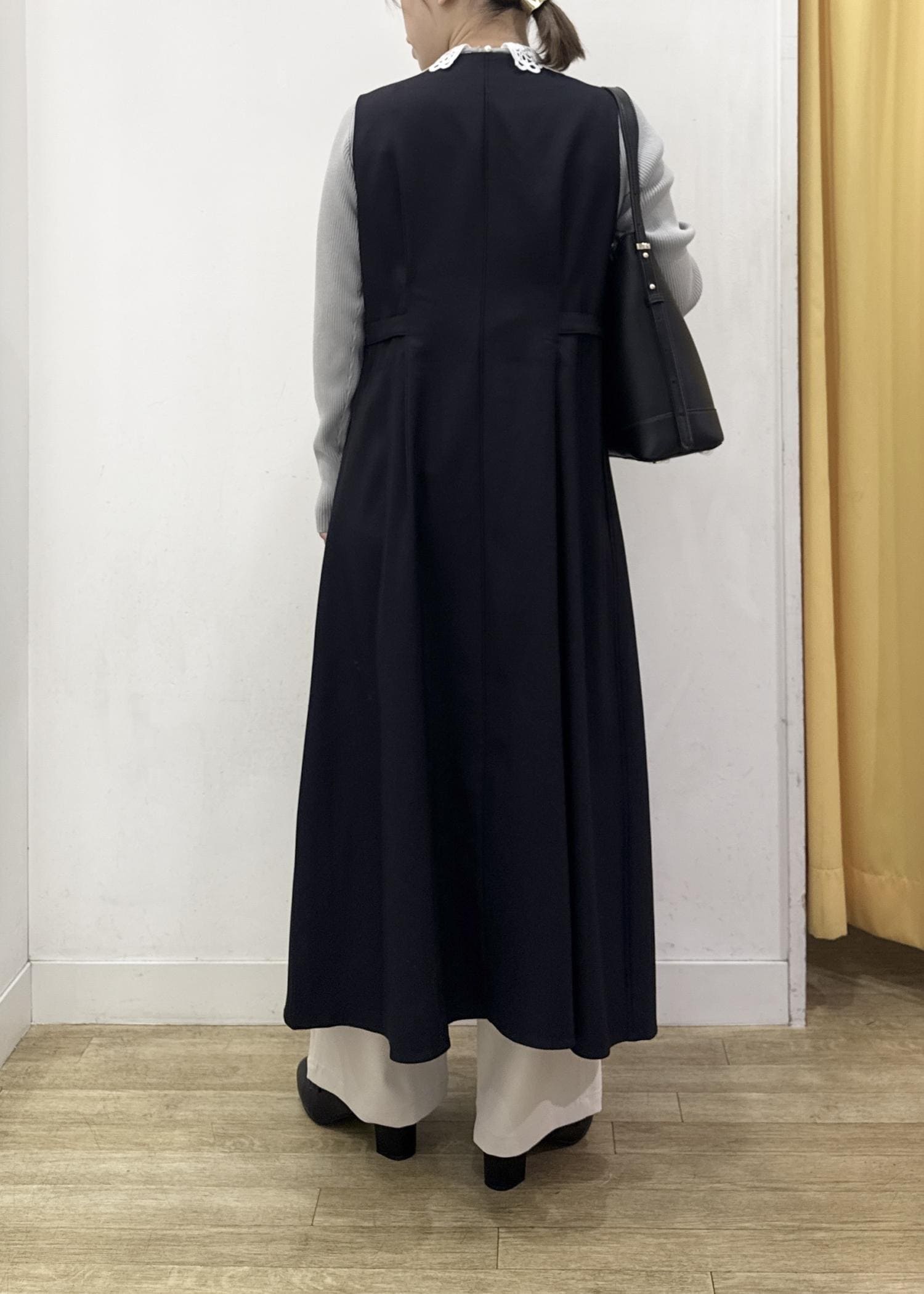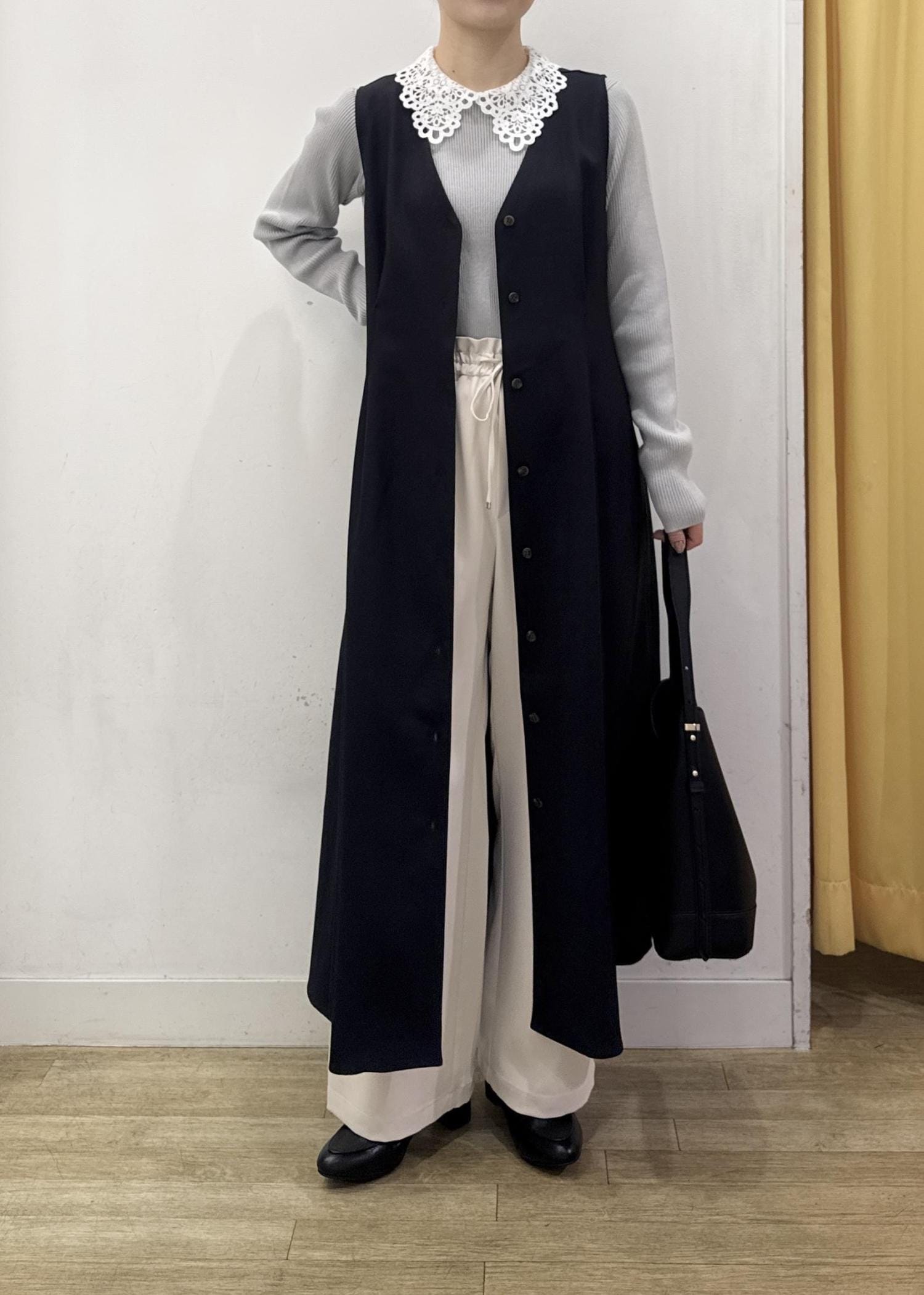 インナーを変えるだけで着回ししやすく、ワンピースとしてもジレとしても使える万能アイテムです。 -