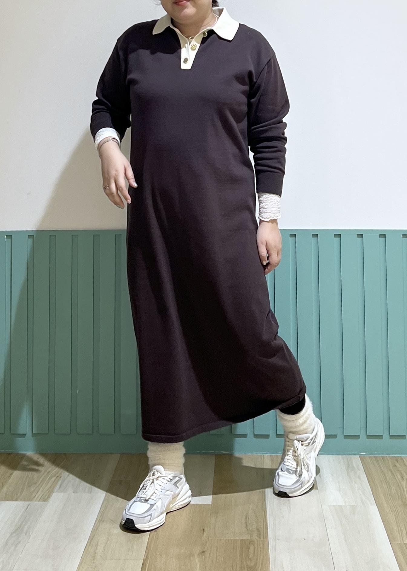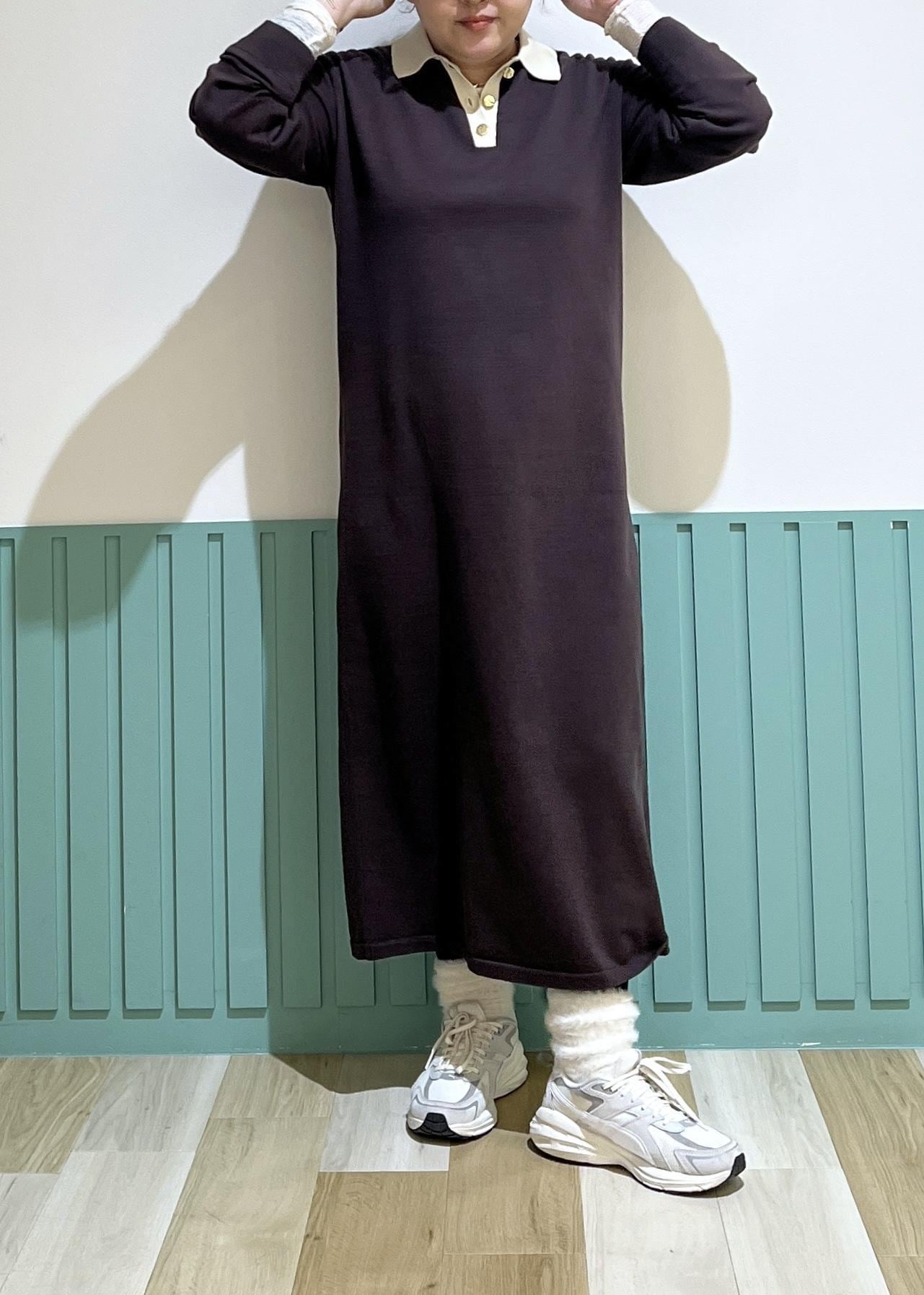 ROPÉ PICNIC配色スキッパーニットワンピースダークブラウン / F¥6,996レビューストレッチ性があり歩きやすい!首元のバイカラーがポイントになり、一枚でも様になります♡フリーサイズですが、普段Lサイズの私も楽に着用できました。