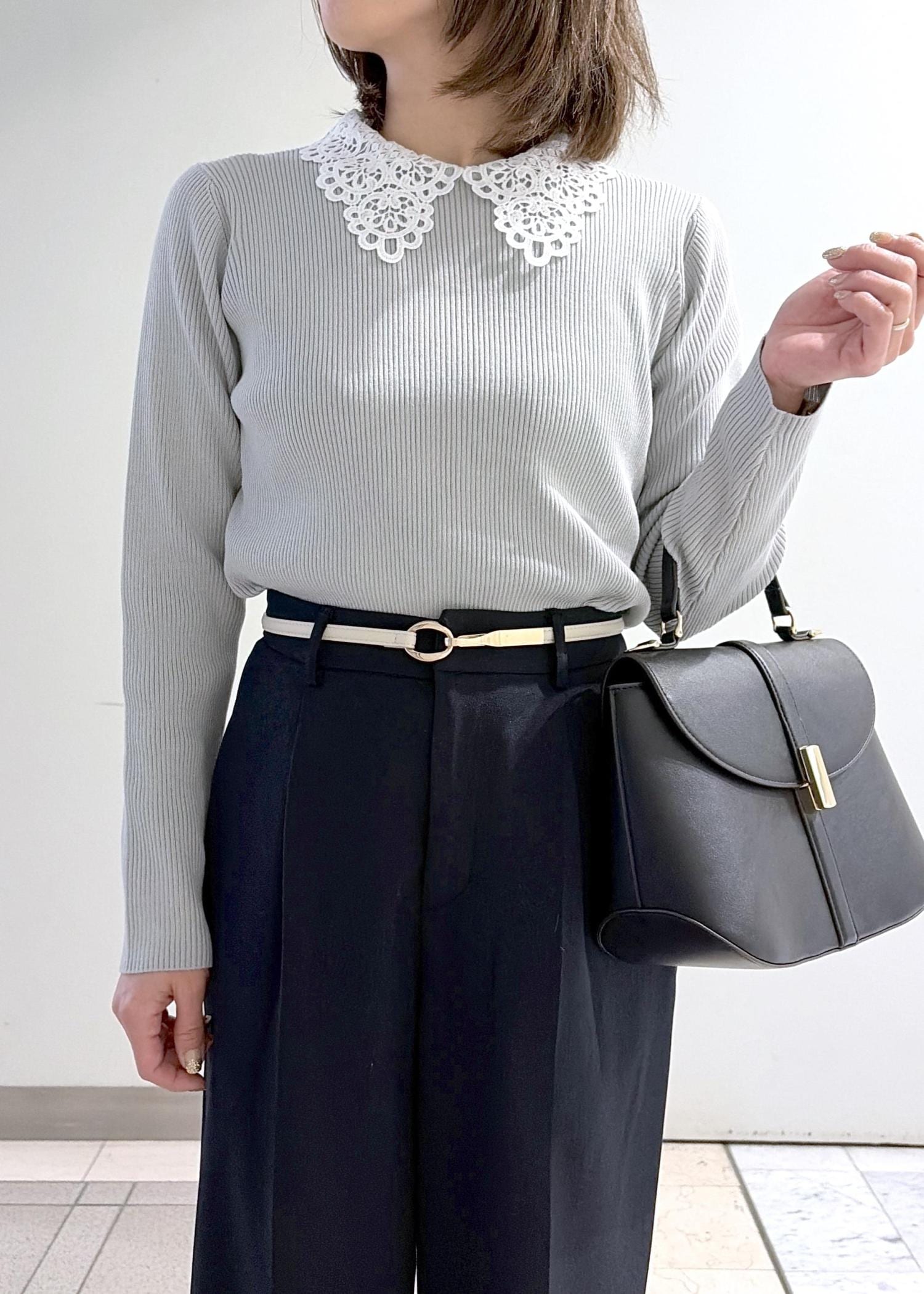 ROPÉ PICNICレースカラーニットライトグレー / S¥5,489レビュー柔らかな肌触りで程よくゆとりのあるデザインです。レースの襟が華やかさをプラスしてくれます。パンツでもスカートでも合わせやすい着丈です。
