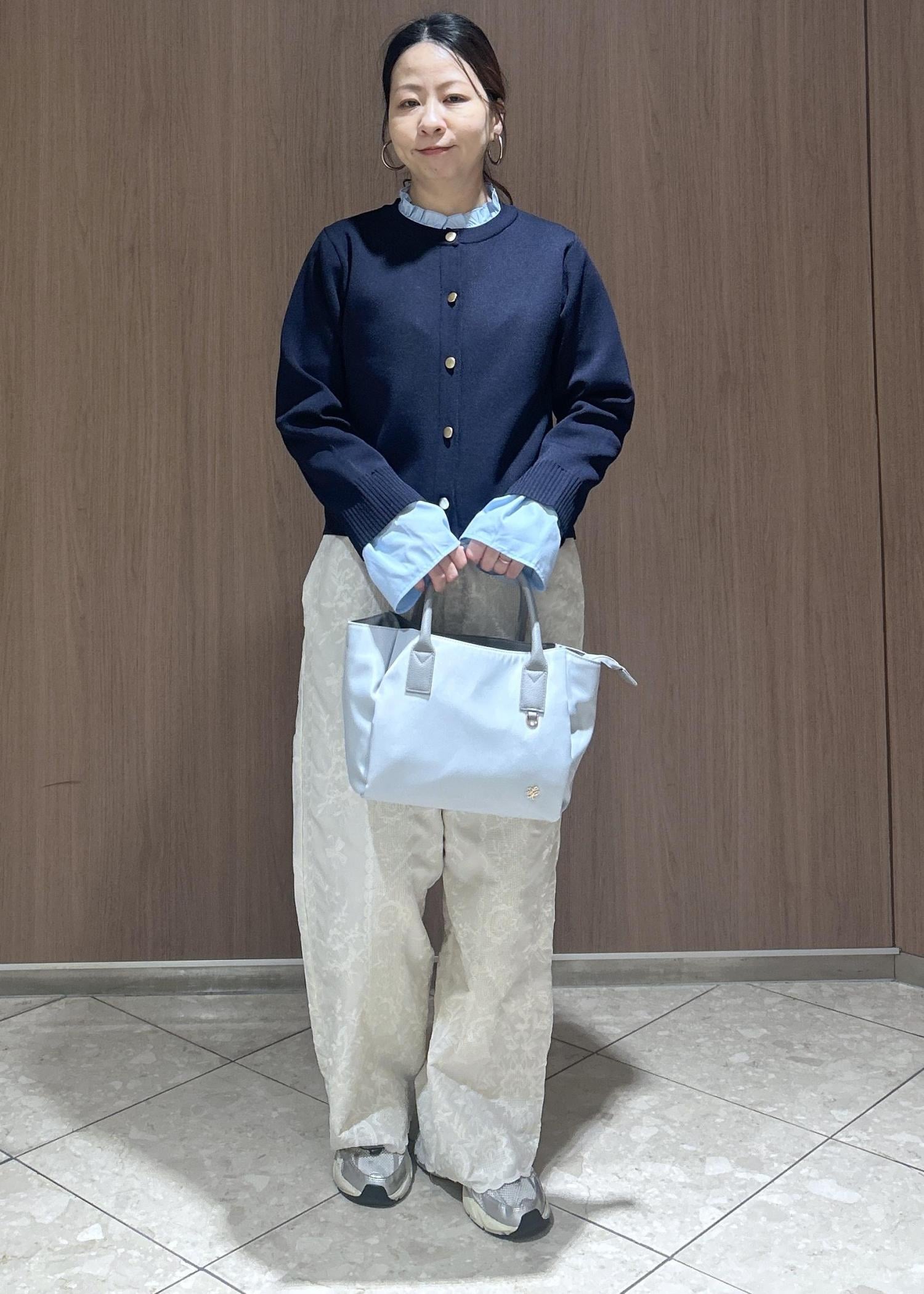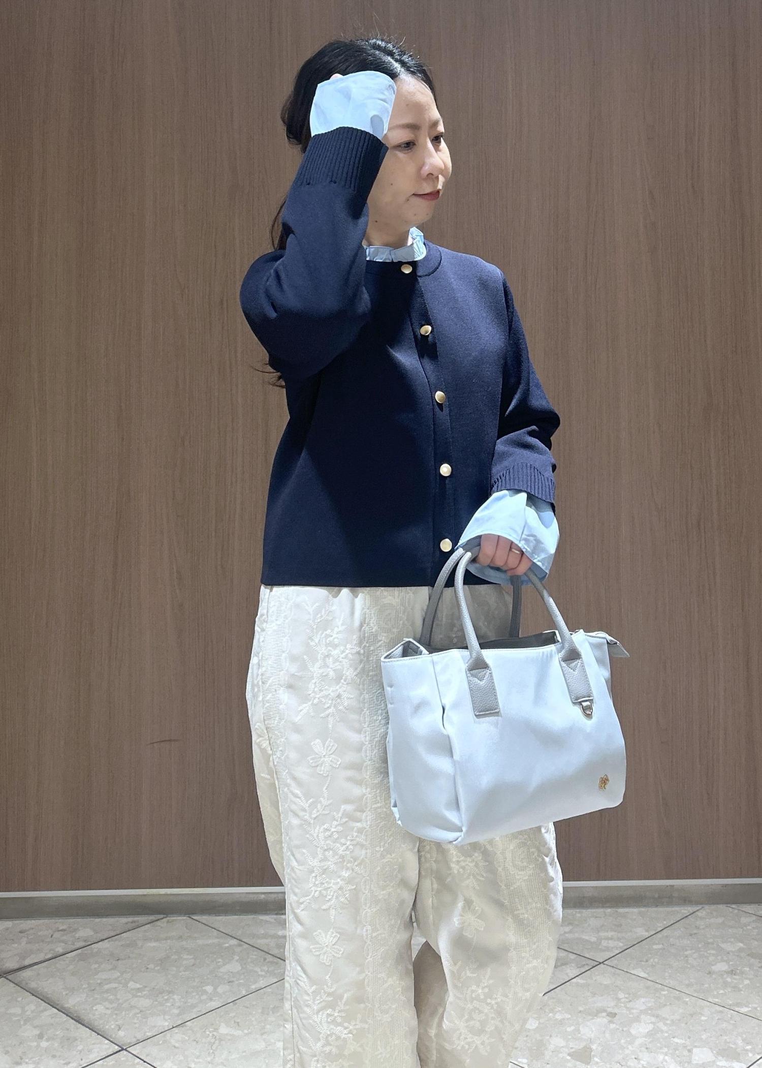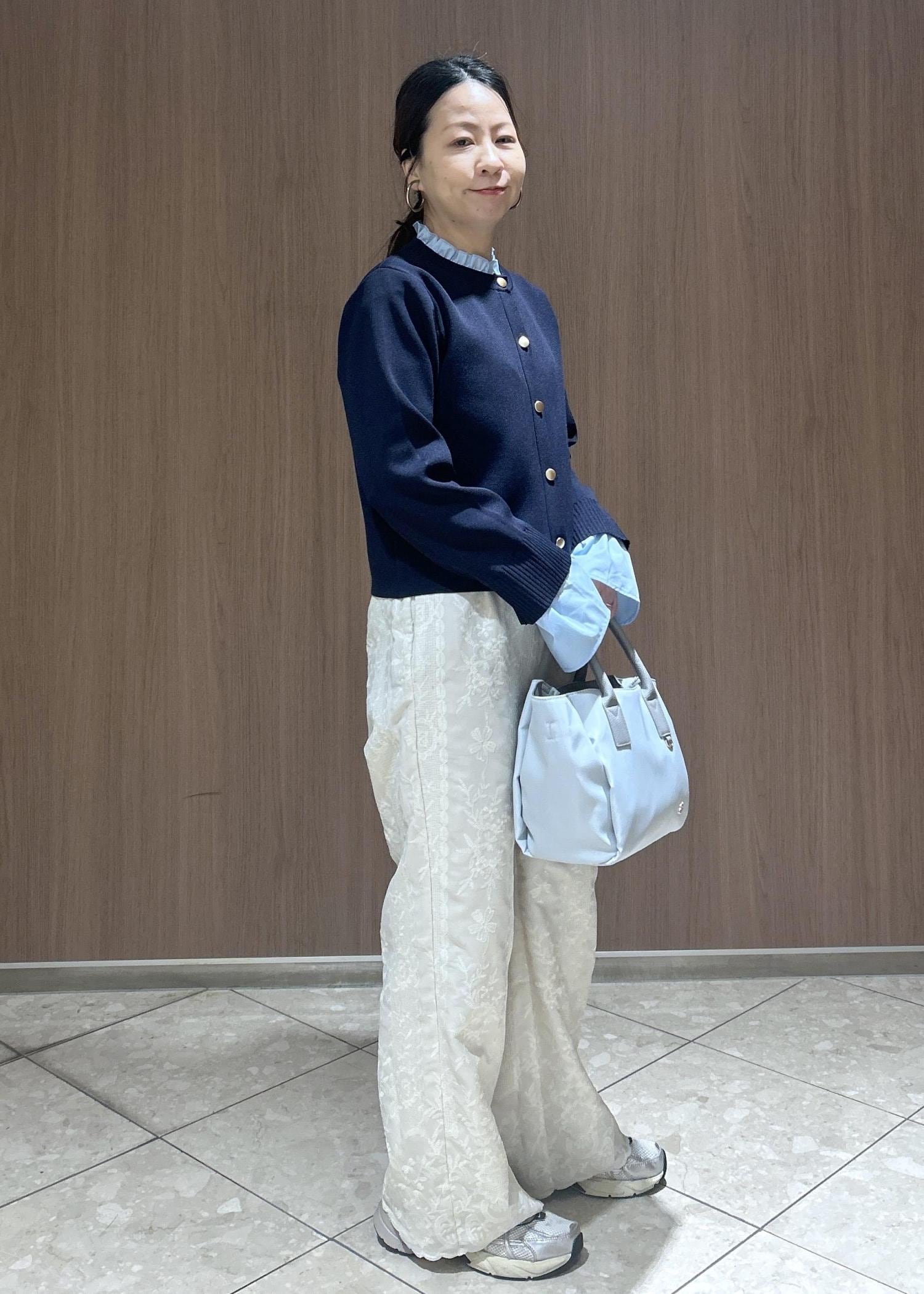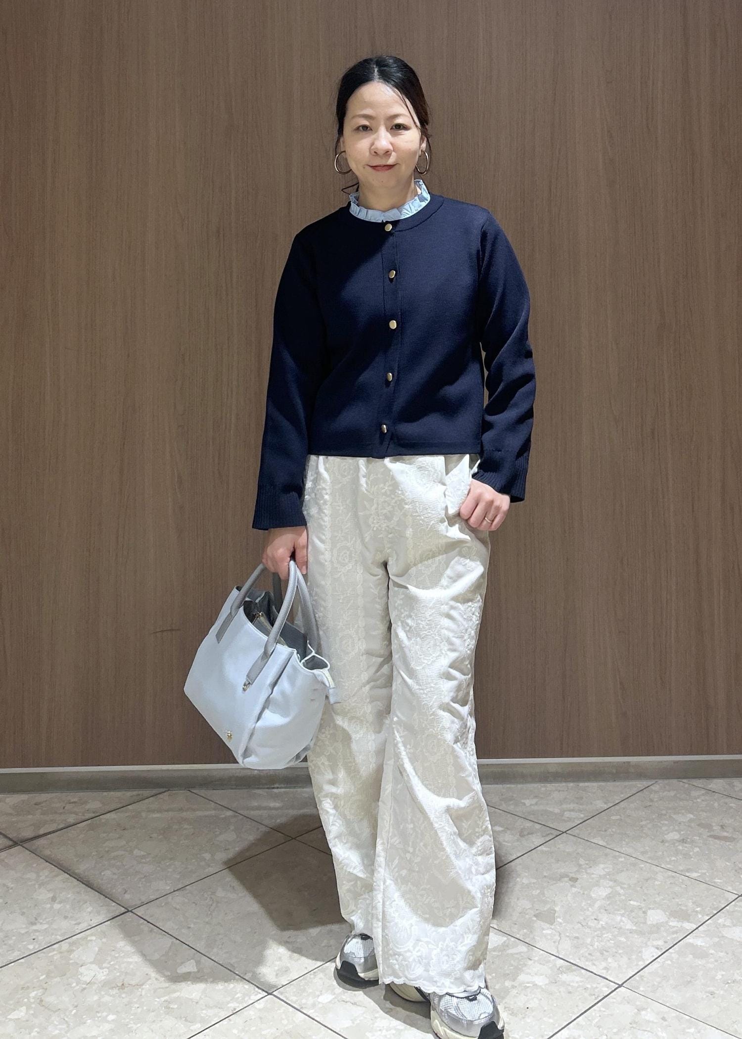 ROPÉ PICNIC襟フリルドッキングカーディガンネイビー / F¥5,995レビュー軽い羽織で、袖や襟が取り外しができるのでコーディネートの幅が広がる一着です。着用すると伸縮性もあり動きやすいです。着丈は、袖をつけたままだと手がすっぽり隠れます。着丈は骨盤かかるくらいです。