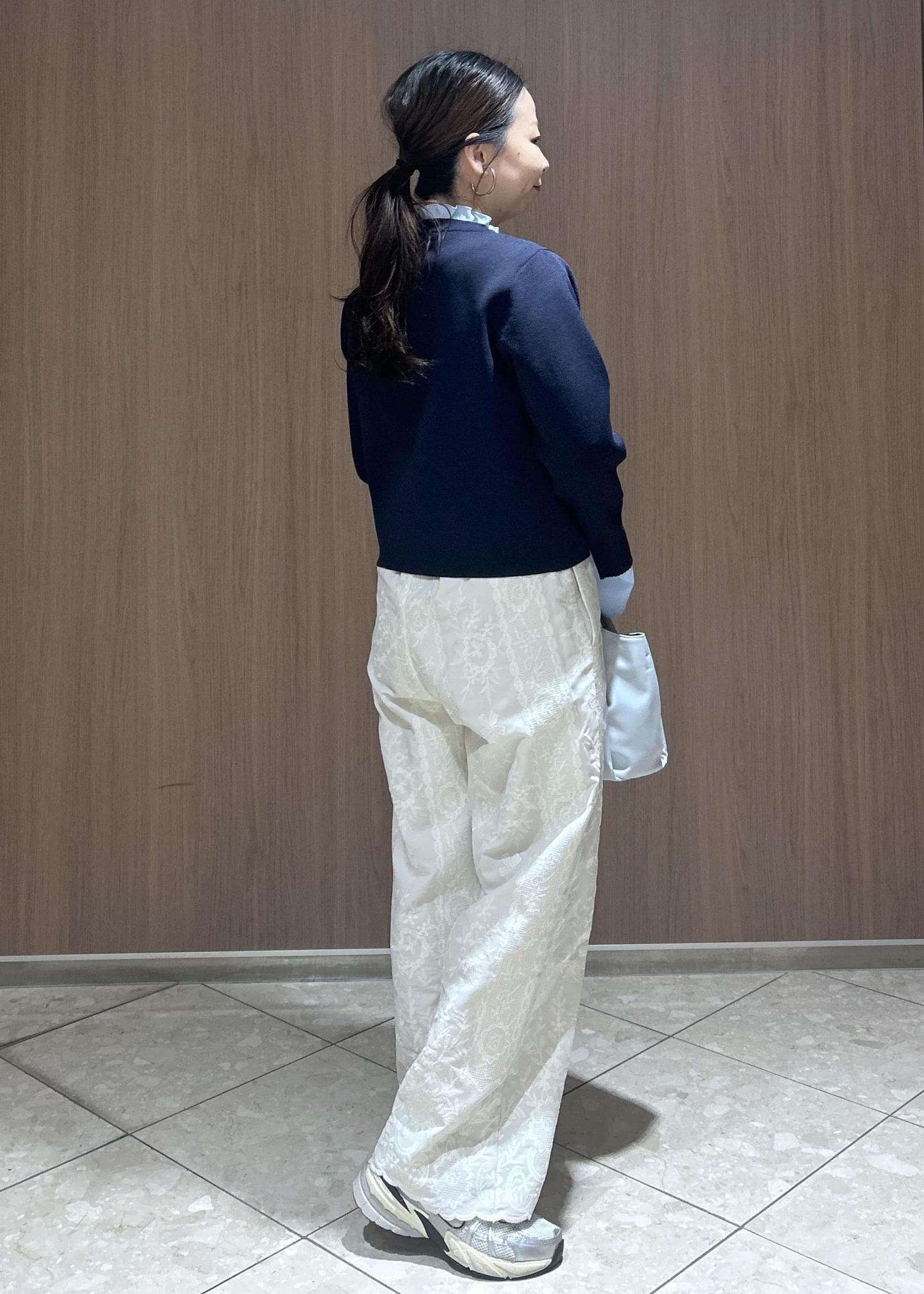 ROPÉ PICNICウィンターイージー刺繍パンツキナリ / S¥7,997レビュー着丈の長さは、バレーシューズ履いて裾がギリギリつく長さでした。裏地が入ってあるので白ですが透け感気にせずはけます。