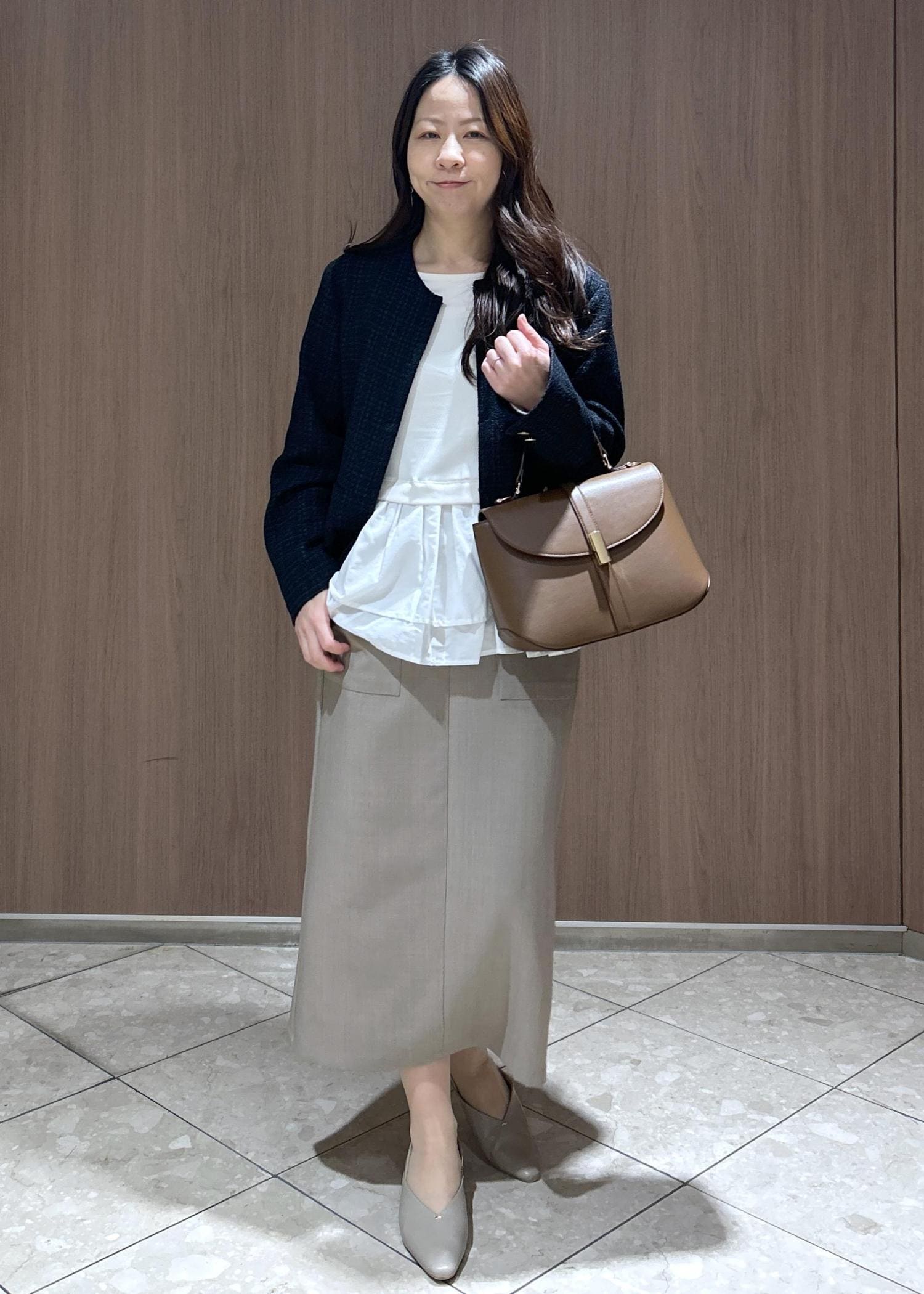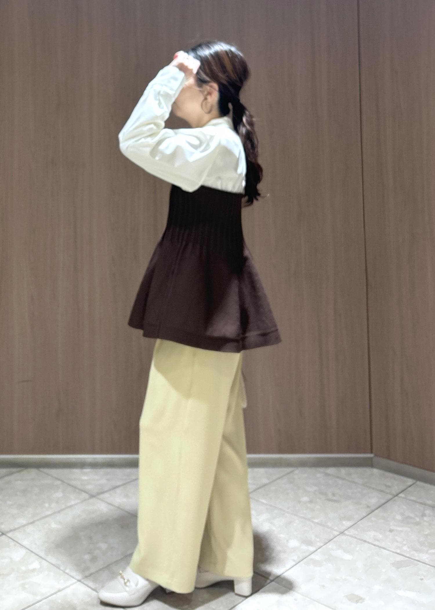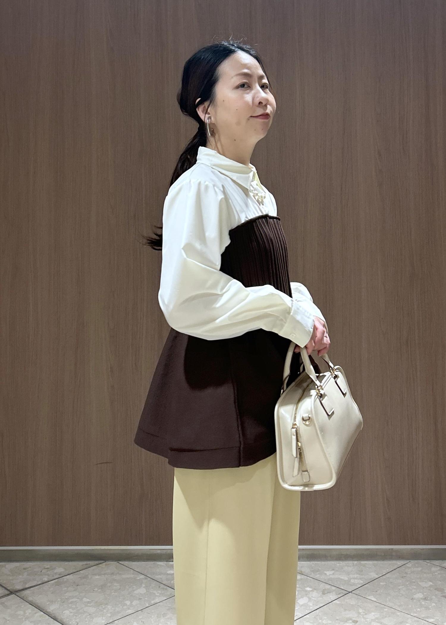 春はカラーのアイテムが着たくなる季節ですよね。今年はイエローに挑戦!トップにブラウンを合わせる事で落ち着いたカラーコーディネートが完成です。カラー合わせが苦手な方でも挑戦しやすいですよ。