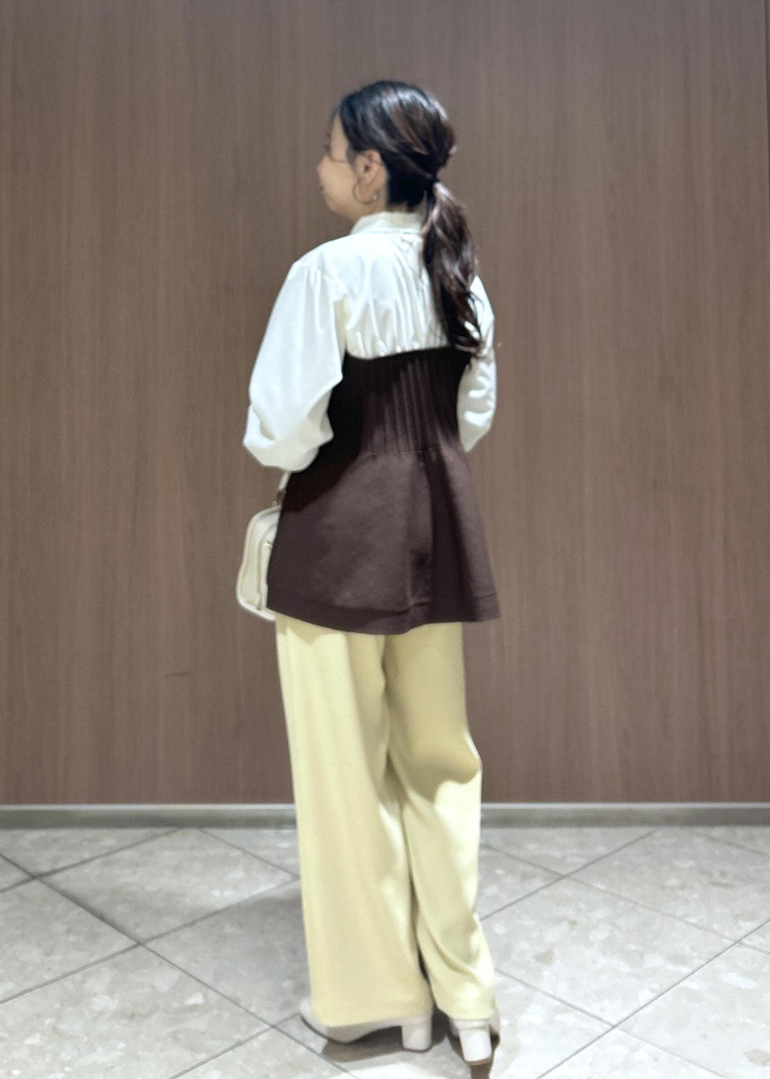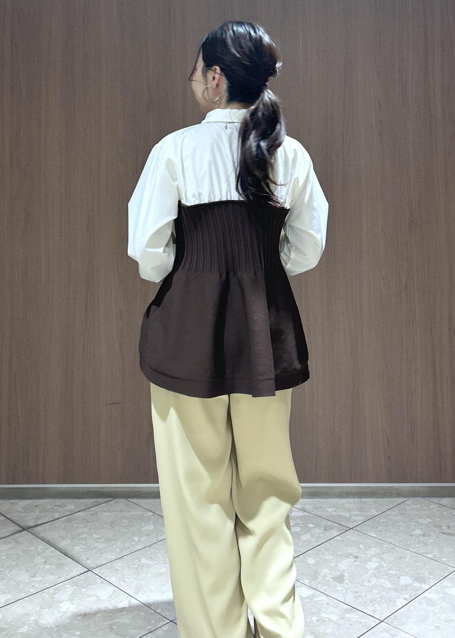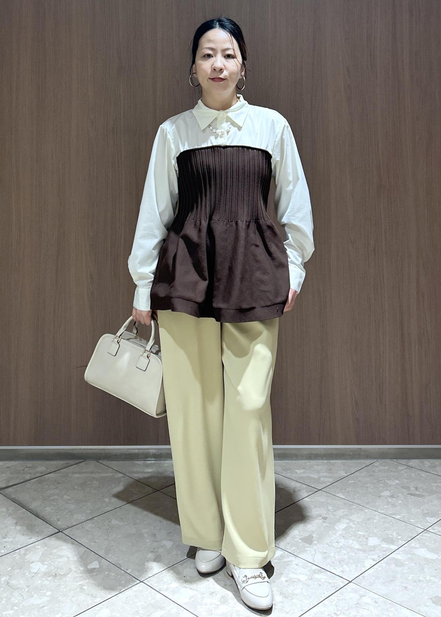 ROPÉ PICNICシャツドッキングペプラムニットブラウン / F¥5,995レビュー切り替え部分がゴムなので着脱しやすいです。襟があるのできちんと見えするのでジャケットのインナーでお仕事にも活用できるアイテムです。