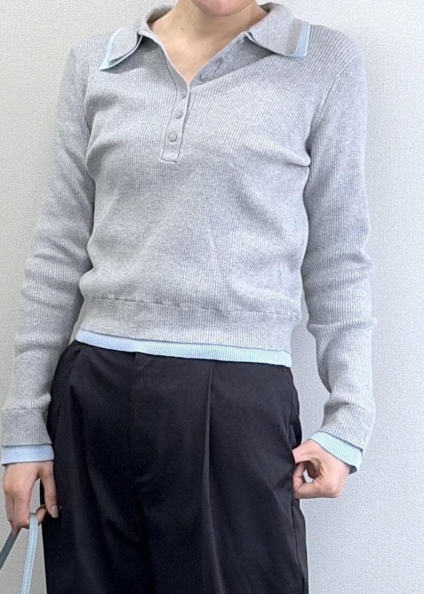 NEW!ROPÉ PICNICレイヤード風リブポロニットライトグレー / F¥5,489レビュー柔らかなリブ素材で伸縮性があり楽な着心地です。長い袖のデザインはかわいい雰囲気で着こなせるので高身長さんにもおすすめです!