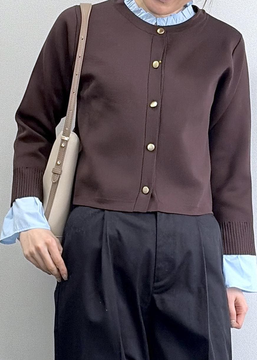 ROPÉ PICNIC襟フリルドッキングカーディガンダークブラウン / F¥5,995レビュー襟と袖フリルがドッキングになった、一枚でおしゃれ見えするカーディガン!丈が短めなのでスカートやハイウエストのパンツでスタイルアップな着こなしを楽しめます♫