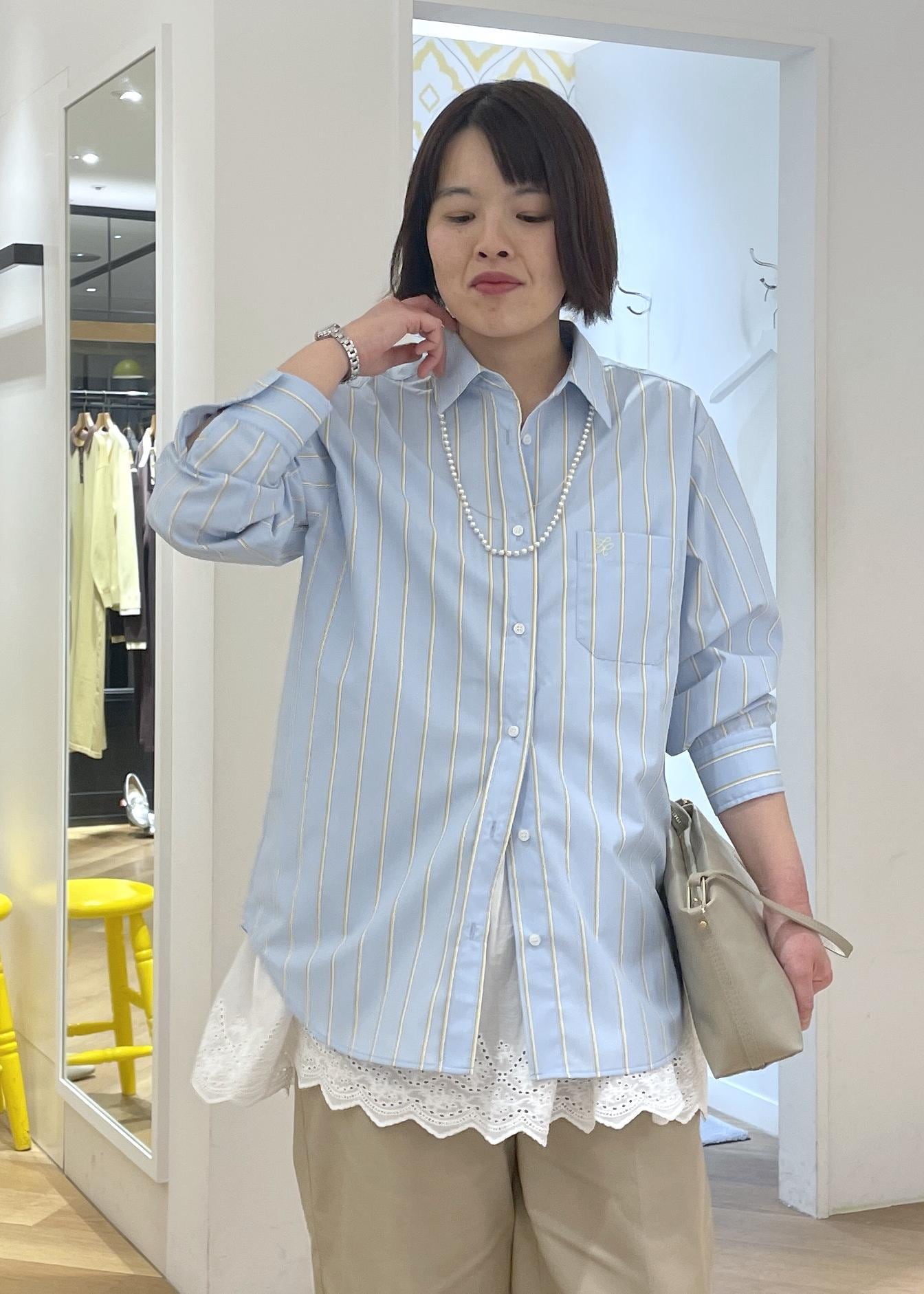 ROPÉ PICNIC【WEB限定カラー】オーセンティックシャツ/UVカット・防シワブルー系 / F¥5,489レビューごわつかないくらいの程良いハリ感のあるシャツできれいなシルエットでお召し頂けます。ゆったりとしたサイズ感で、身頃はラインを拾わず体型カバーしてくれます。着丈はヒップが隠れるくらいの長さです。