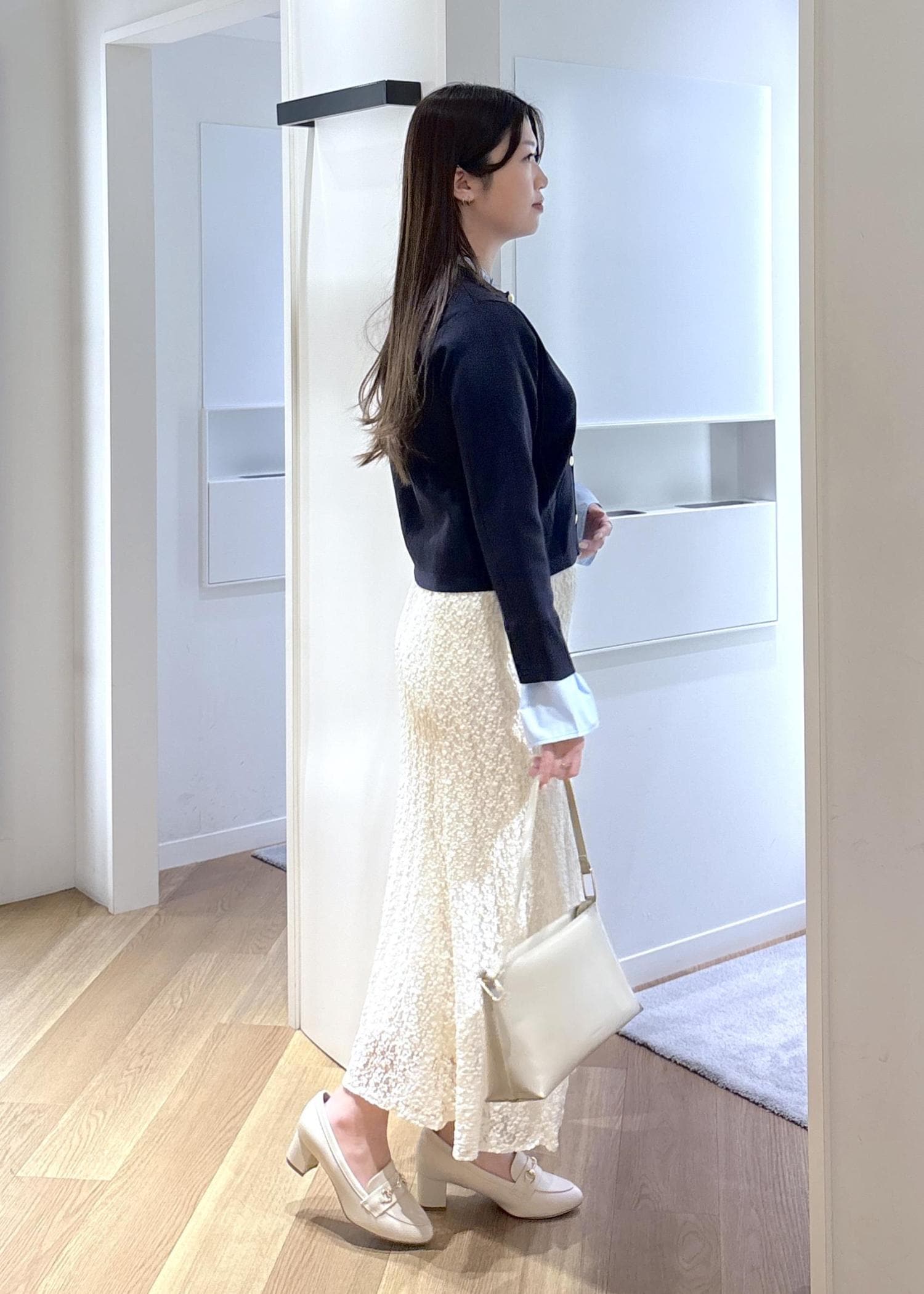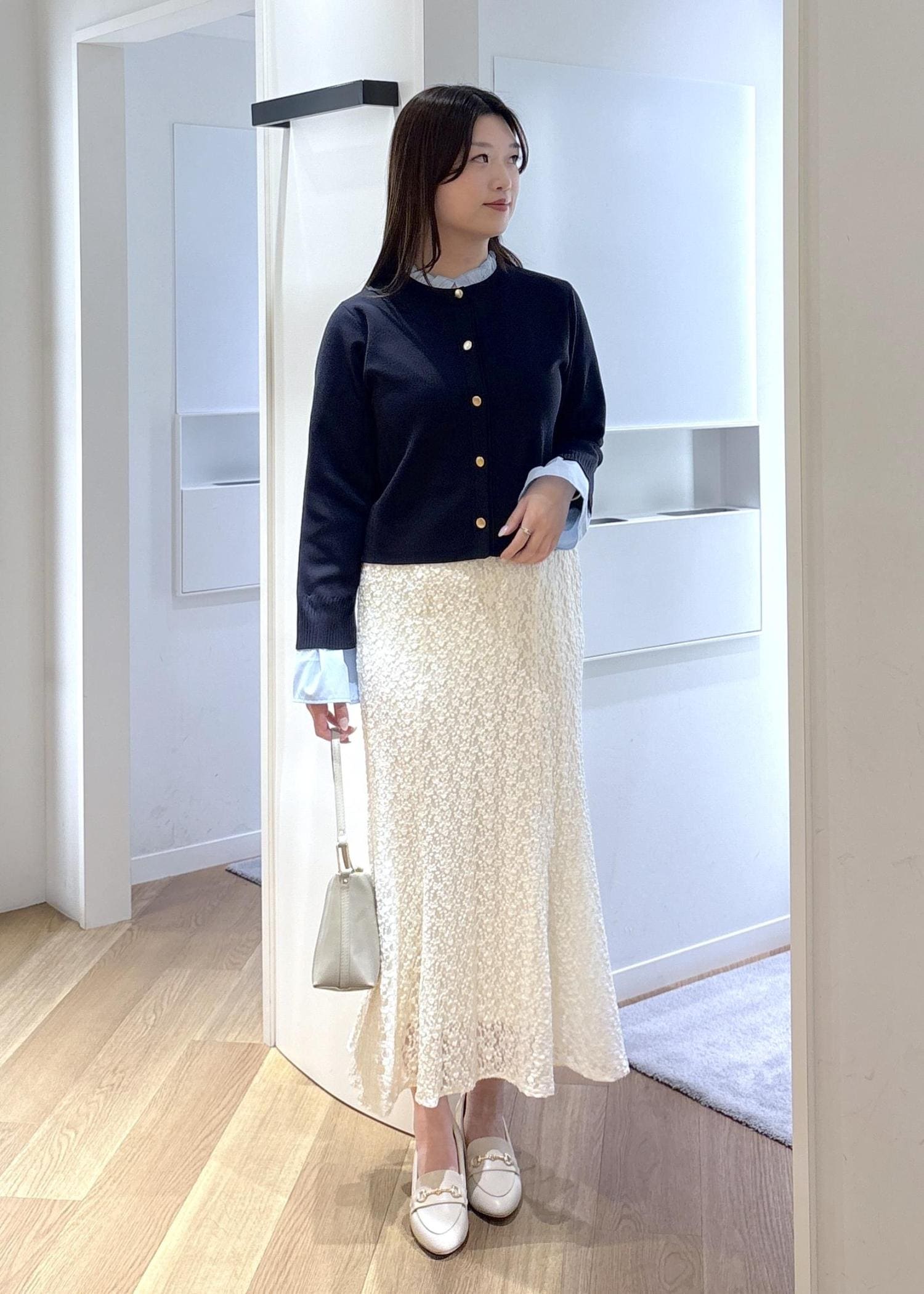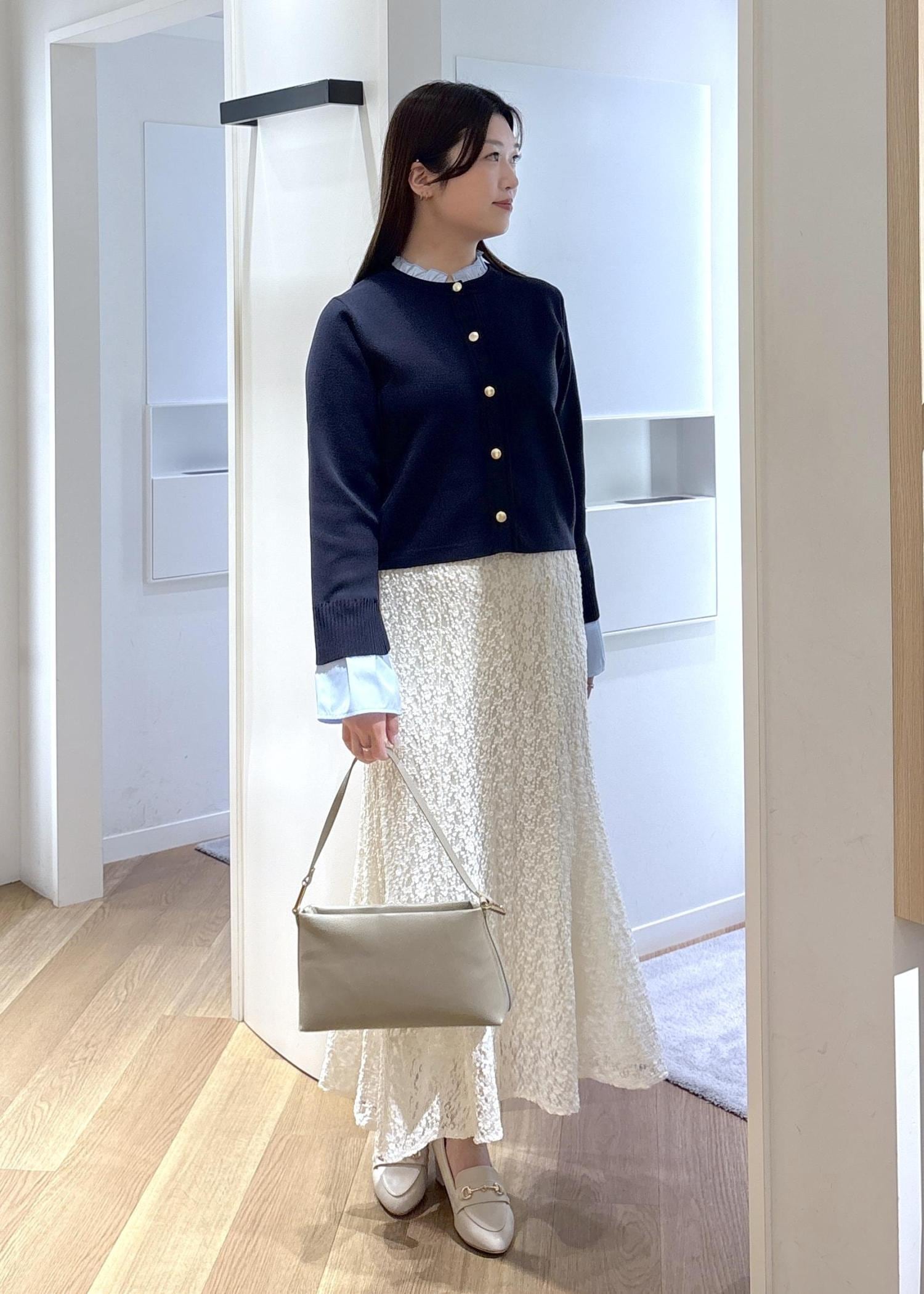 レーススカートで綺麗めに合わせたので、お仕事はもちろん、デートやお出かけにピッタリなコーデです♡