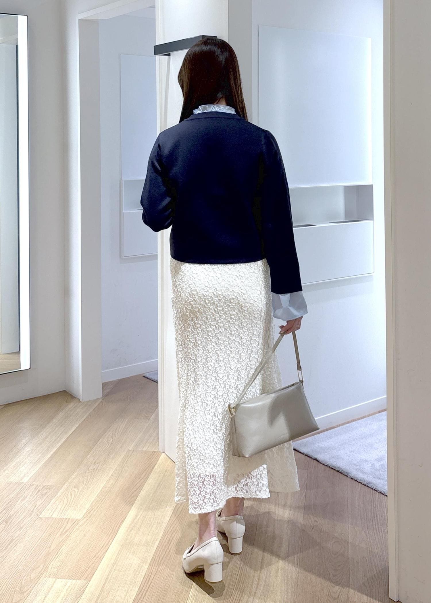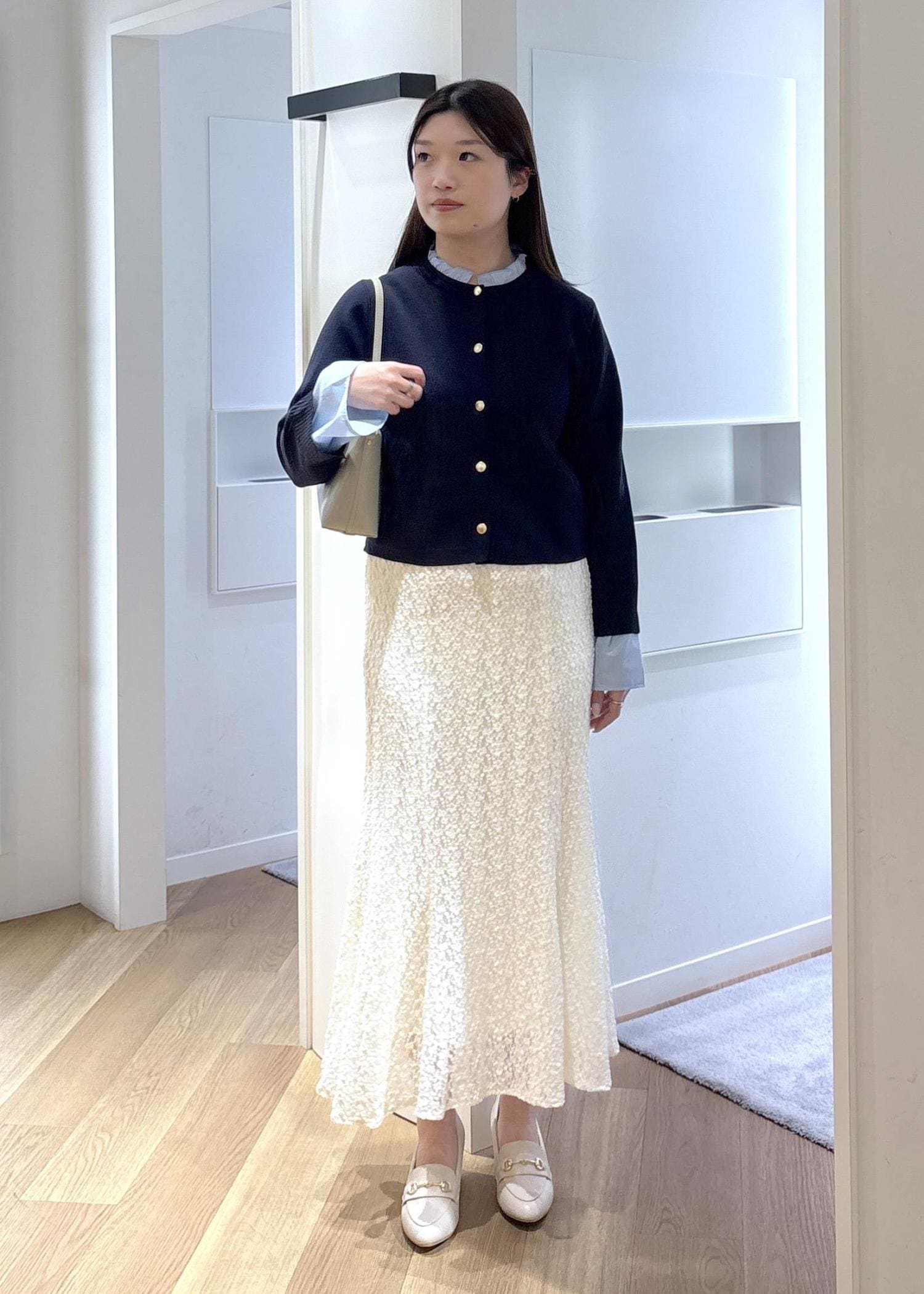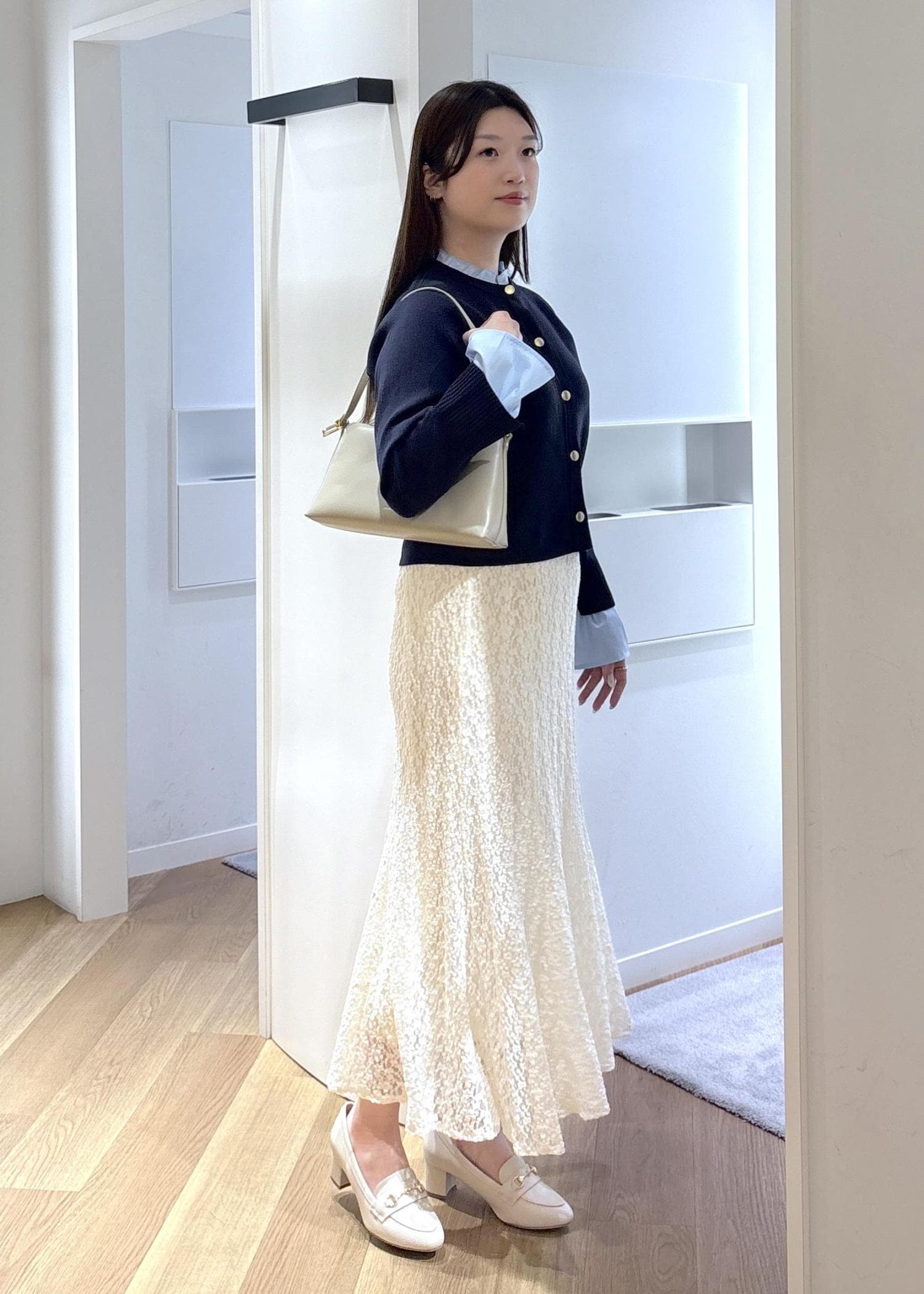 レーススカートで綺麗めに合わせたので、お仕事はもちろん、デートやお出かけにピッタリなコーデです♡
