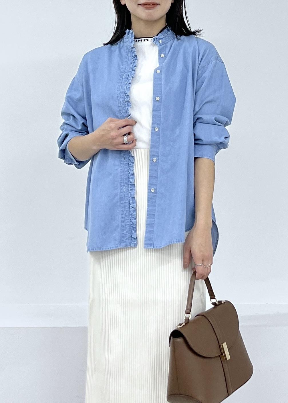 予約ROPÉ PICNICシャンブレーフリルシャツ/イージーケアサックス / F¥5,995レビュー柔らかいデニム素材で軽くオールシーズン着やすい素材感。