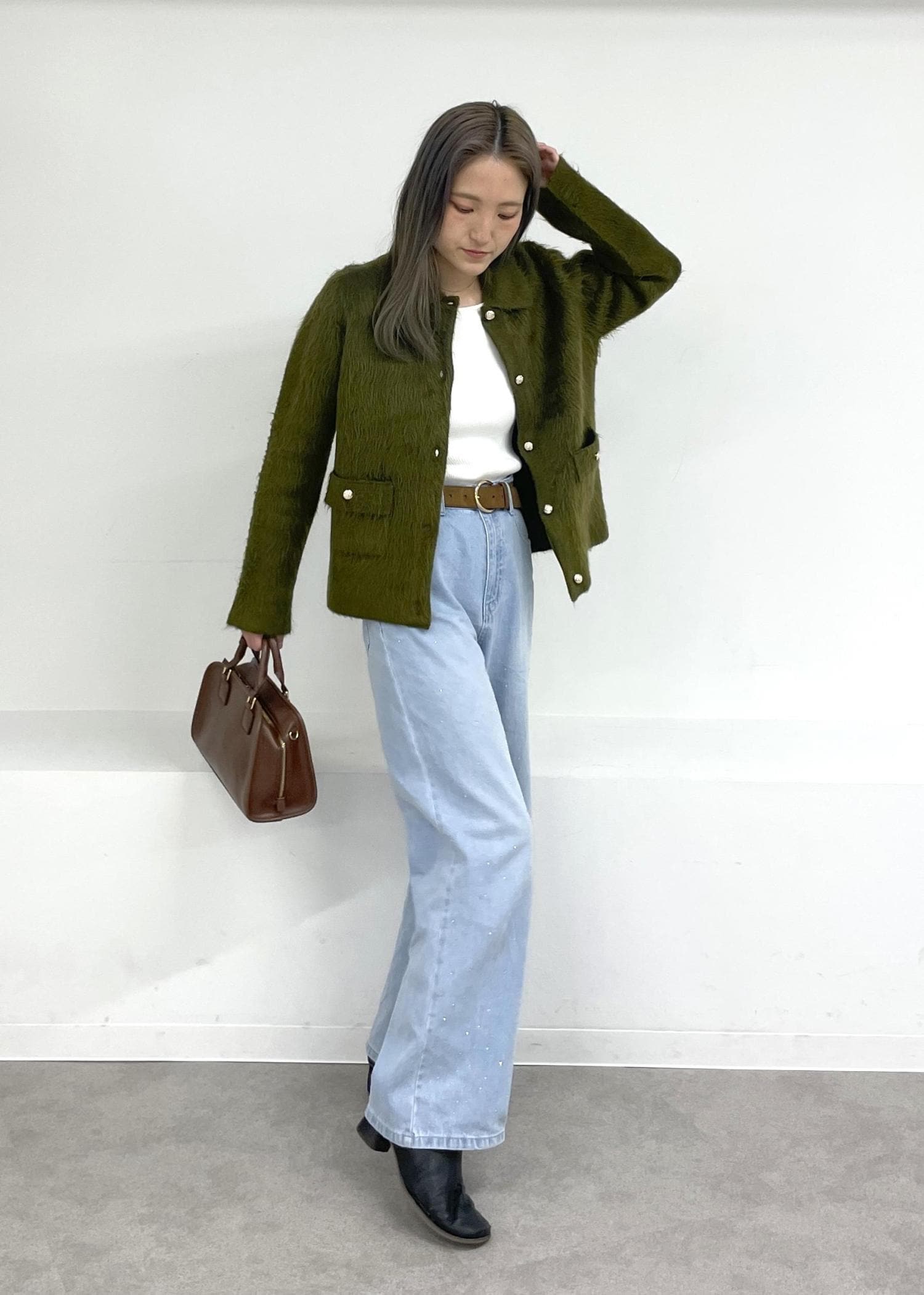 春を意識してインナーとデニムを明るい色にしました!