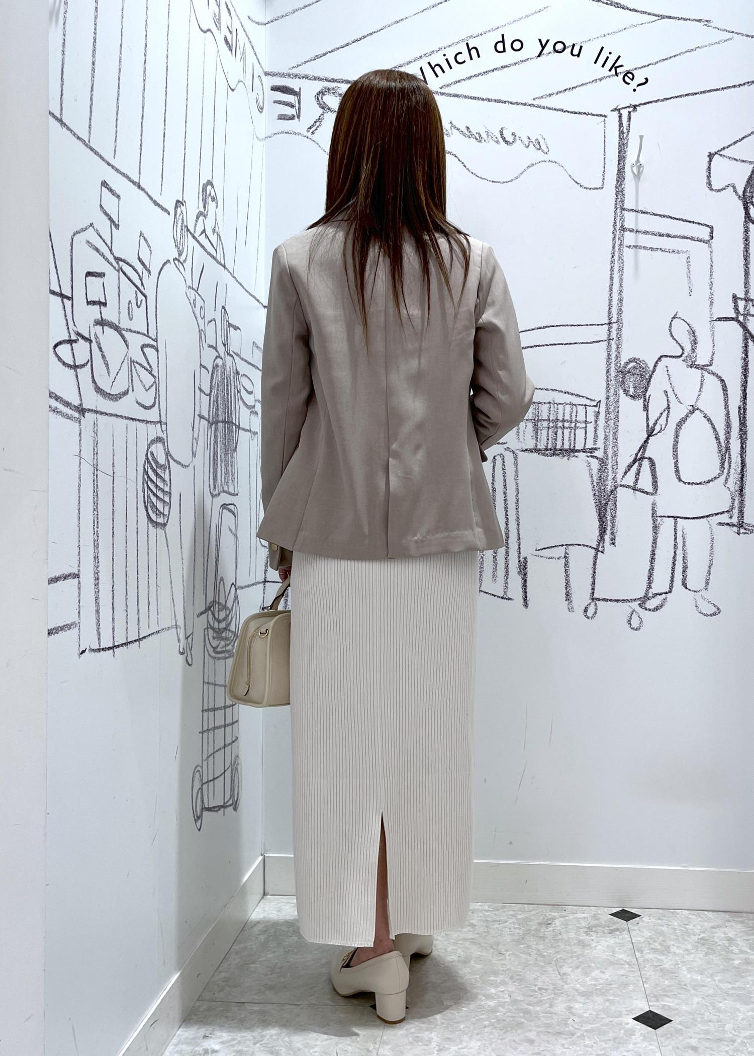身幅は、身体のラインを拾わないくらいで適度にフィットします。すっきりとしたラインです。