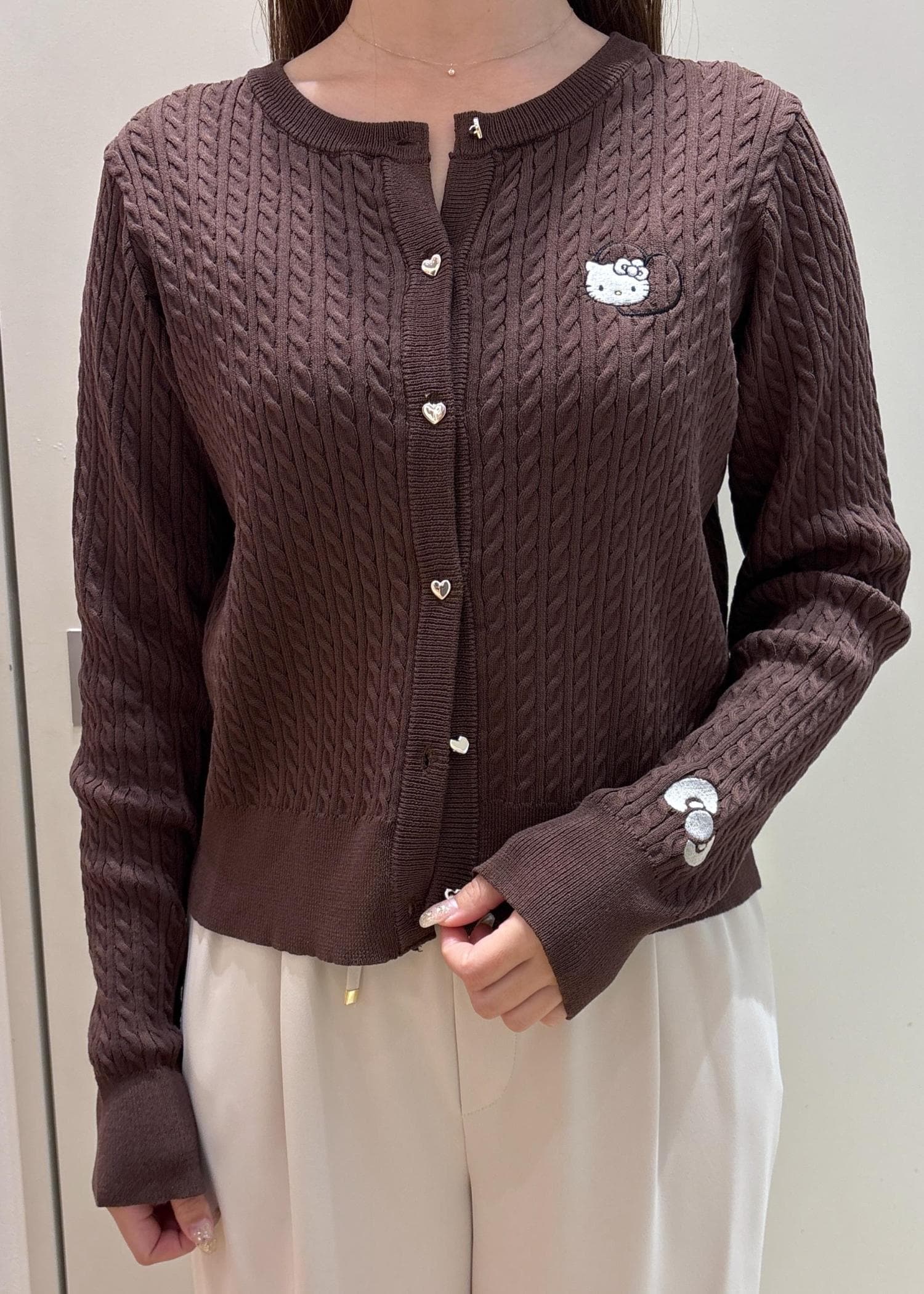 ROPÉ PICNIC【ROPE' PICNIC×ハローキティ】ワッペンケーブルニットカーディガンダークブラウン / F¥5,995レビューコンパクトシルエットの伸縮性のあるカーディガン。