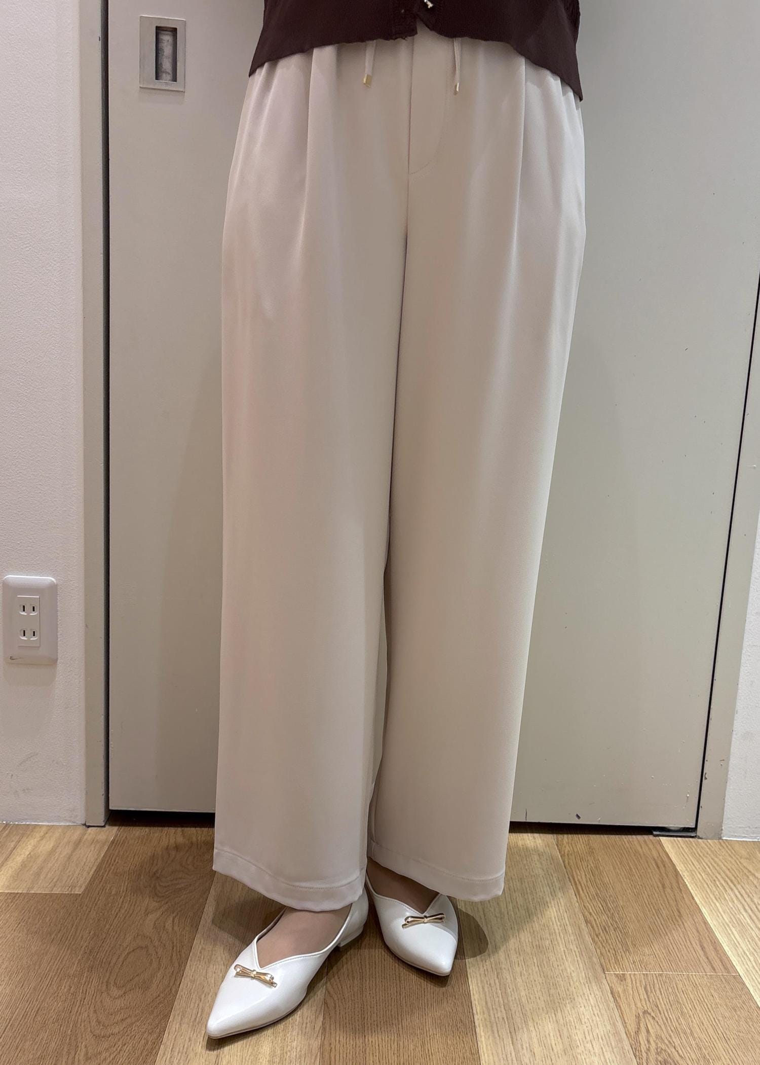 ROPÉ PICNICステファニージョグイージーワイドパンツベージュ / M¥5,489レビュー落ち感のあるワイドパンツはウエストゴムで紐付きなのでサイズ調節可能です。