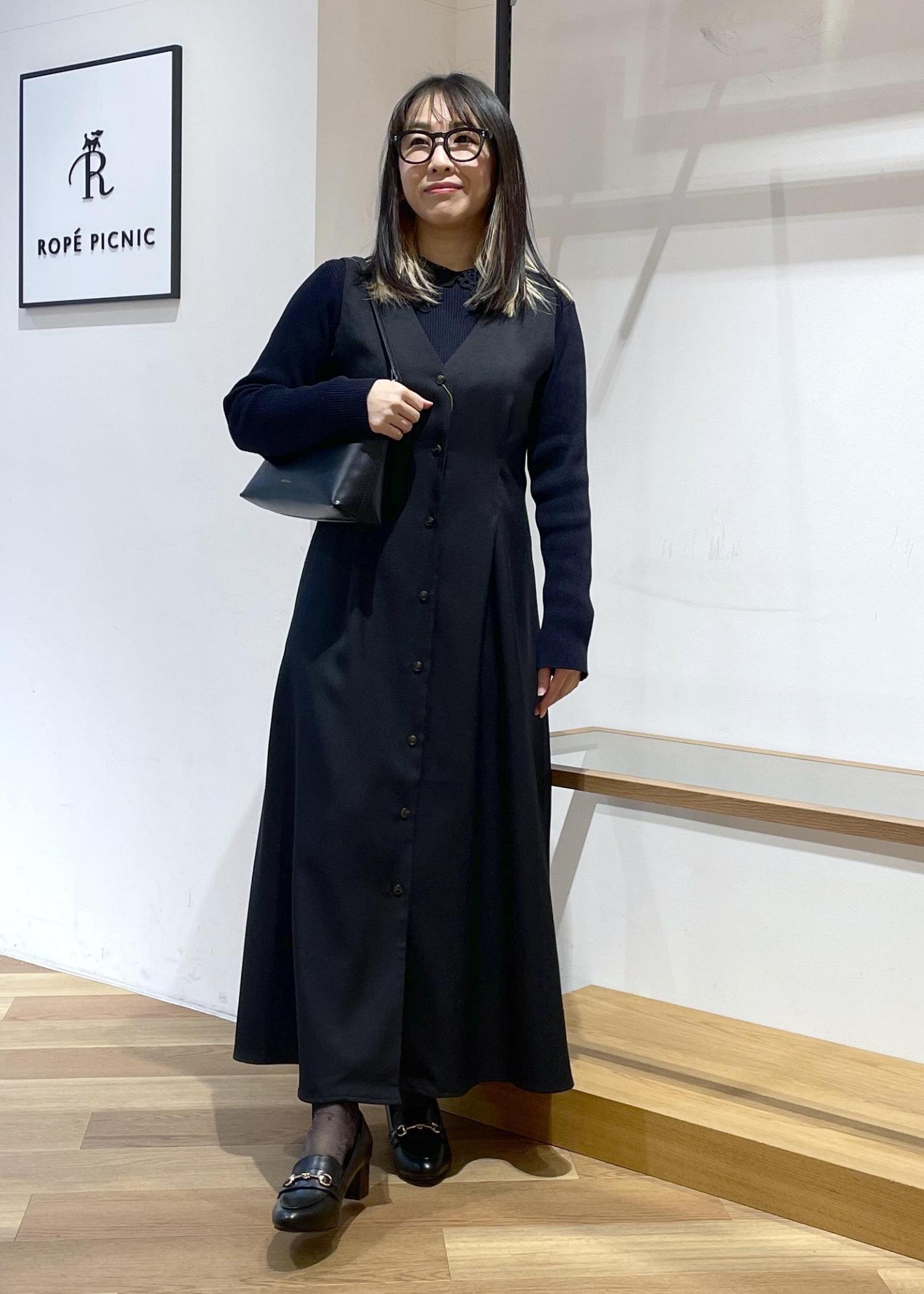 ROPÉ PICNICウエストタックジャンパースカートネイビー / F¥7,997レビューウエストにタックが入っており、ボタン調節も可能です○前ボタンを開けてジレとしても着用していただけます。