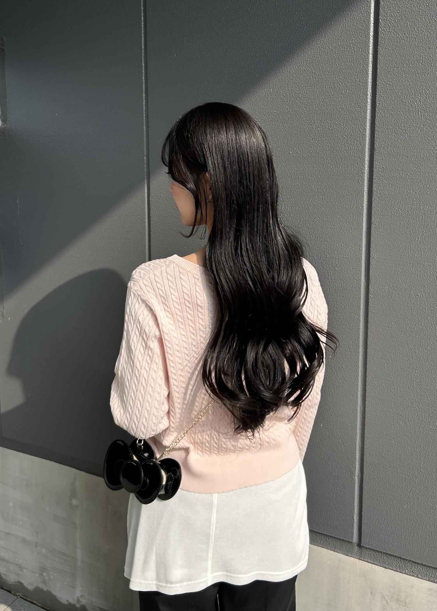 NEW!ROPÉ PICNIC【ROPE' PICNIC×ハローキティ】ワッペンケーブルニットカーディガンピンク / F¥5,995レビュー長めの袖丈で、手の甲まですっぽりです。