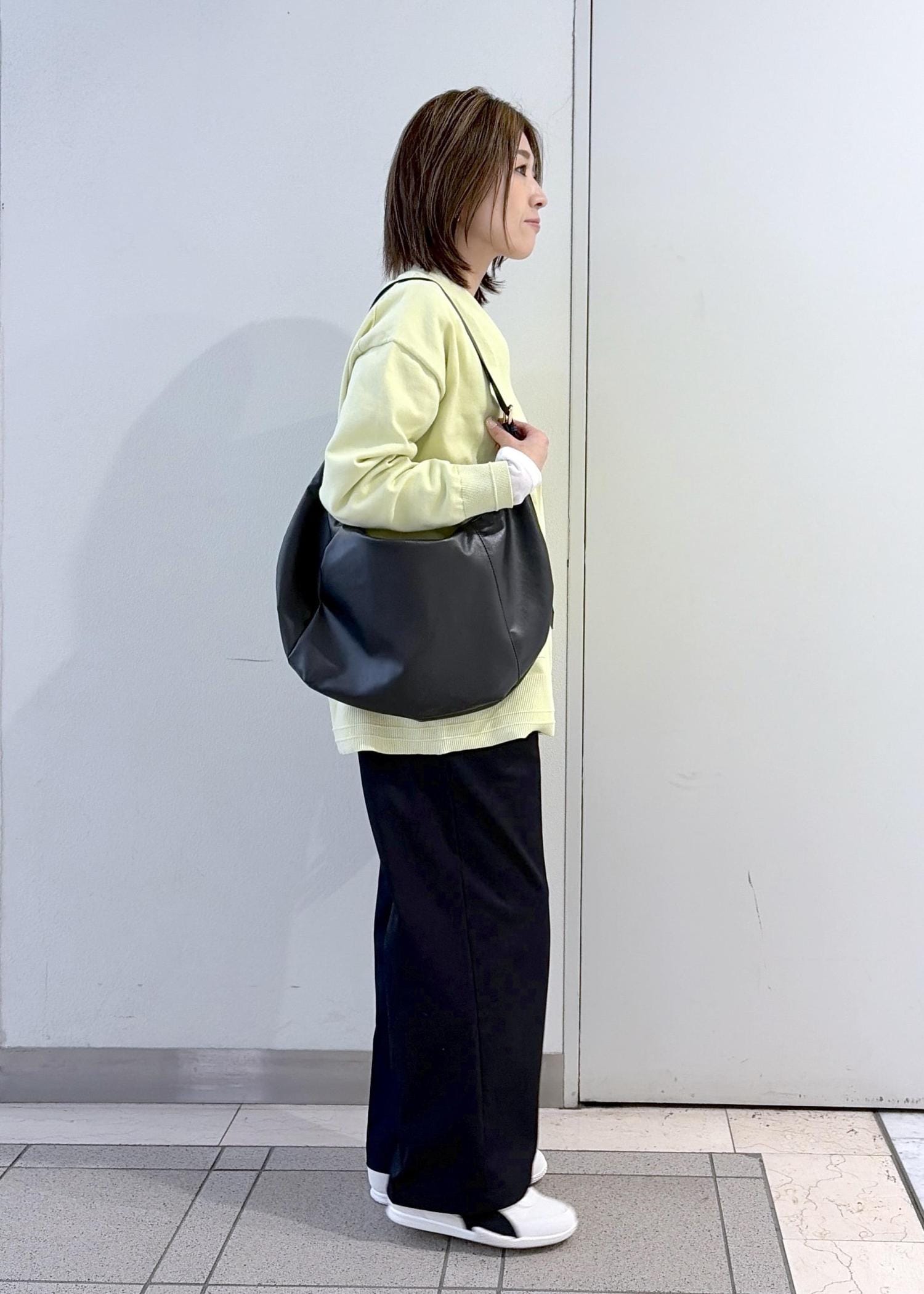 ハリのある素材感で綺麗めアイテムとも合わせやすいデザインです。