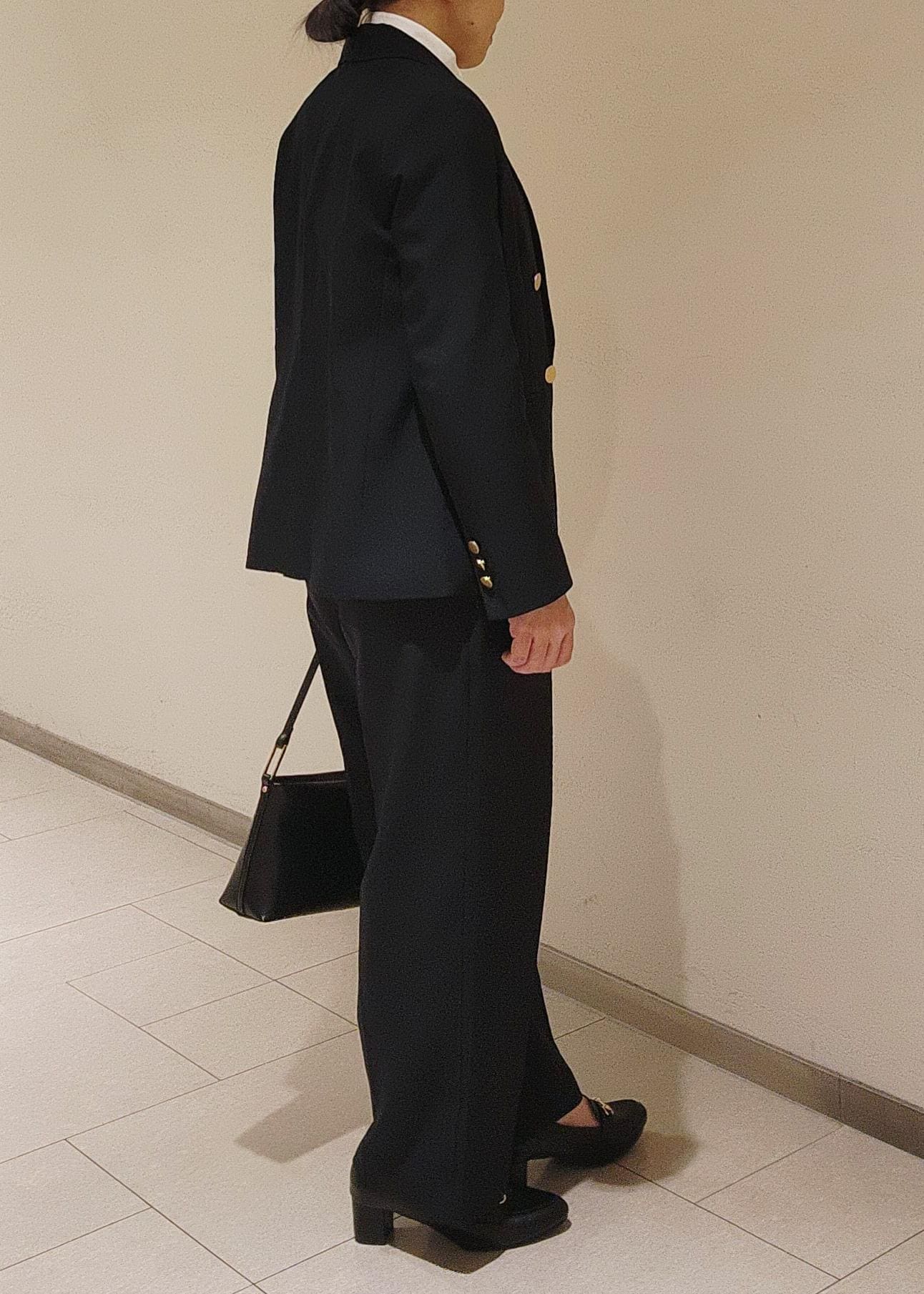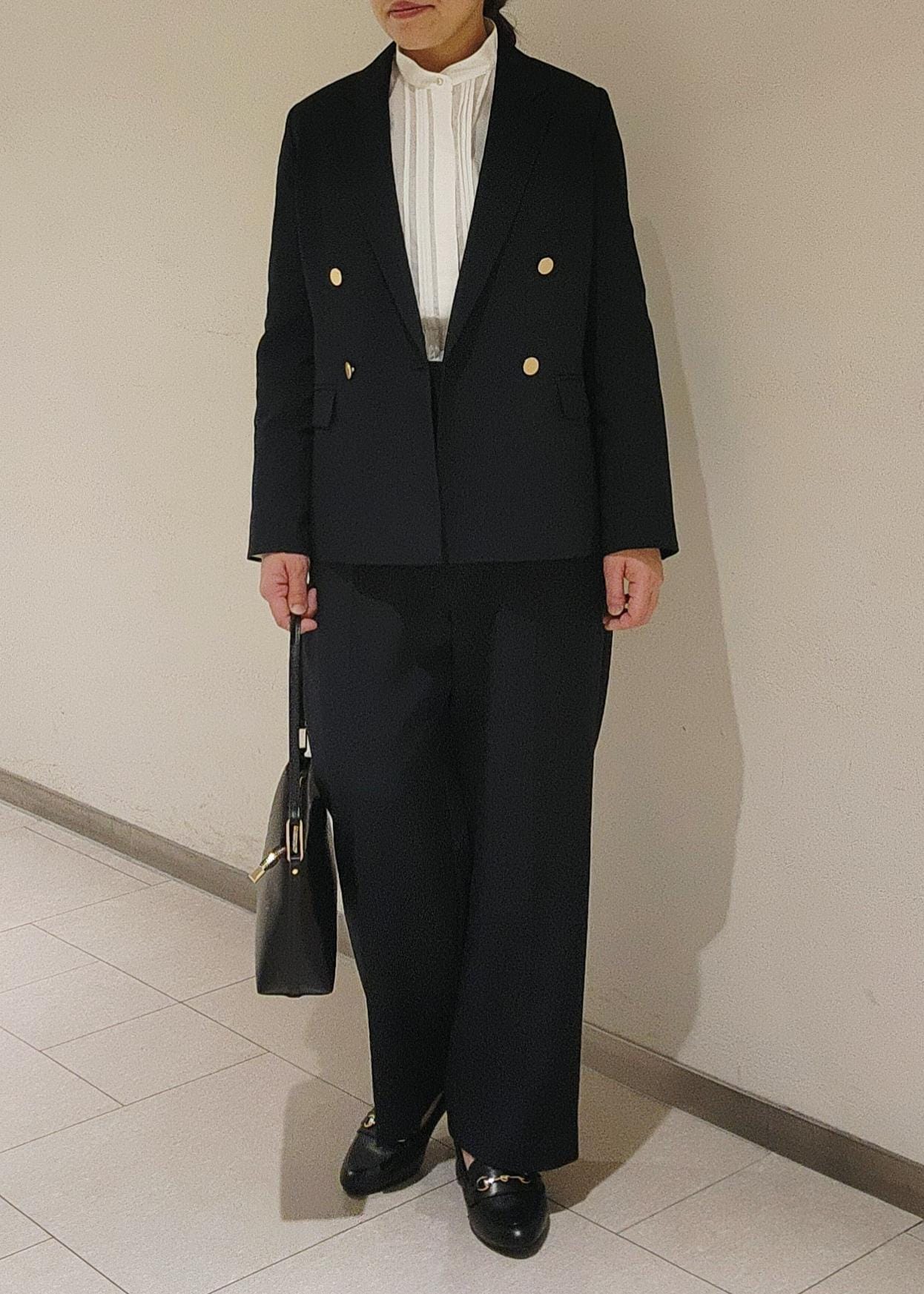ジャケットはブラウスなど薄手のインナーで肩まわり、袖丈がジャストサイズ。