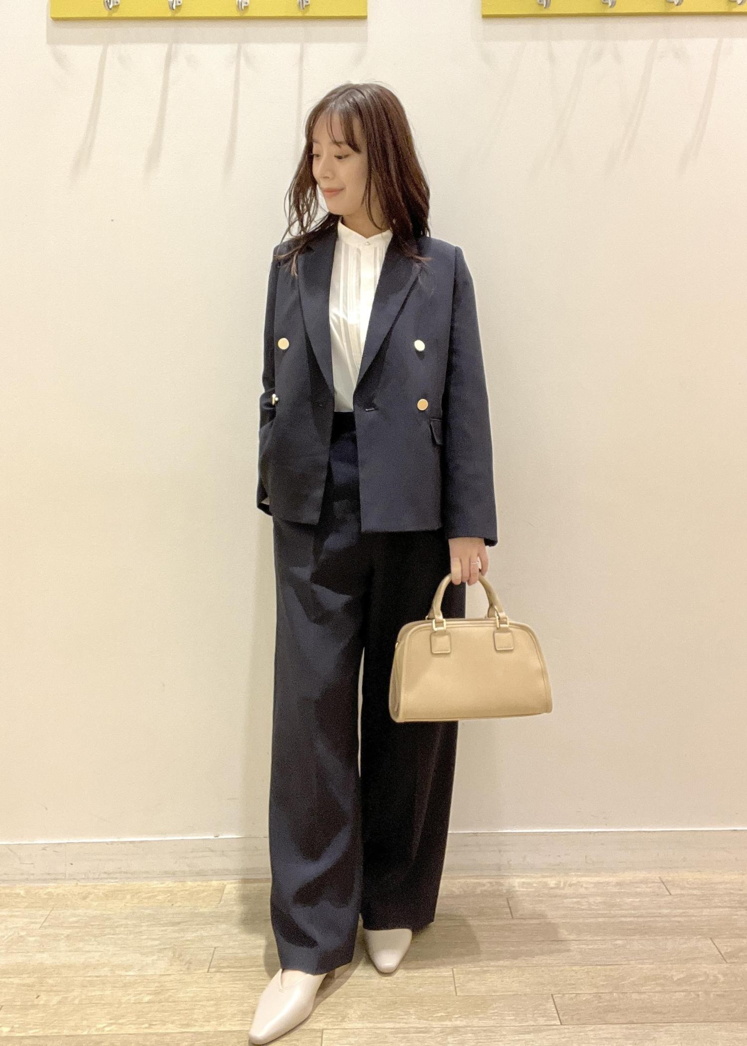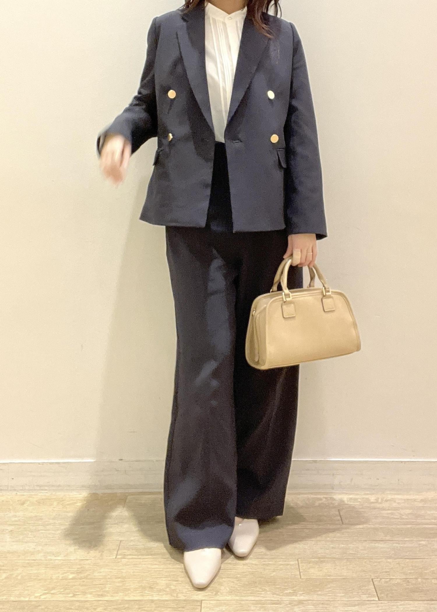 シンプルですが、金ボタンが華やかなセレモニーコーデを組んでみました。