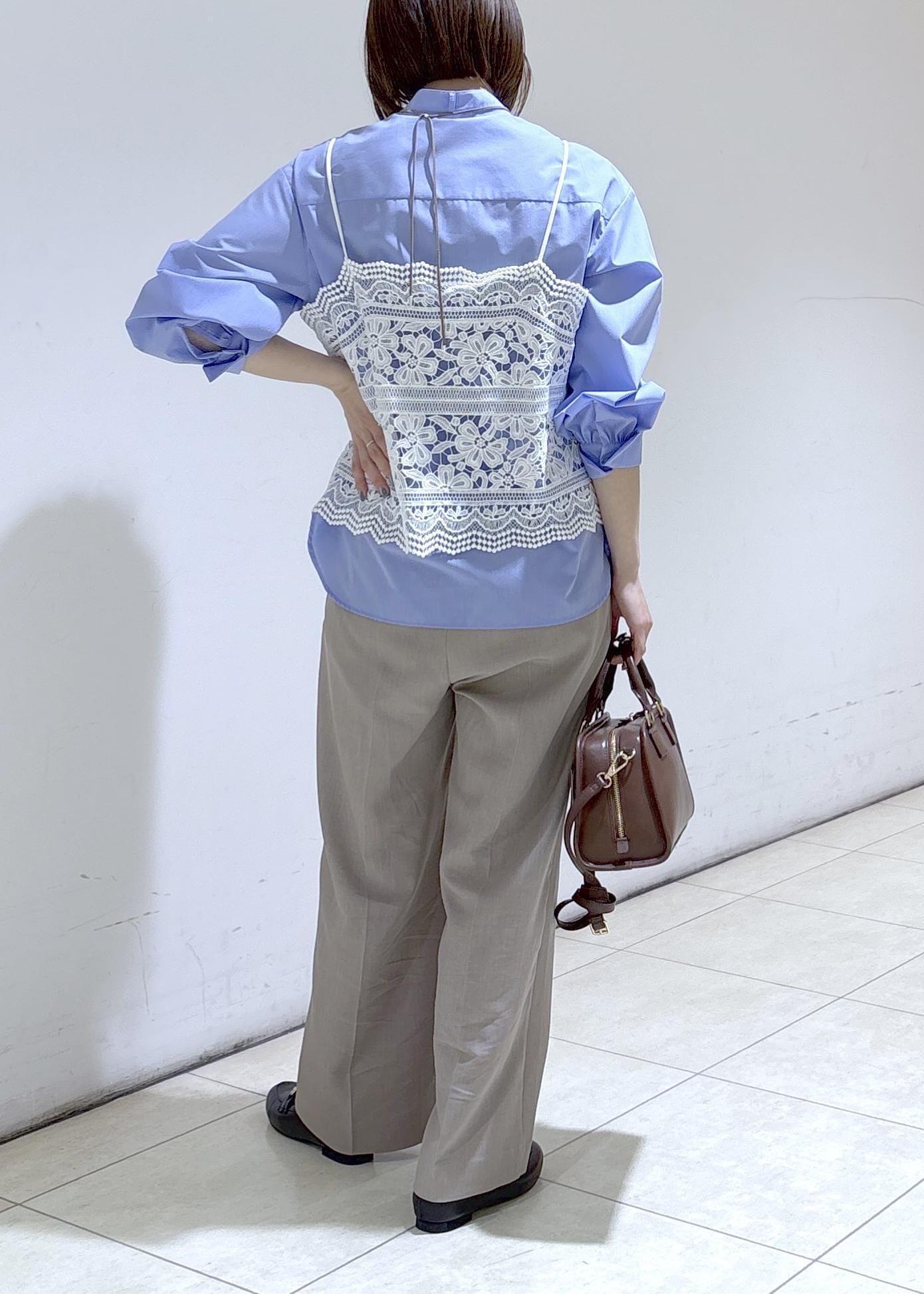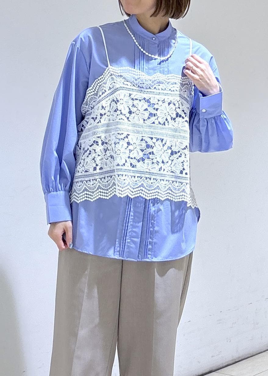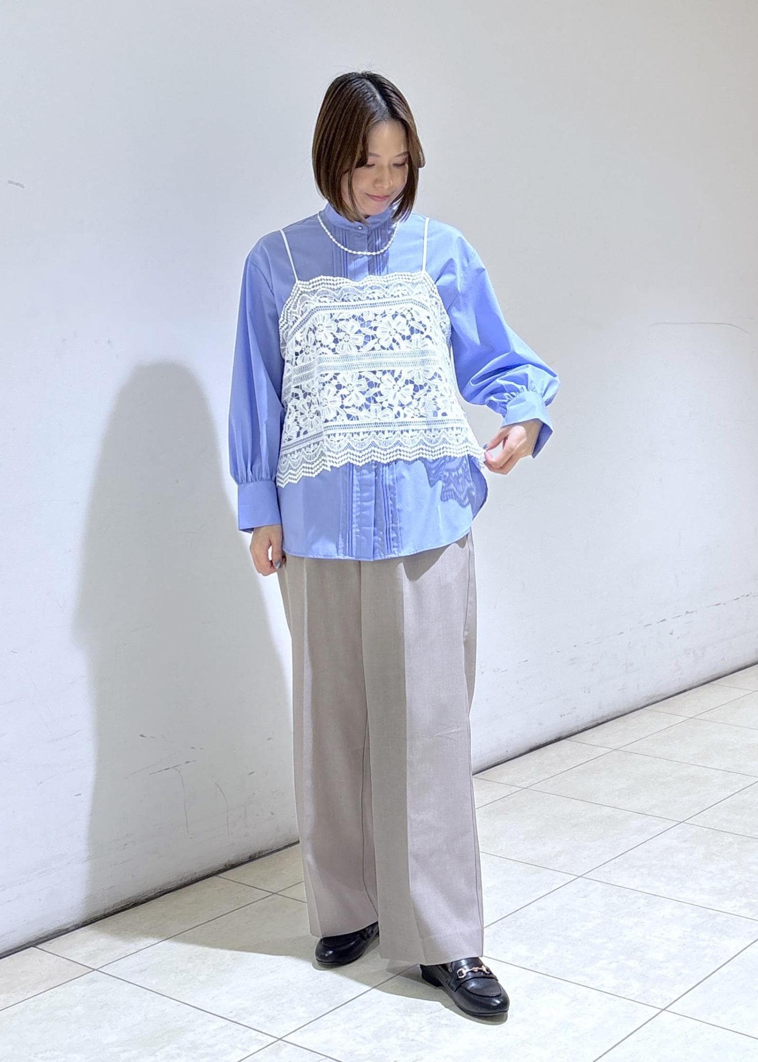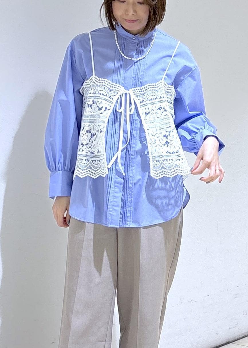 レースビスチェのレイヤードコーデ