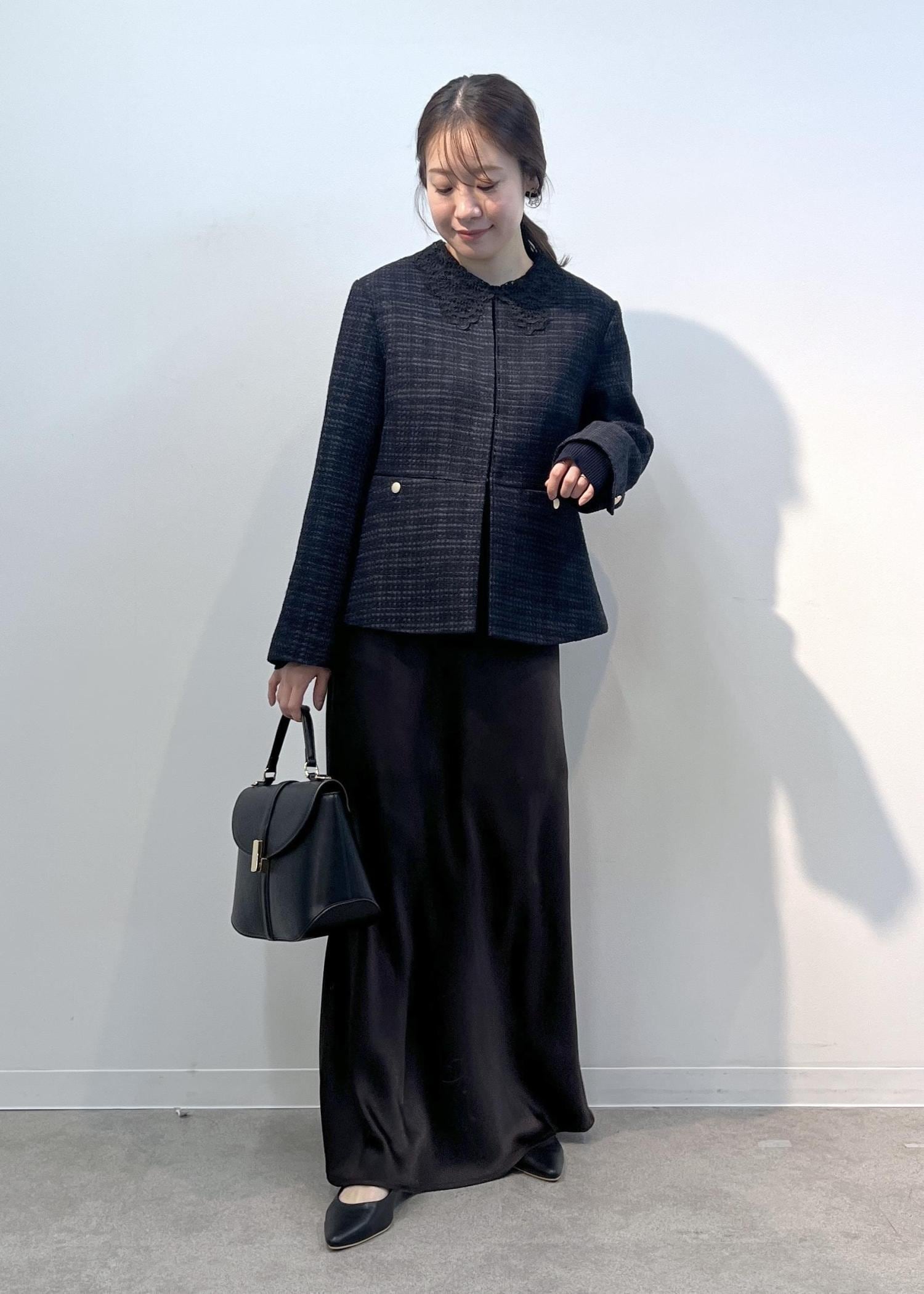 ジャケットがゆったりめだったので、すっきりとしたスカートを合わせました。