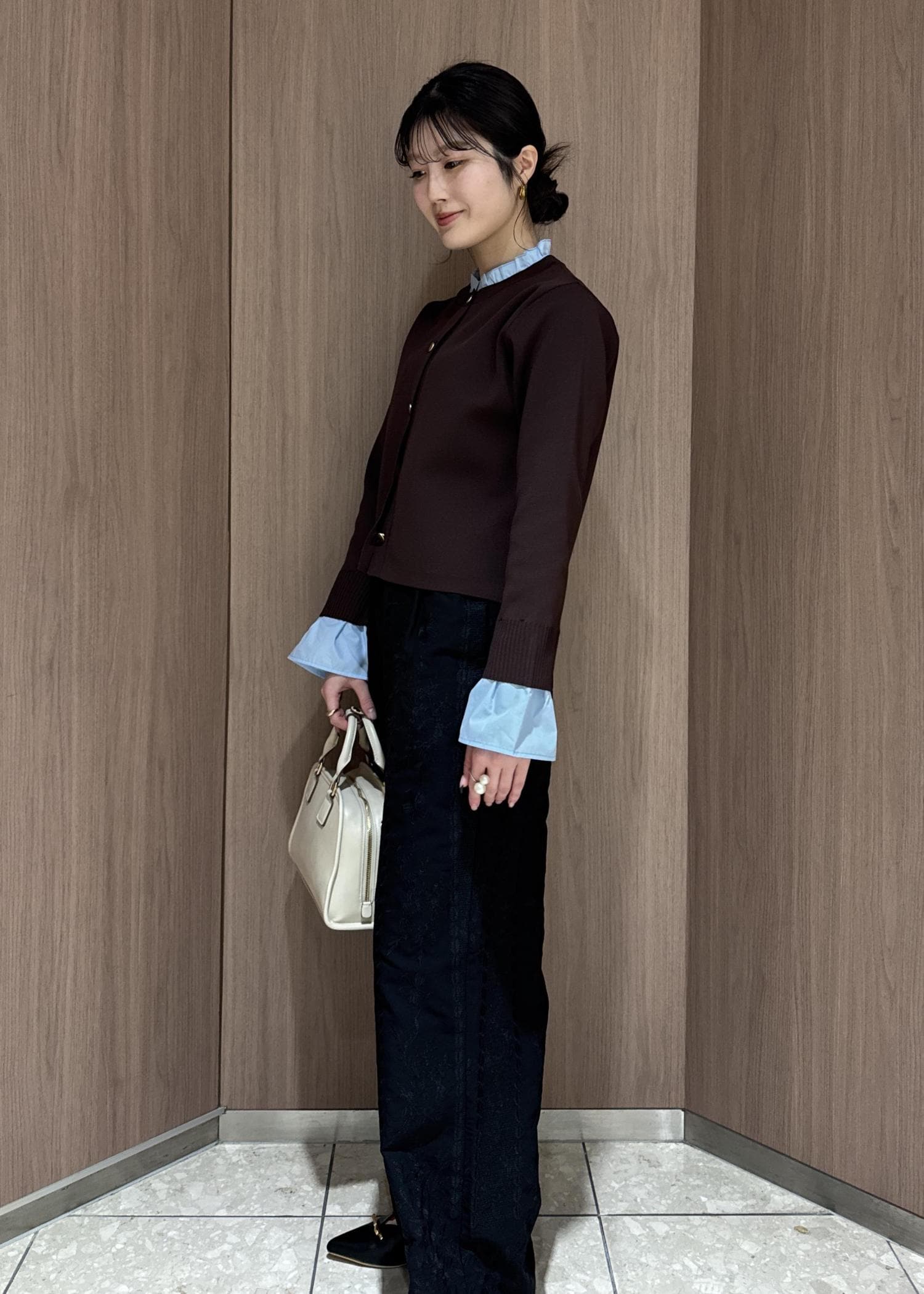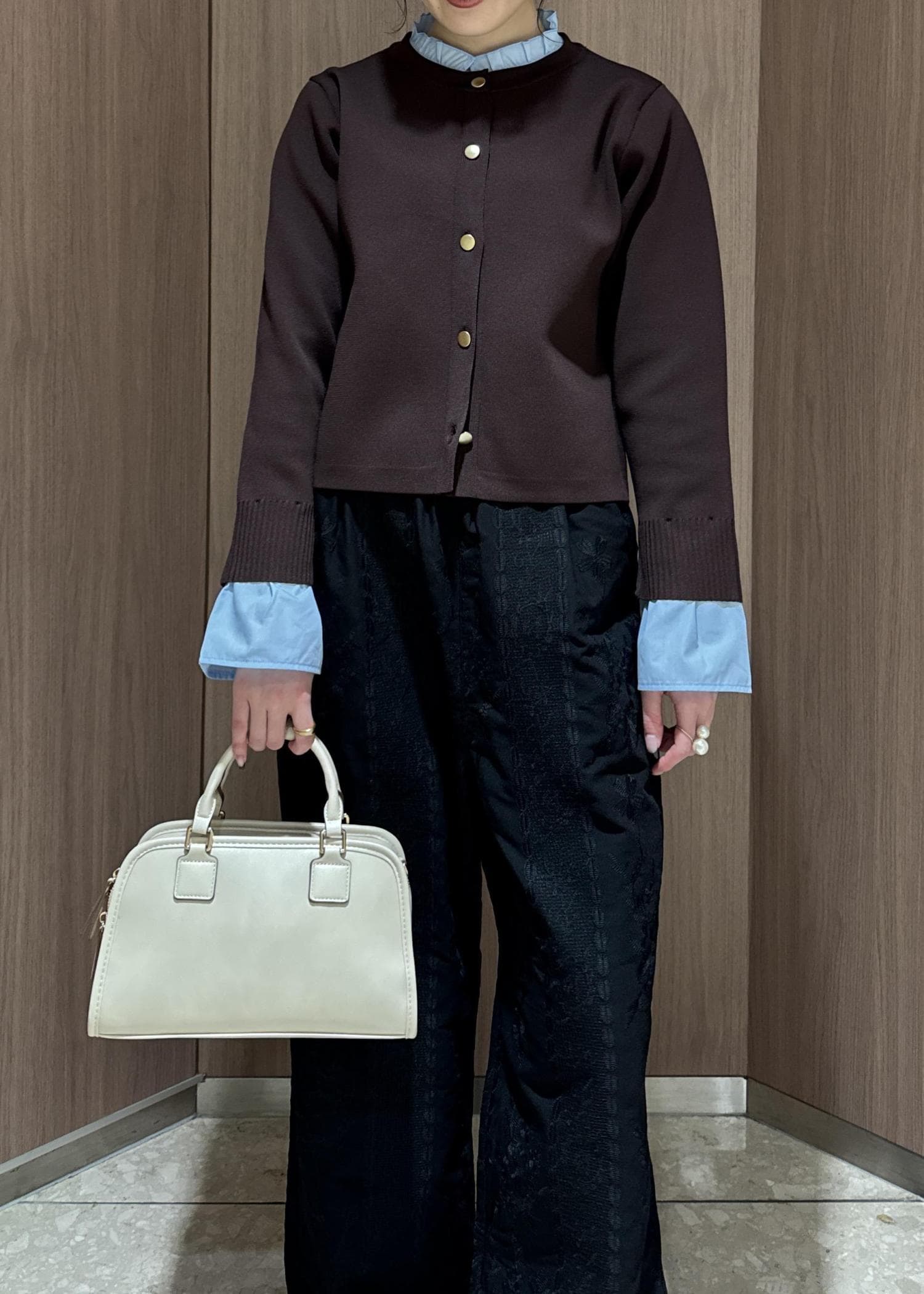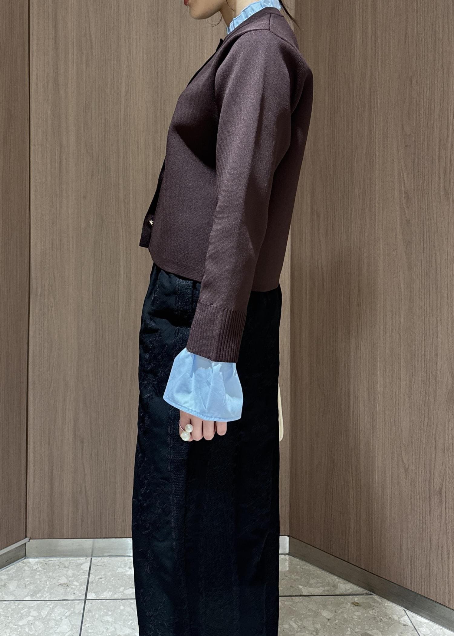 ROPÉ PICNIC襟フリルドッキングカーディガンダークブラウン / F¥5,995レビュー襟元と袖口部分が取り外しできます!!袖口はつけたままでも邪魔にならないちょうどよい長さです。マットの金ボタン付きなので、シンプルに着てもおしゃれ見えさせてくれます。
