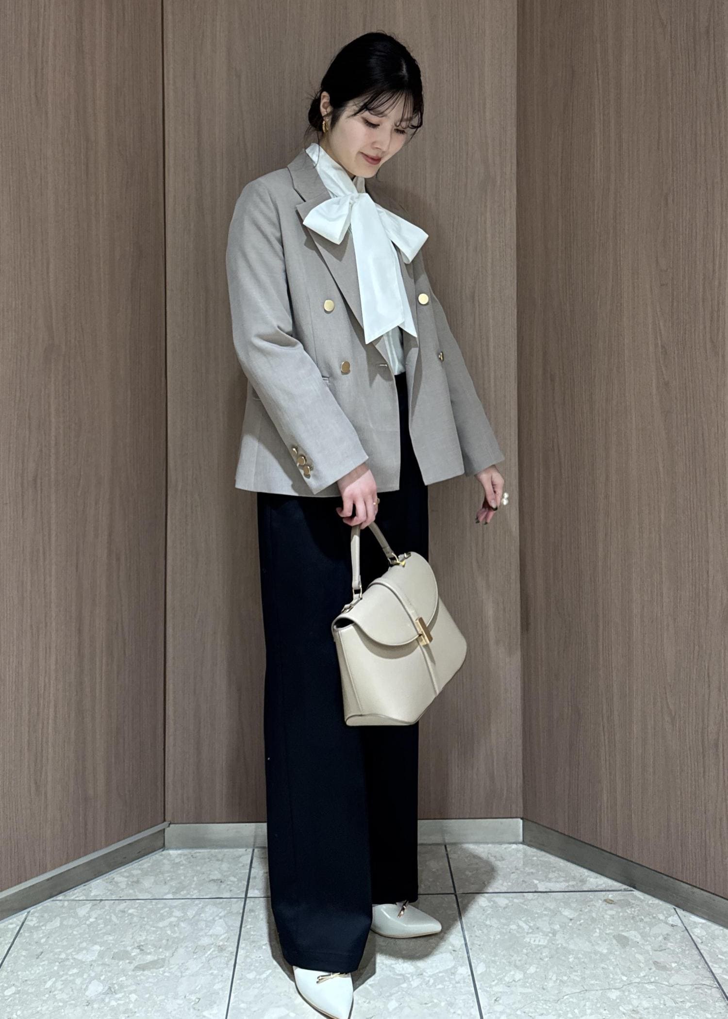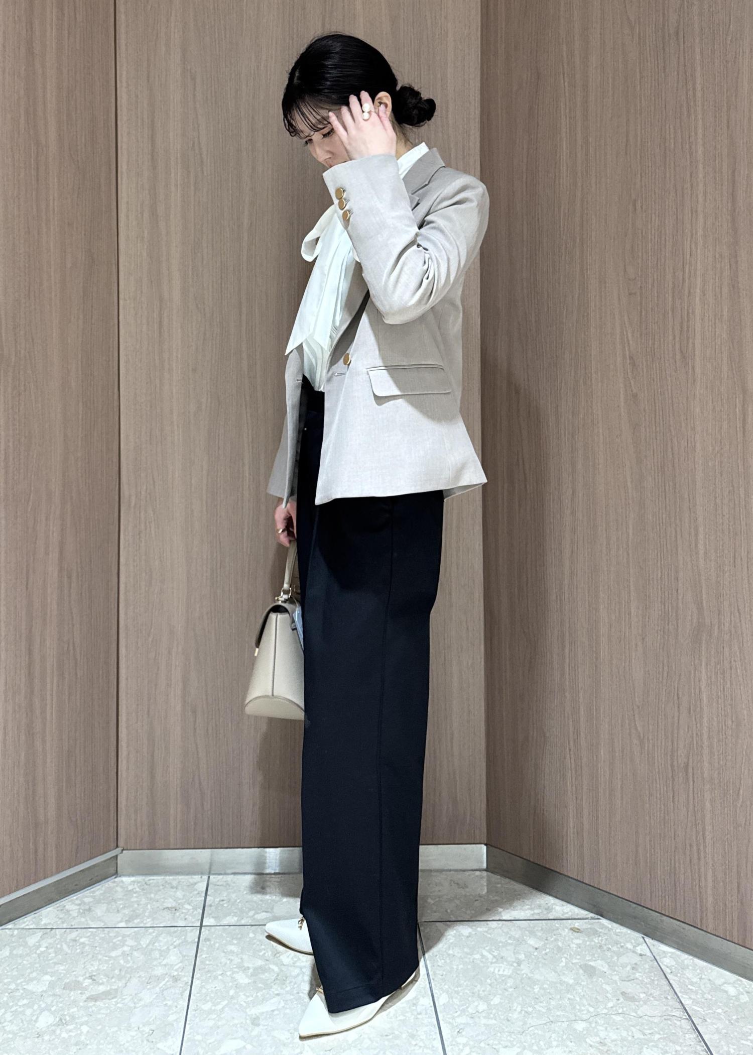 金ボタンジャケットでキレイめにコーディネートを組んでみました。
