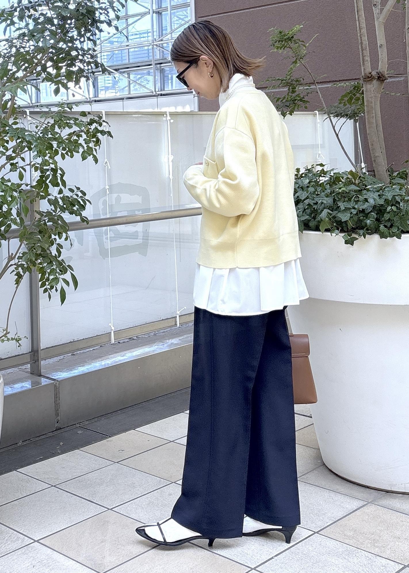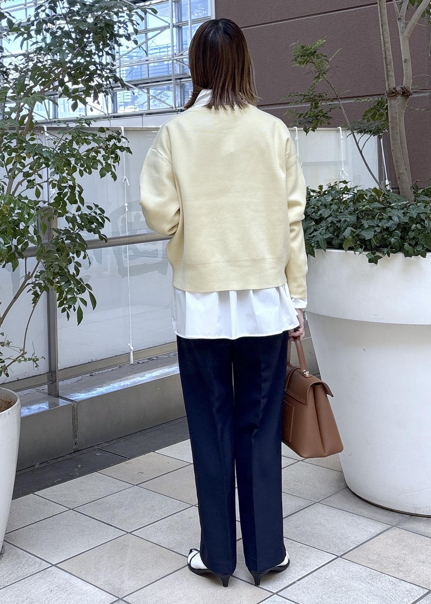 ・前後のセンタークリースで脚をまっすぐに見せ、脚長シルエットを演出。