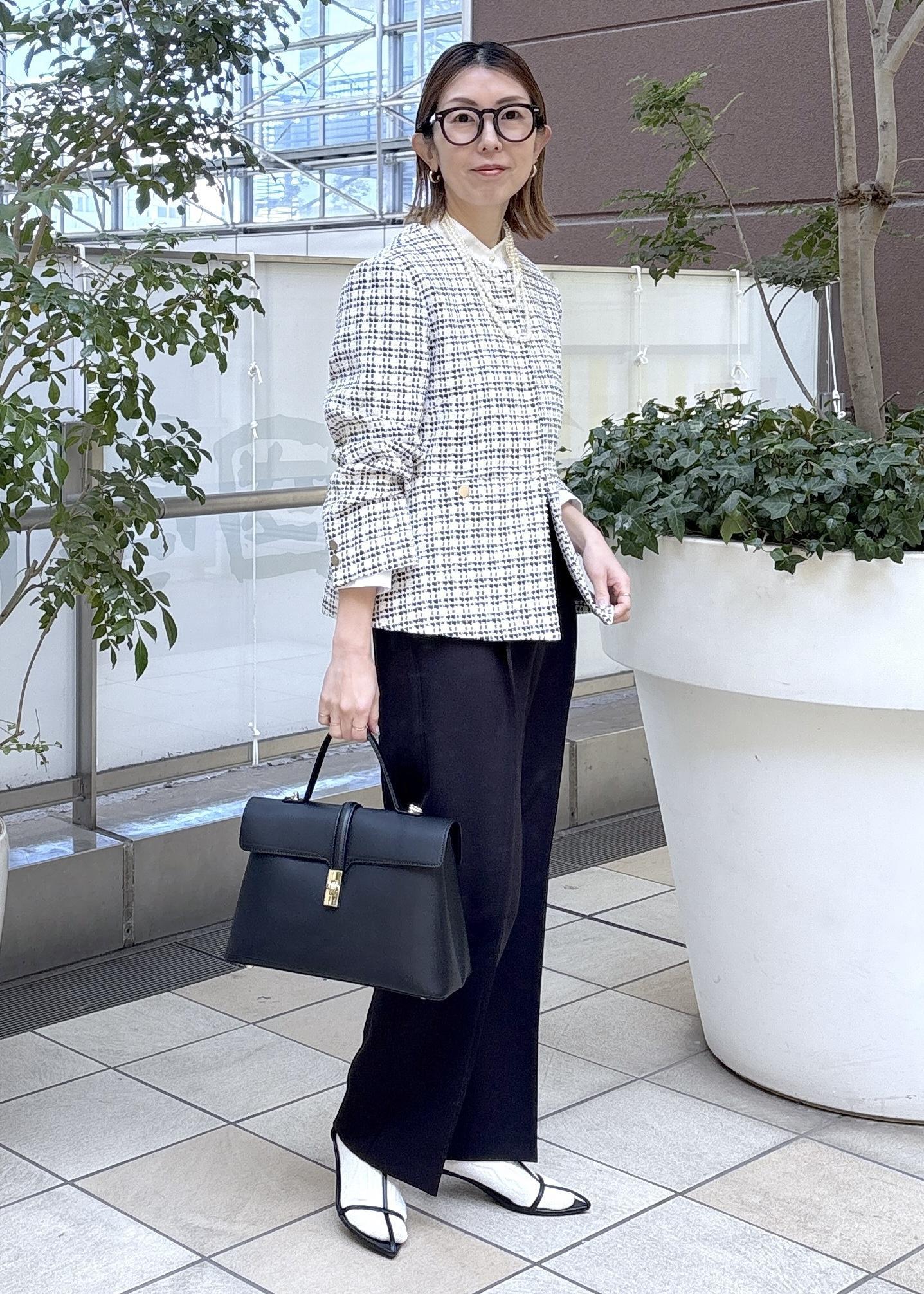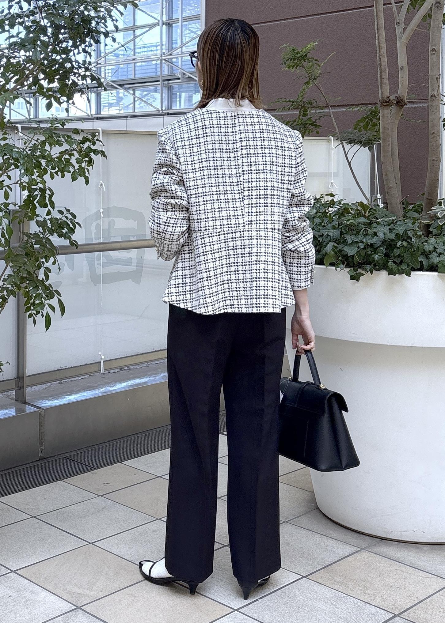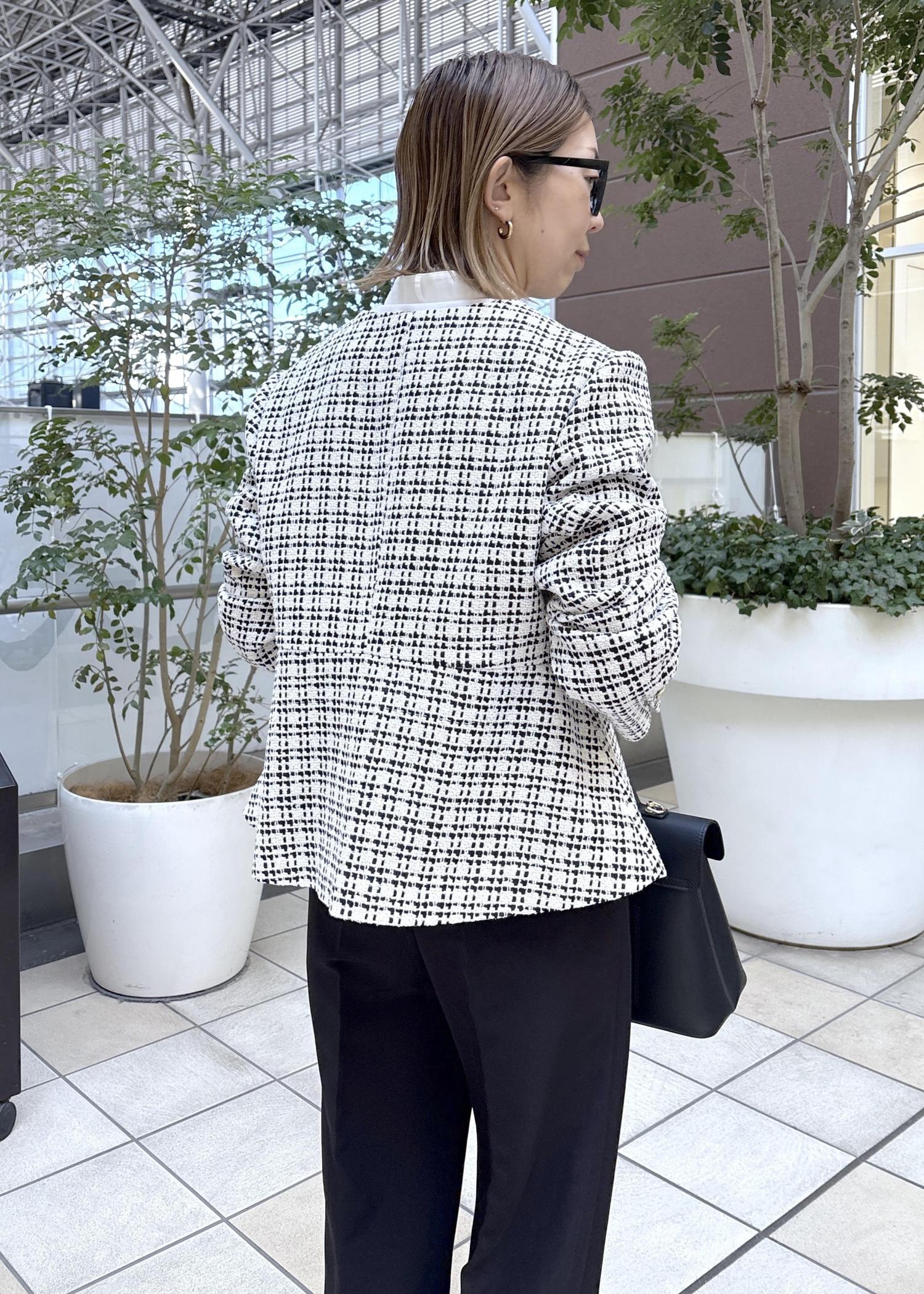 特別な日や日常使いのどちらにも対応できるツイードジャケットで、フォーマルからカジュアルまで幅広く対応