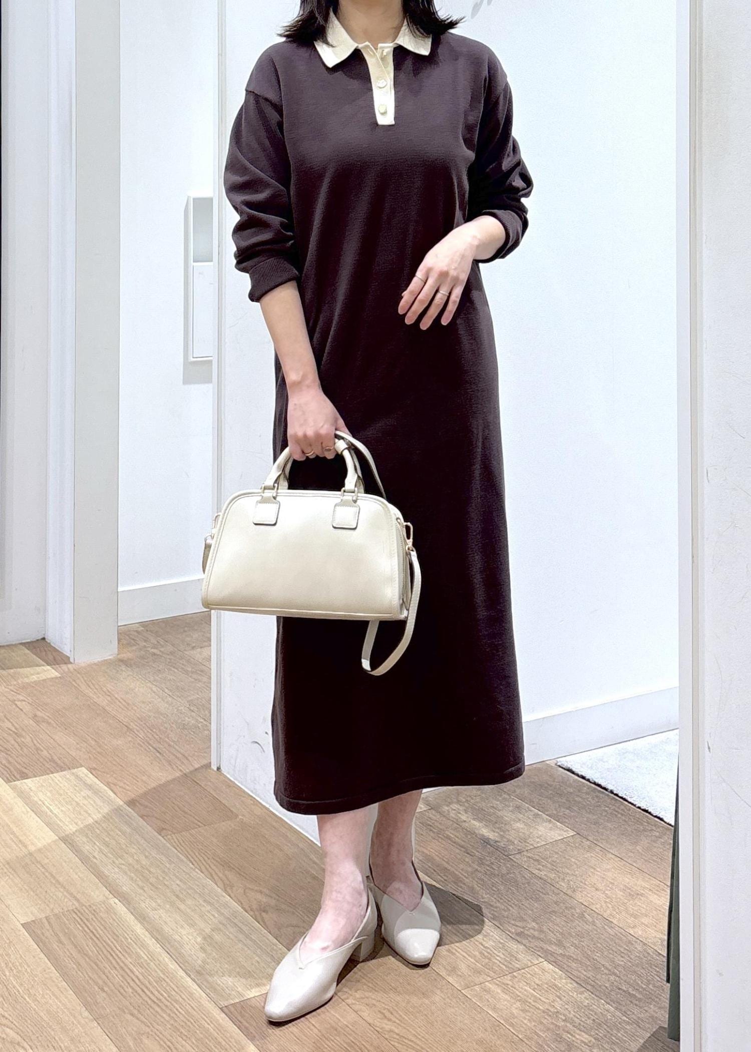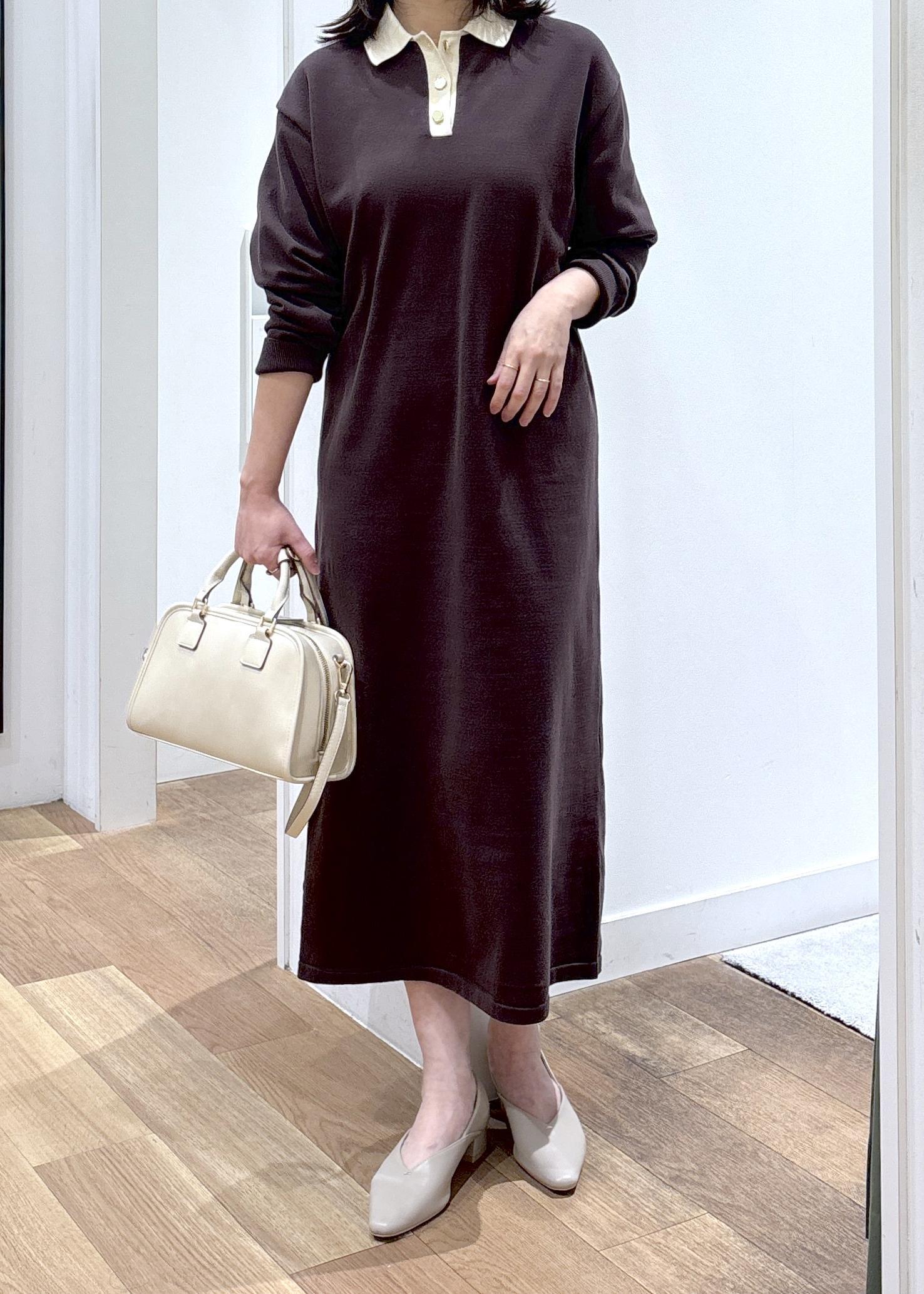 ROPÉ PICNIC配色スキッパーニットワンピースダークブラウン / F¥6,996レビュー配色がかわいいワンピースです。ゆったりしたサイズ感で、リラックスして着用していただきます。162㎝でふくらはぎ下くらいの長さでした。