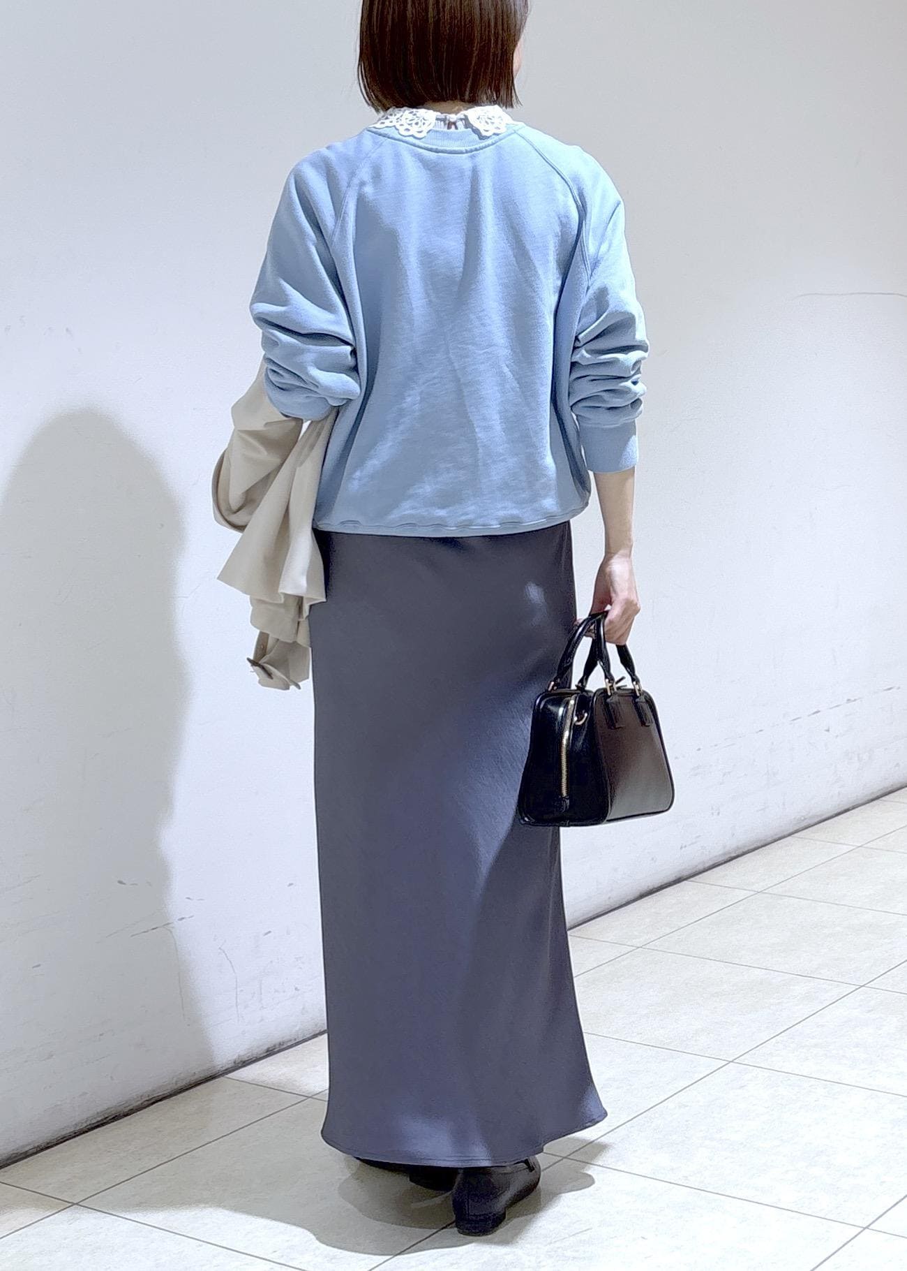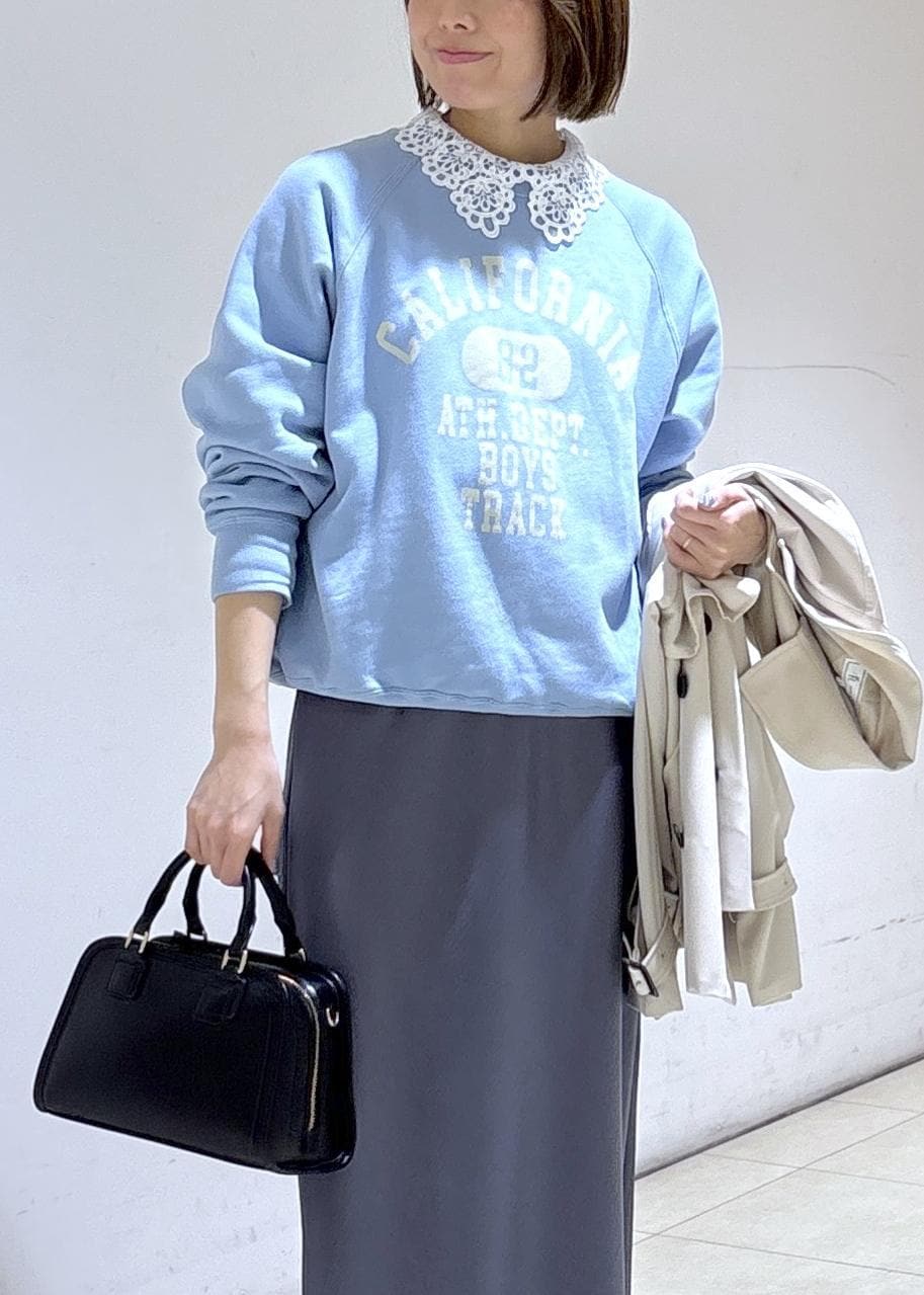 春らしいサックスカラーのスウェットに