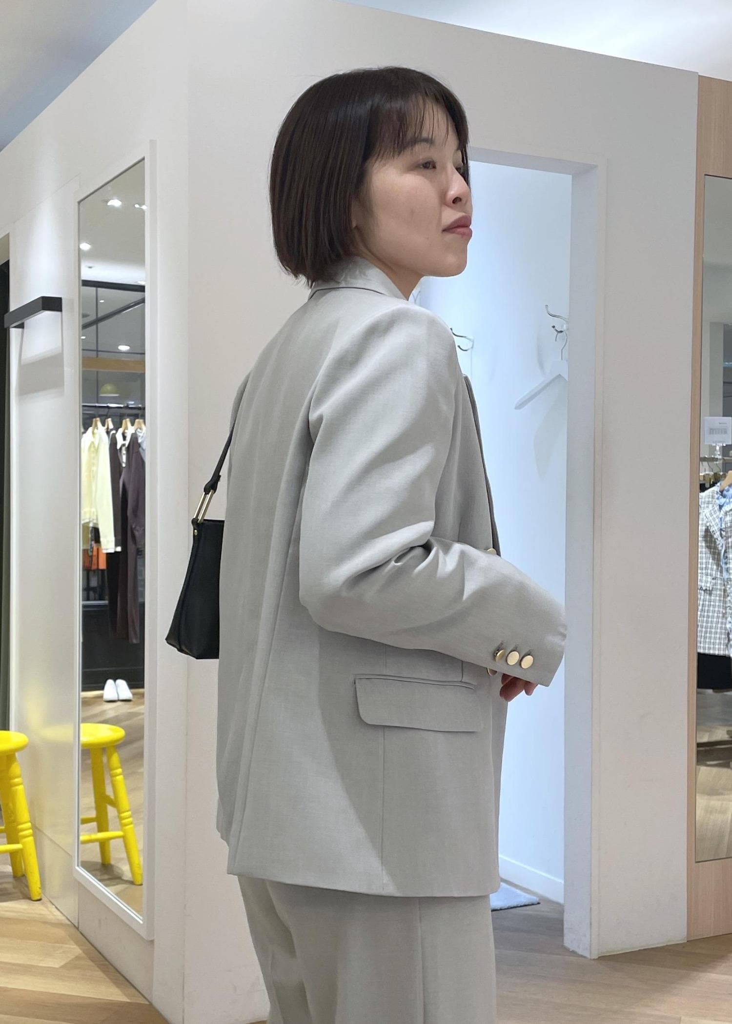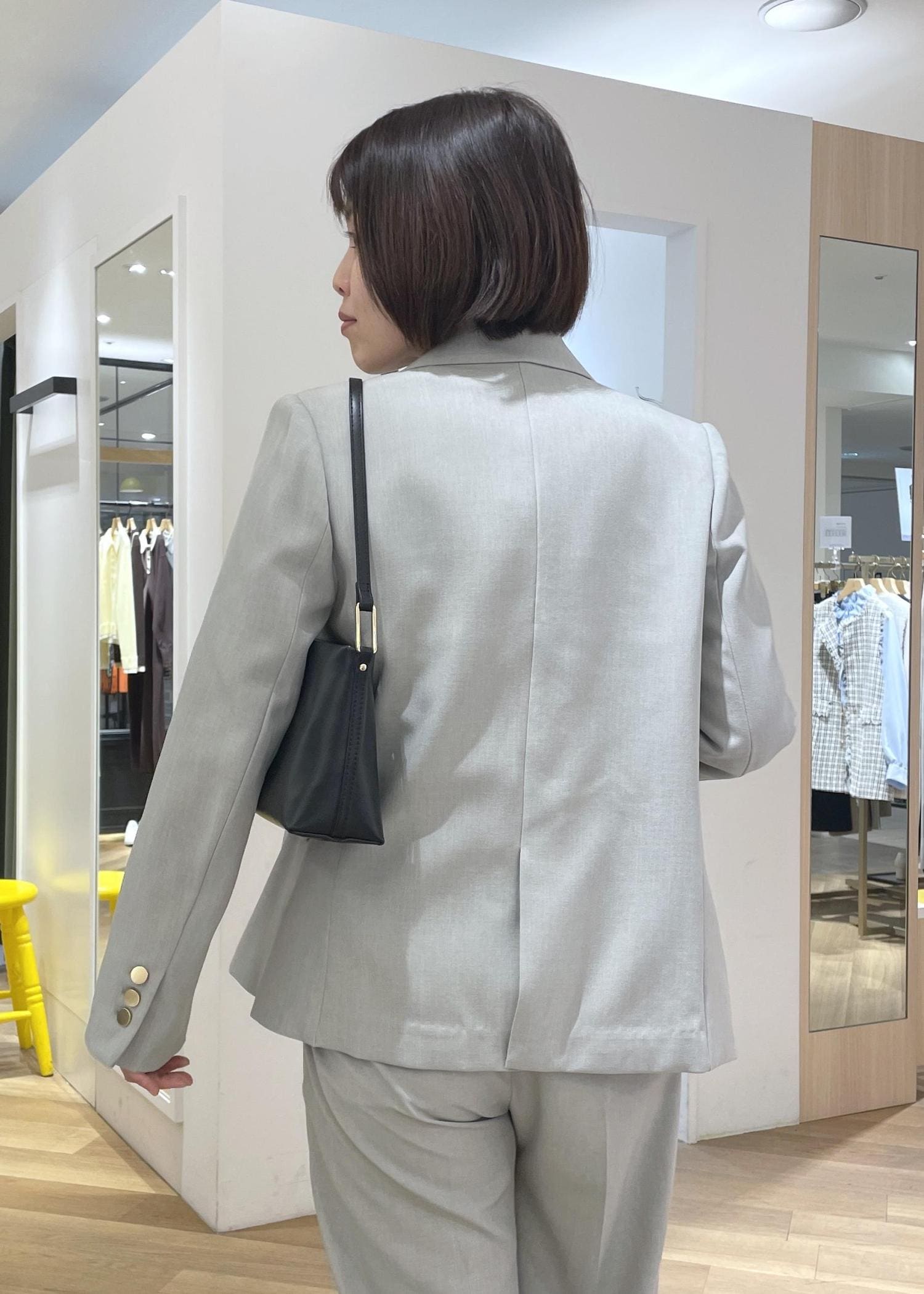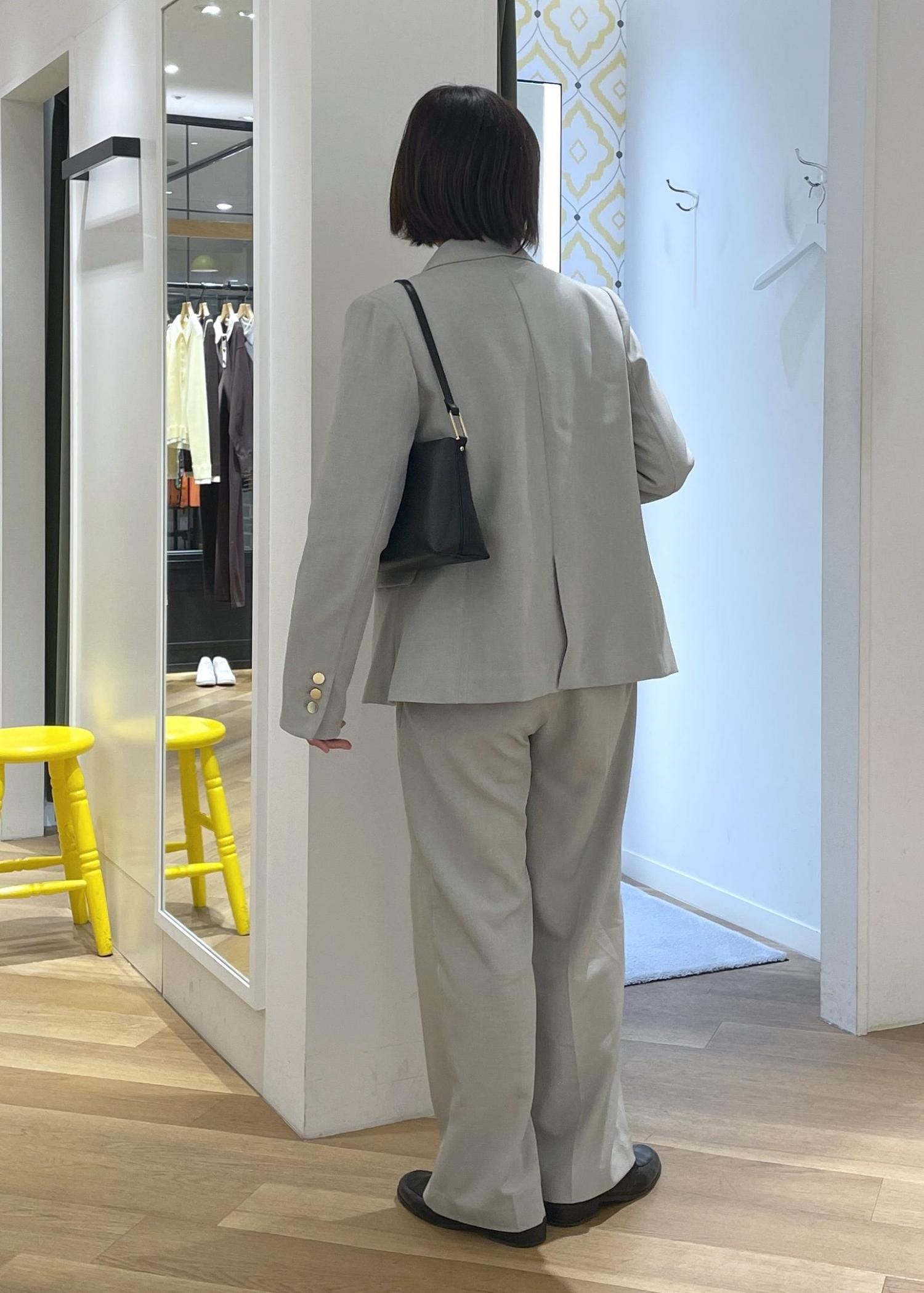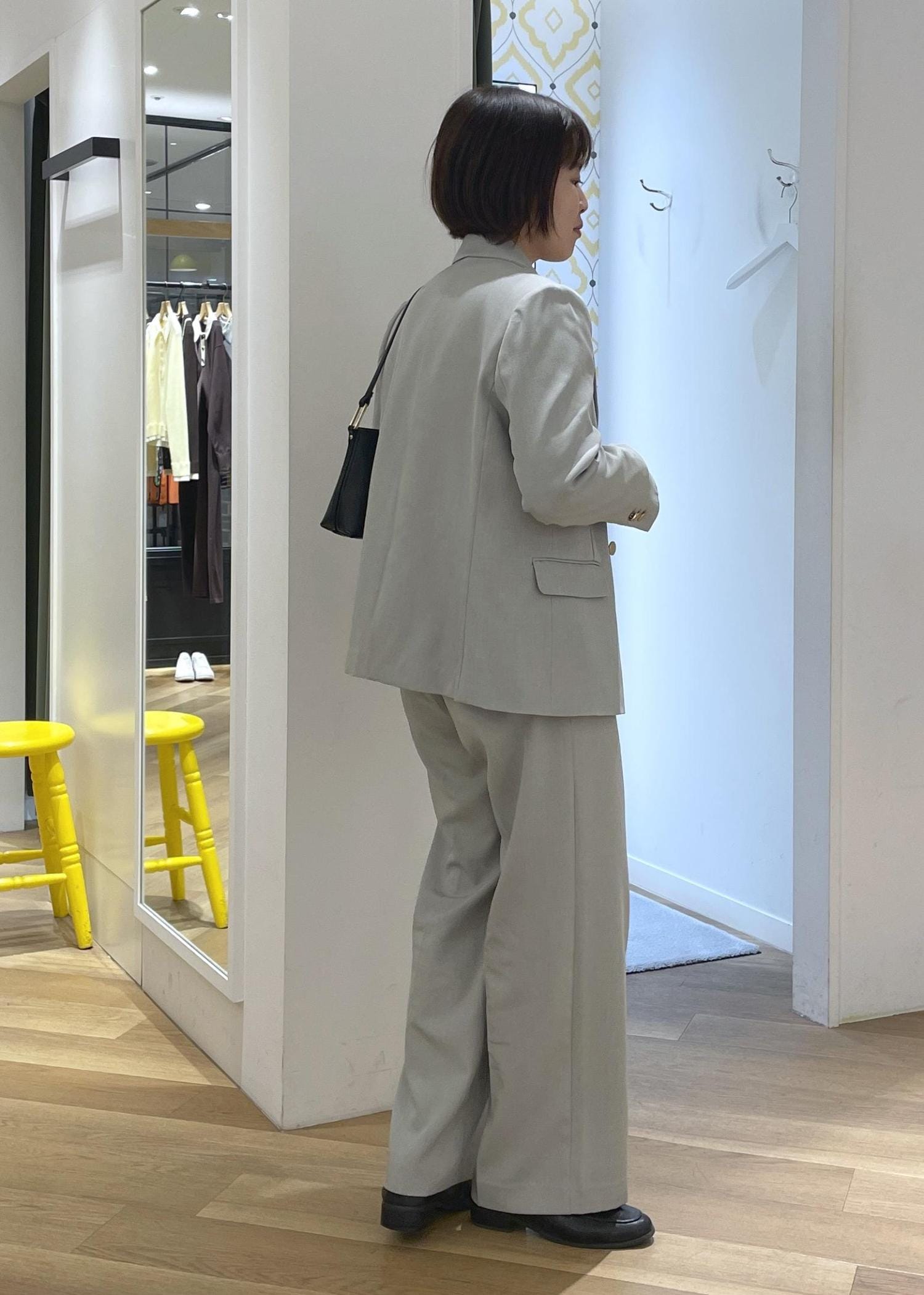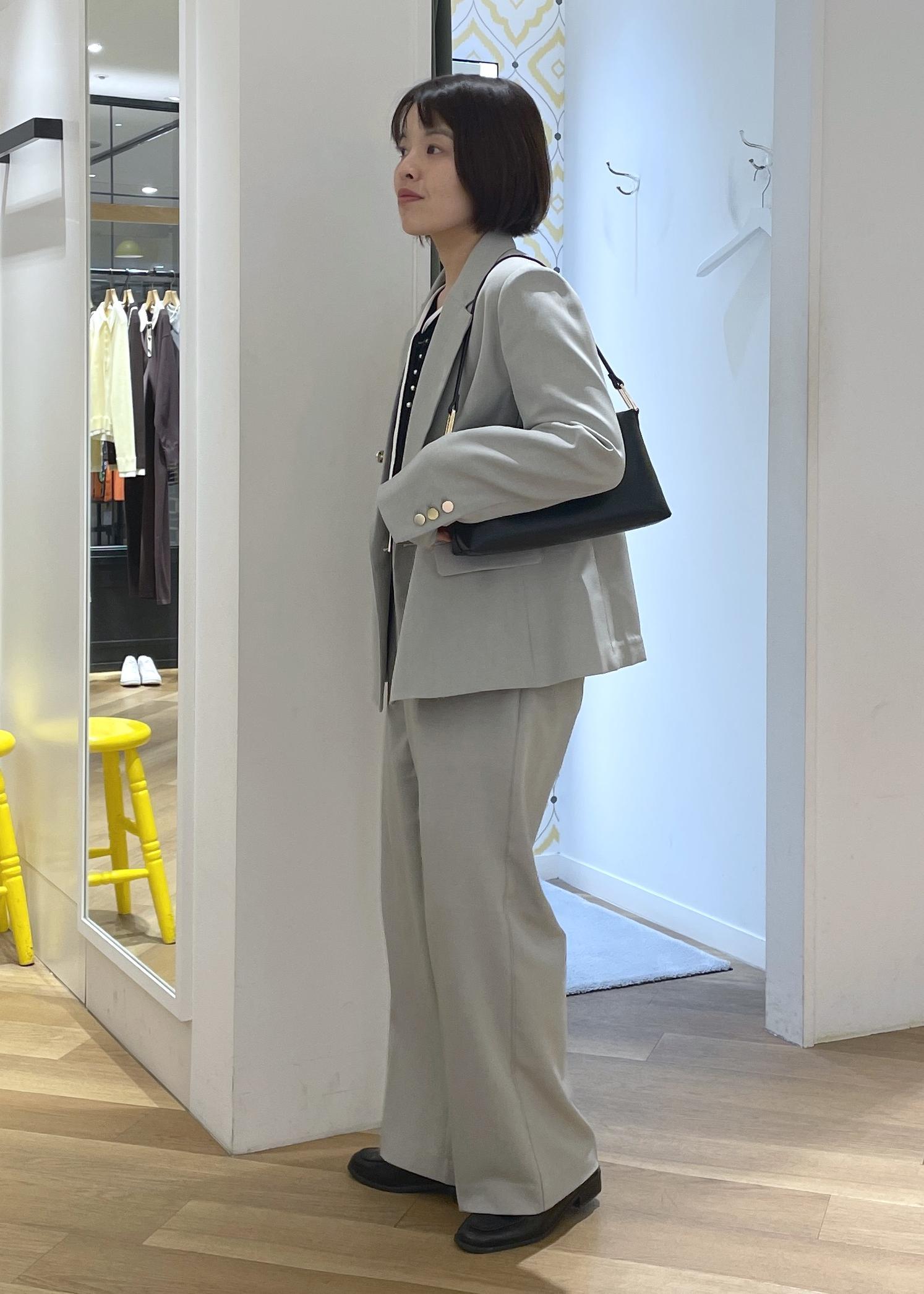 セットアップは柔らかなグリーンを合わせて春っぽい印象に◎