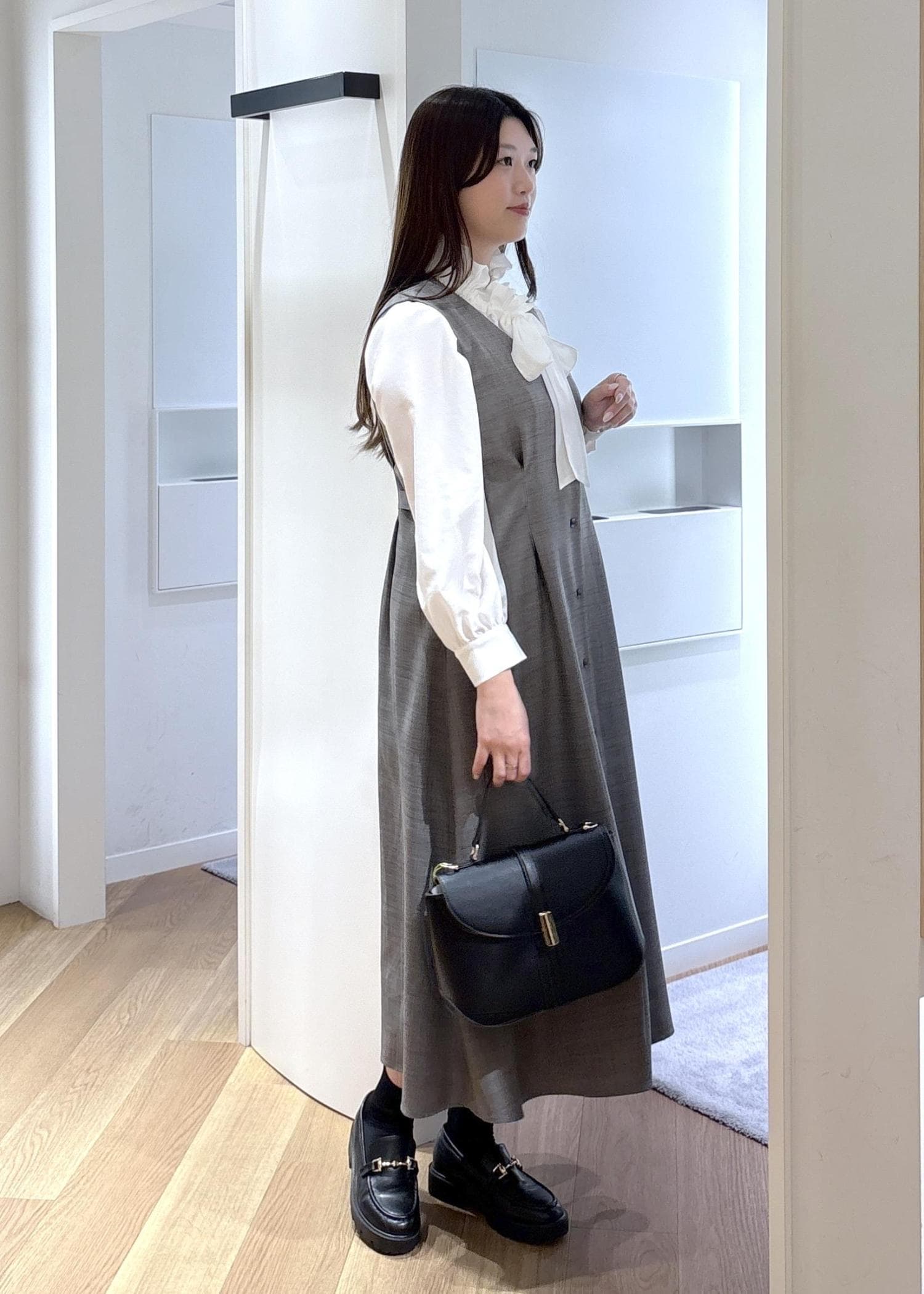 インにはブラウスやニットを合わせて、オンオフ問わず使って頂けます♡