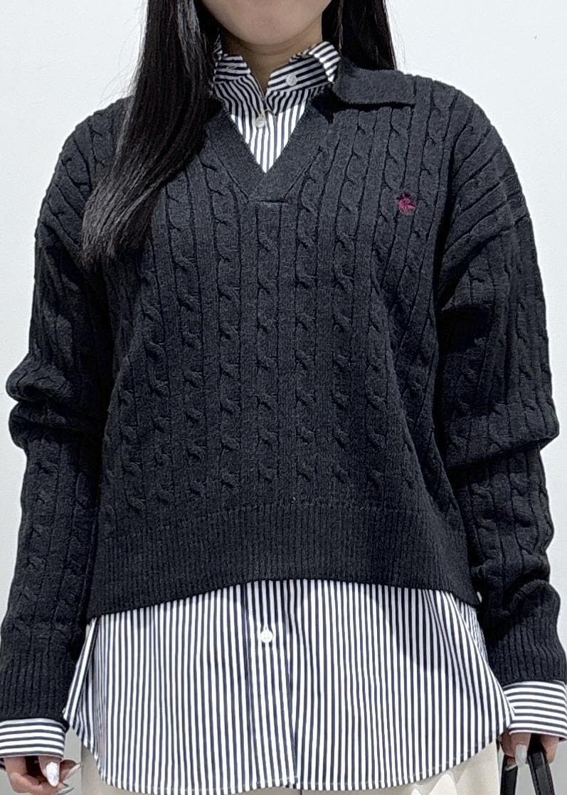 ROPÉ PICNIC【BEVERLYHILLS POLO CLUB・新色追加】ケーブル編みクロップドスキッパーニットチャコール / F¥5,995レビュー程よくゆとりのあるサイズ感なので、シャツとレイヤードしやすいです。